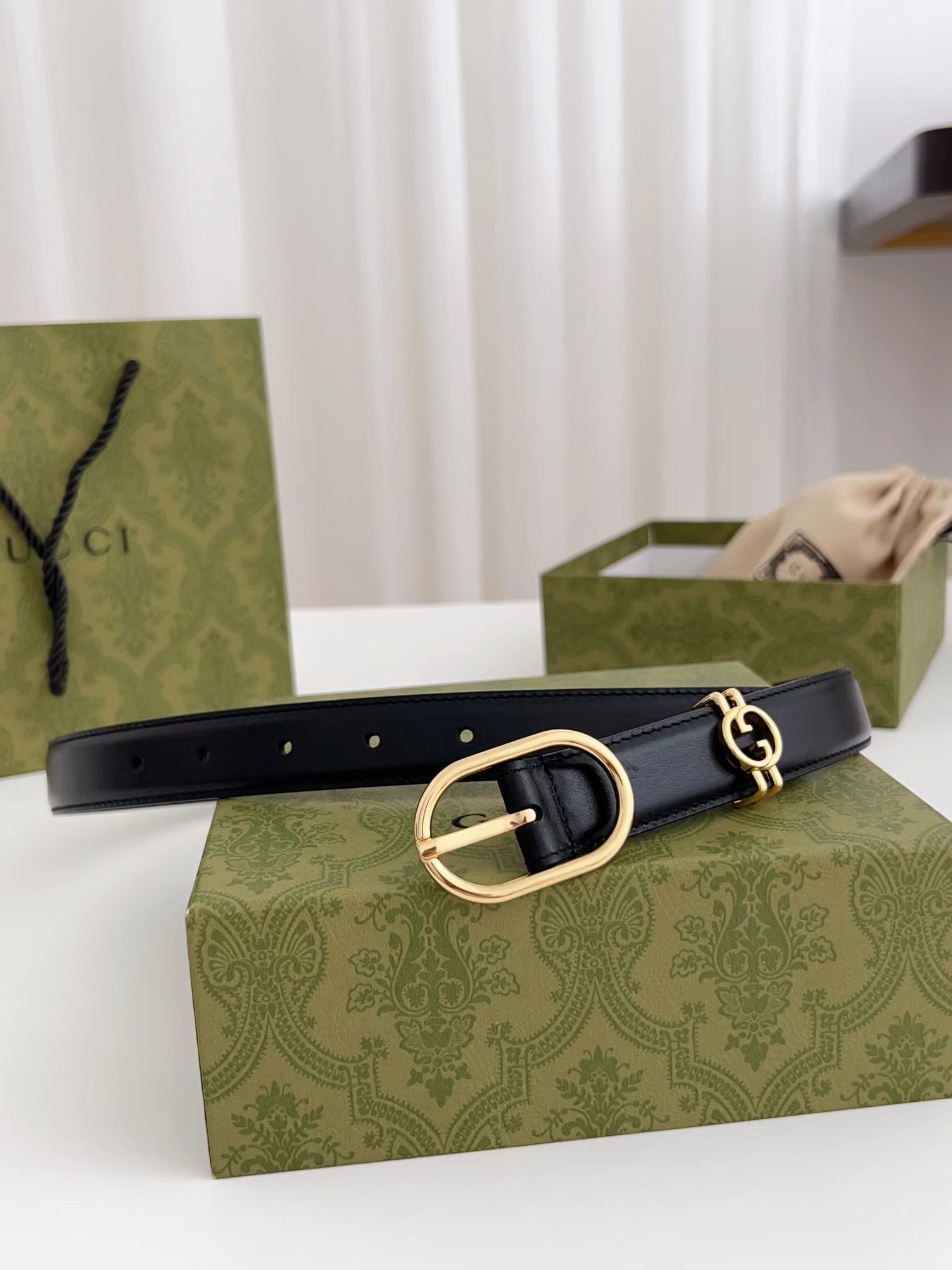 NIGO Gucci Women's Leather Belt With Round Interlocking G Width 2.5cm #nigo97479