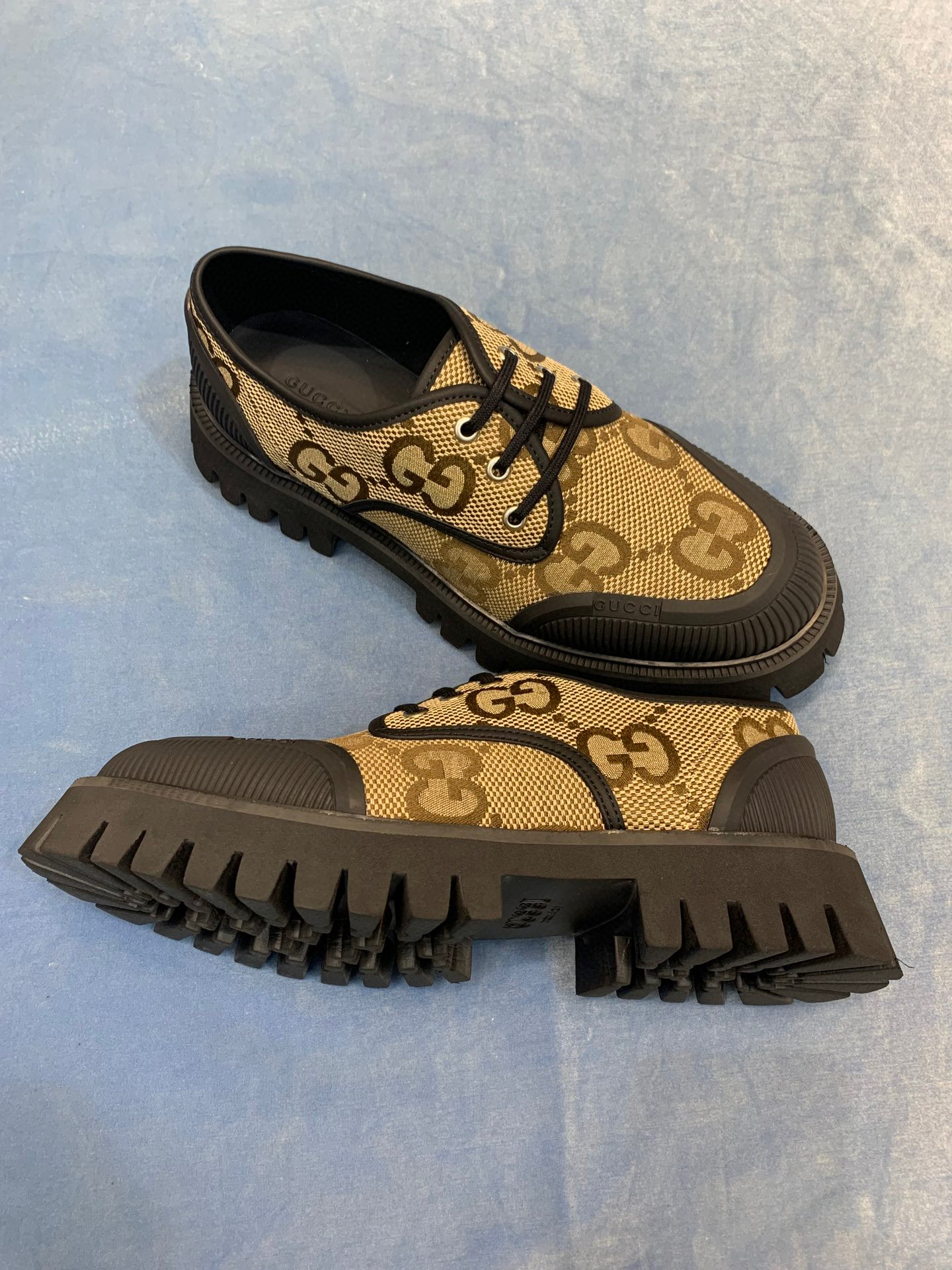 Gucci WOMEN'S MAXI GG LACE-UP SHOE Low Top Thick Bottom Loafers Casual Leather Shoes #nigo96419