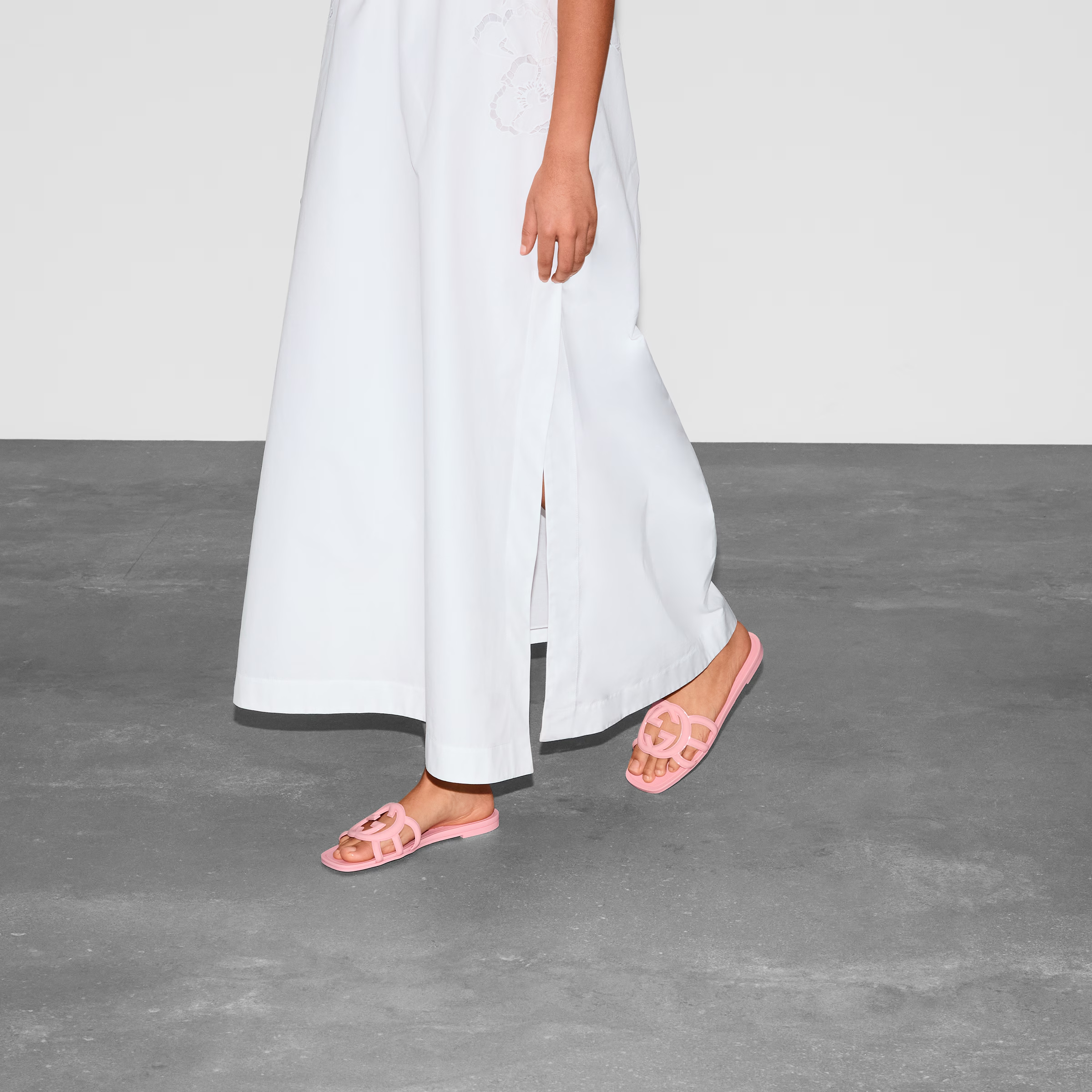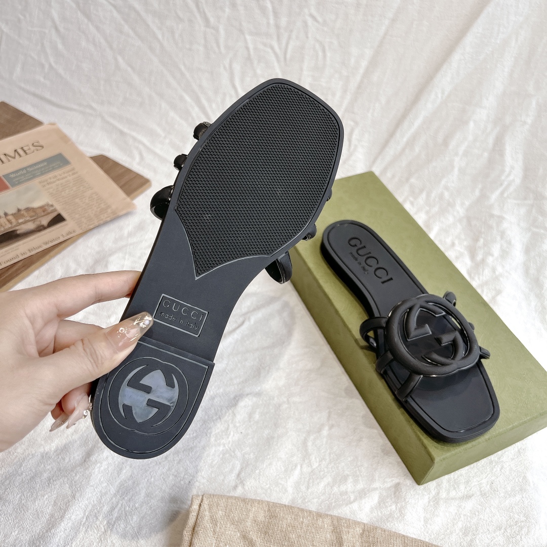 NIGO Gucci Women's Summer Double G Hollow out Square Head Flat Slippers Solid Color Casual Shoes #nigo81341