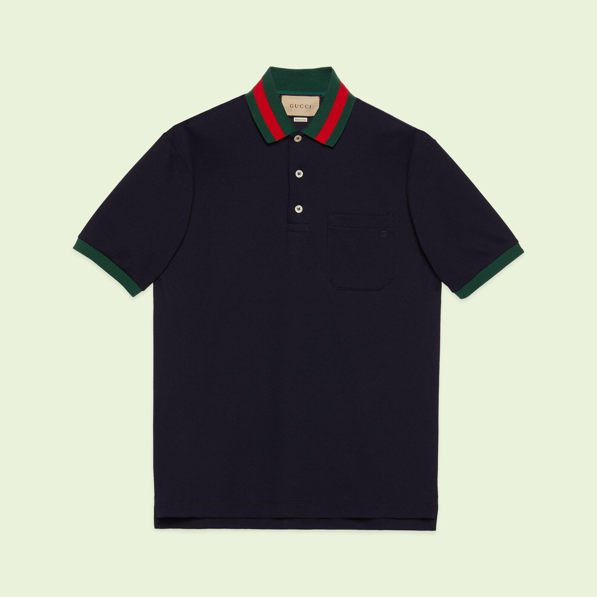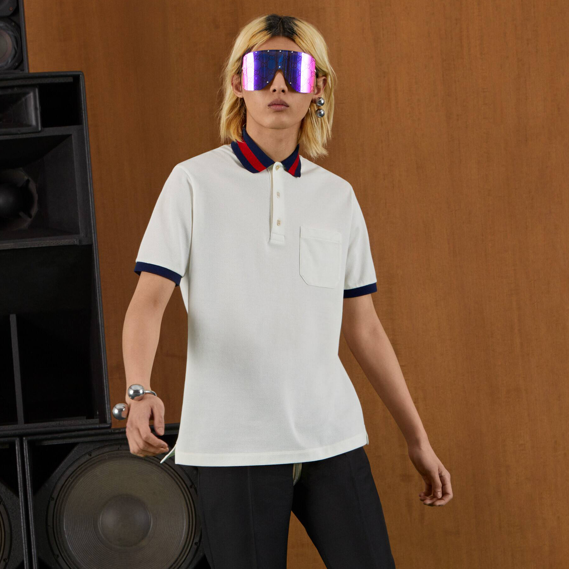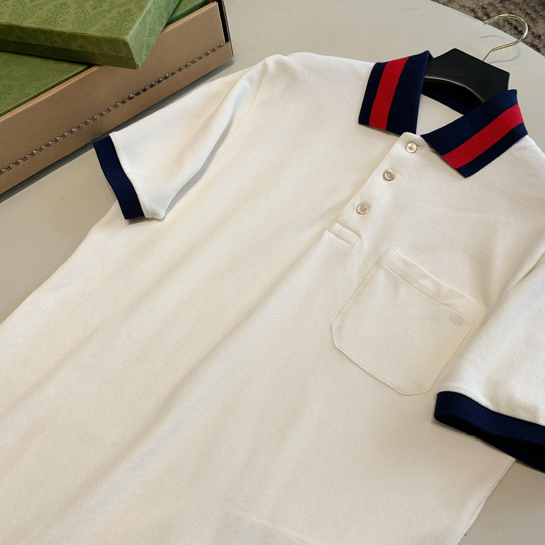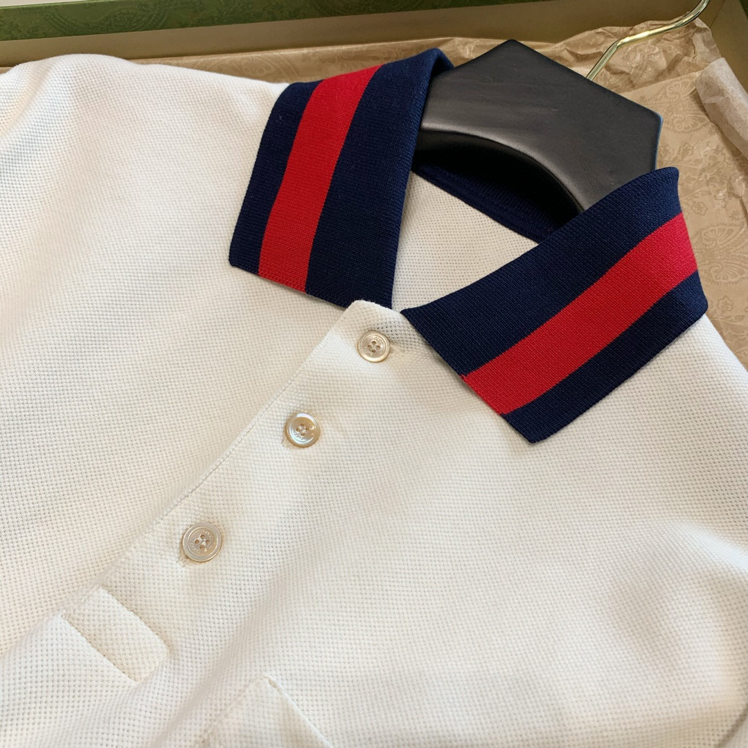 Gucci Cotton Piquet Polo With Web Collar Men's Summer Short Sleeve Polo Shirt #nigo96343