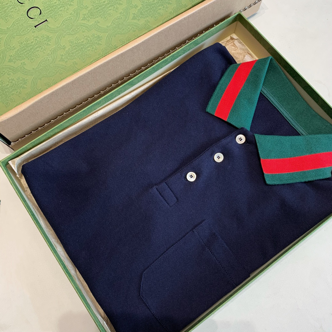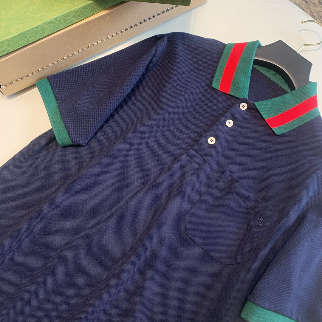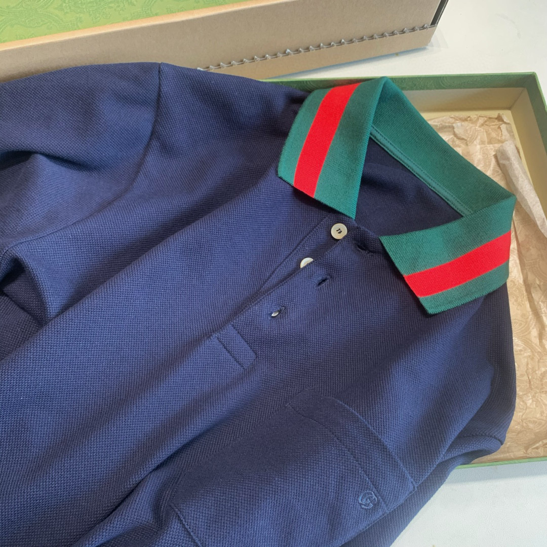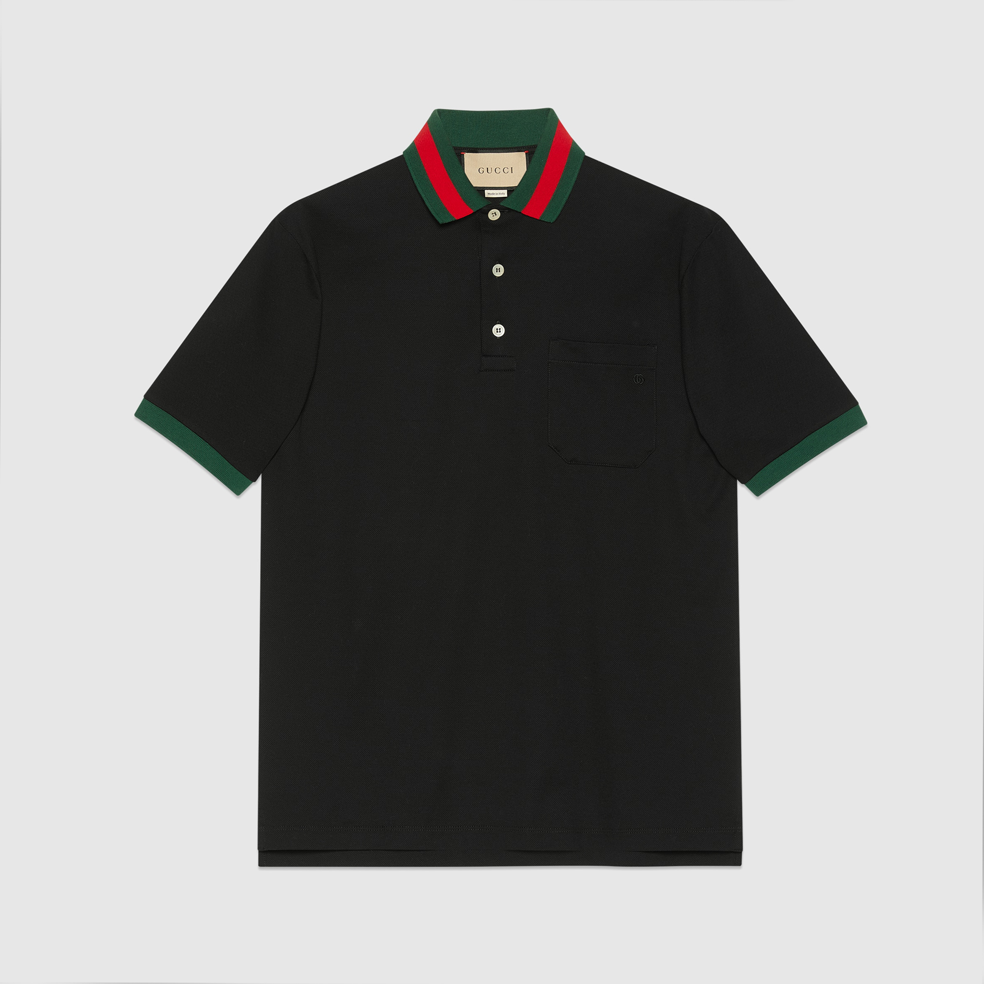 Gucci Cotton Piquet Polo With Web Collar Men's Summer Short Sleeve Polo Shirt #nigo96343