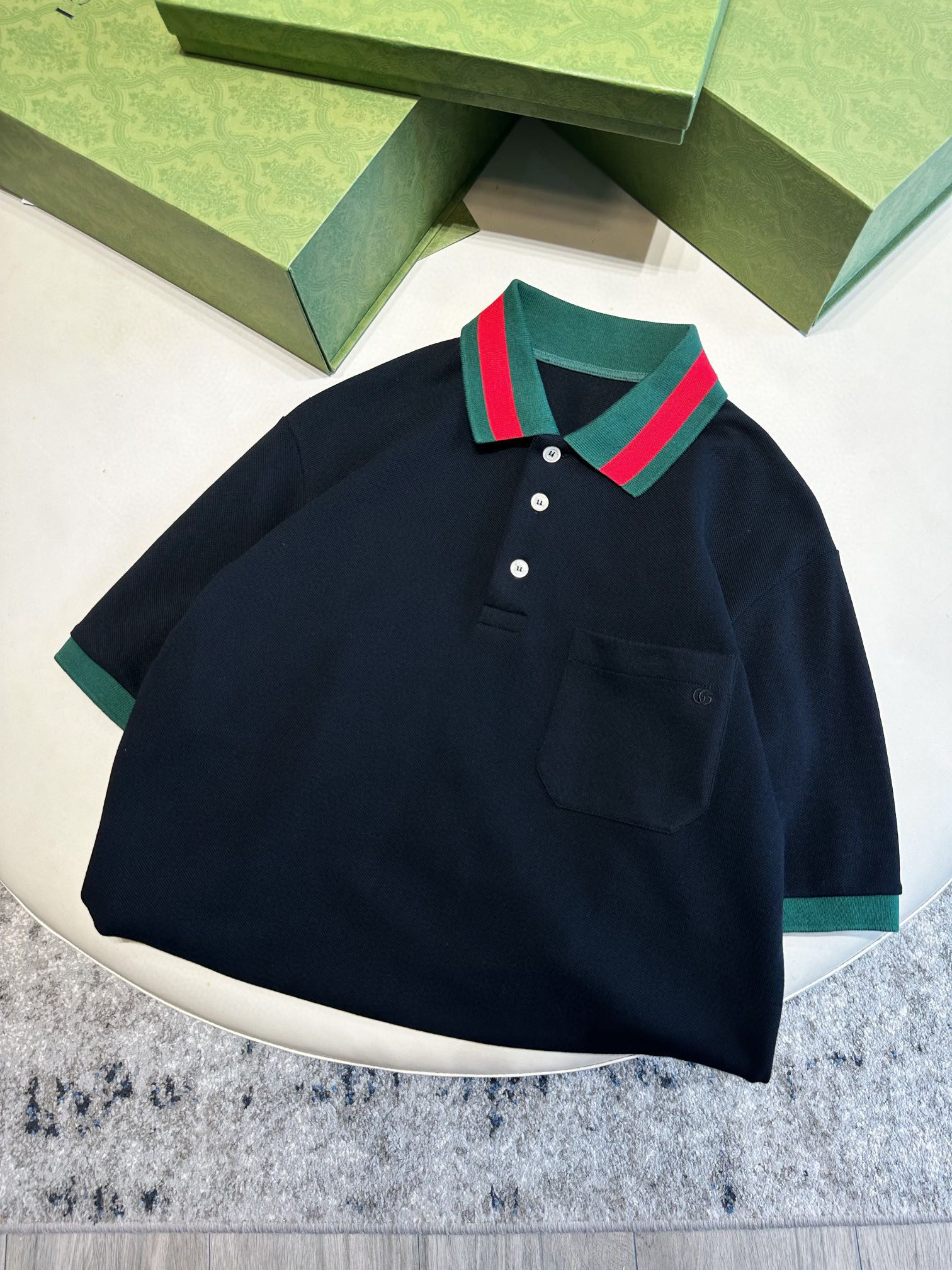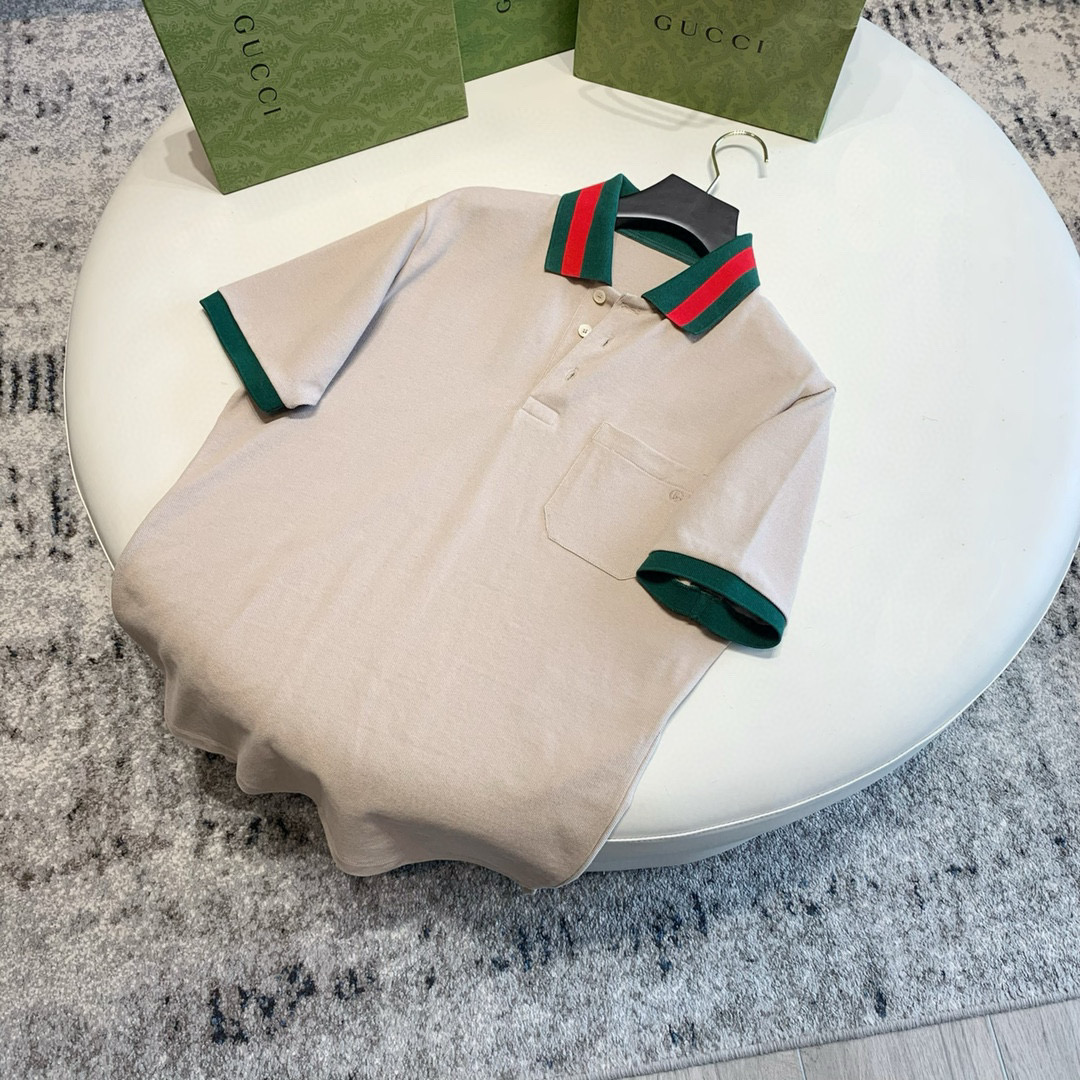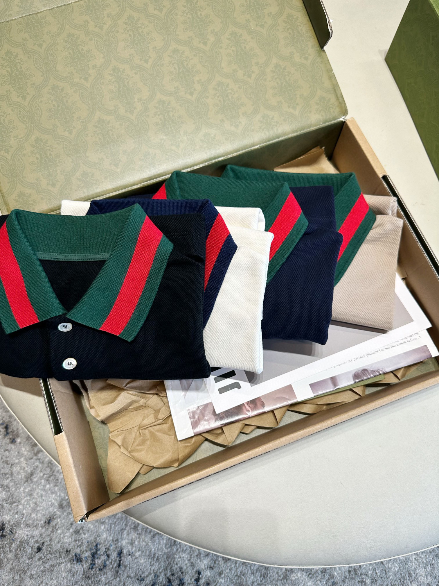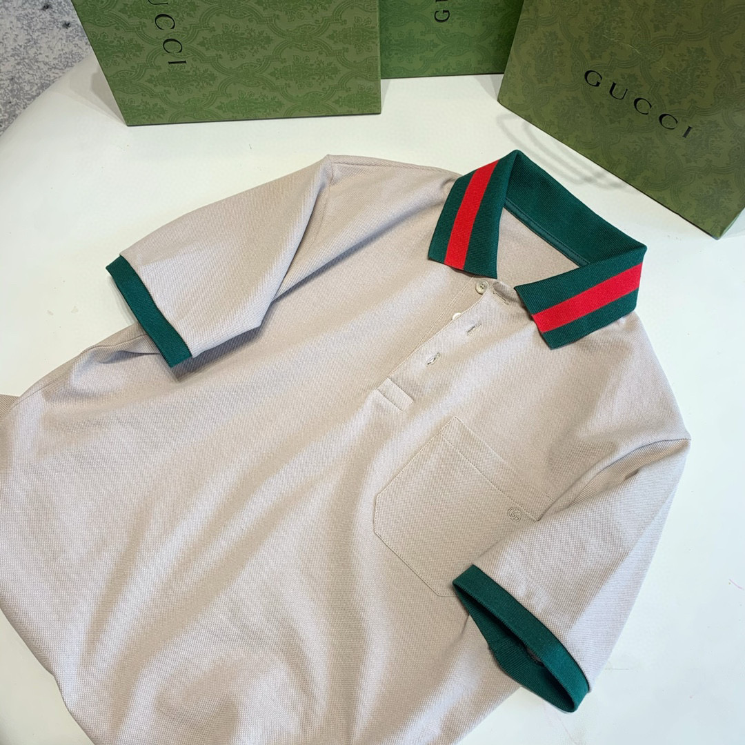 Gucci Cotton Piquet Polo With Web Collar Men's Summer Short Sleeve Polo Shirt #nigo96343