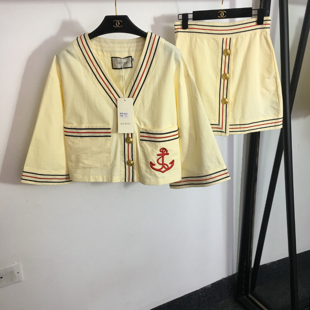 Gucci NIGO Woman Summer Buckle Up Short Sleeved Half Length Short Skirt Set #nigo21541