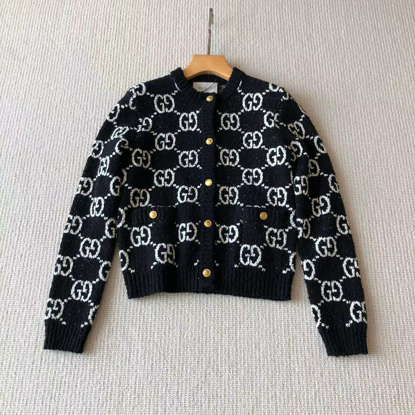 Gucci NIGO Woman Spring And Autumn Black Knitted Cardigan Top #nigo57157