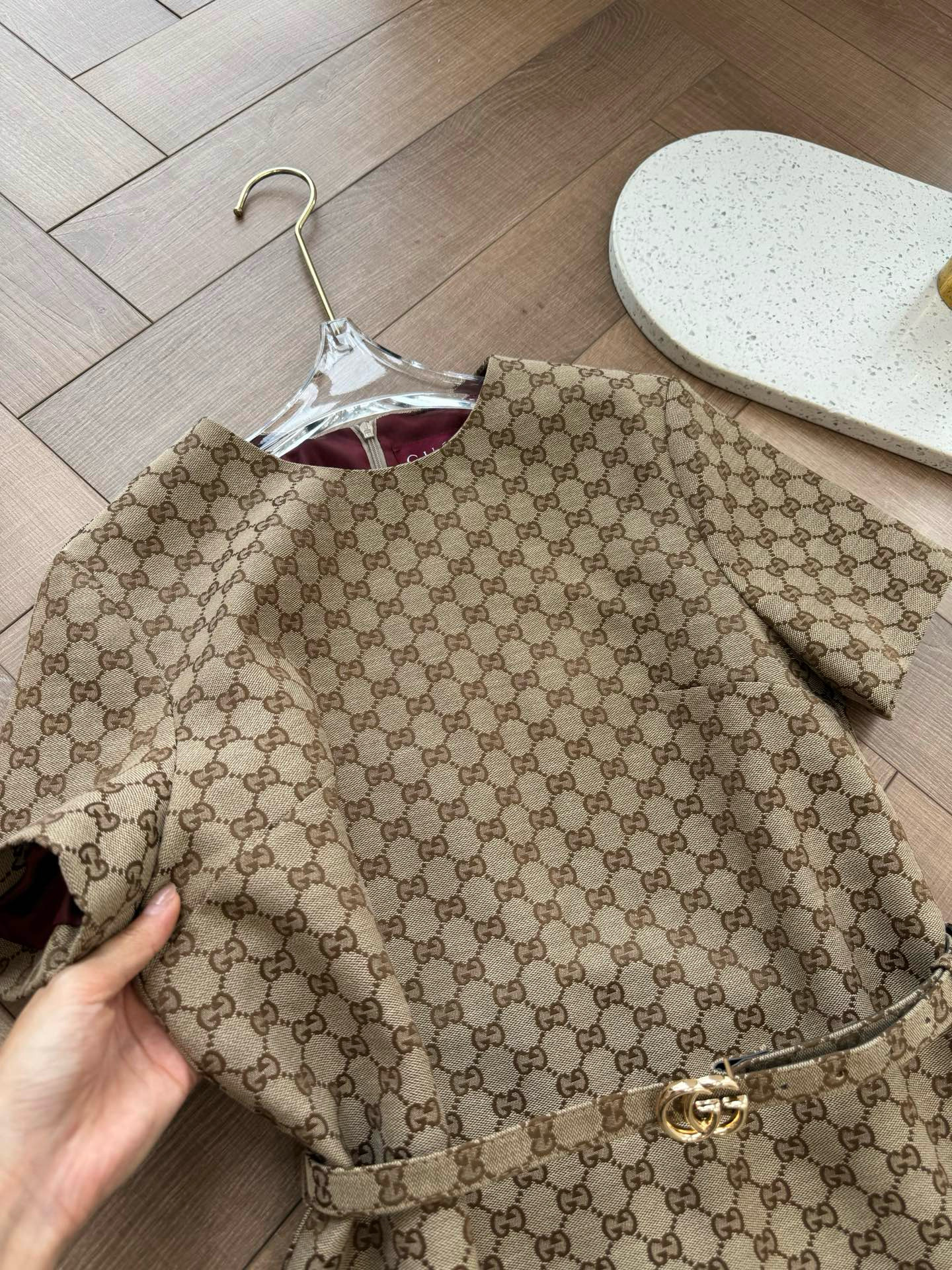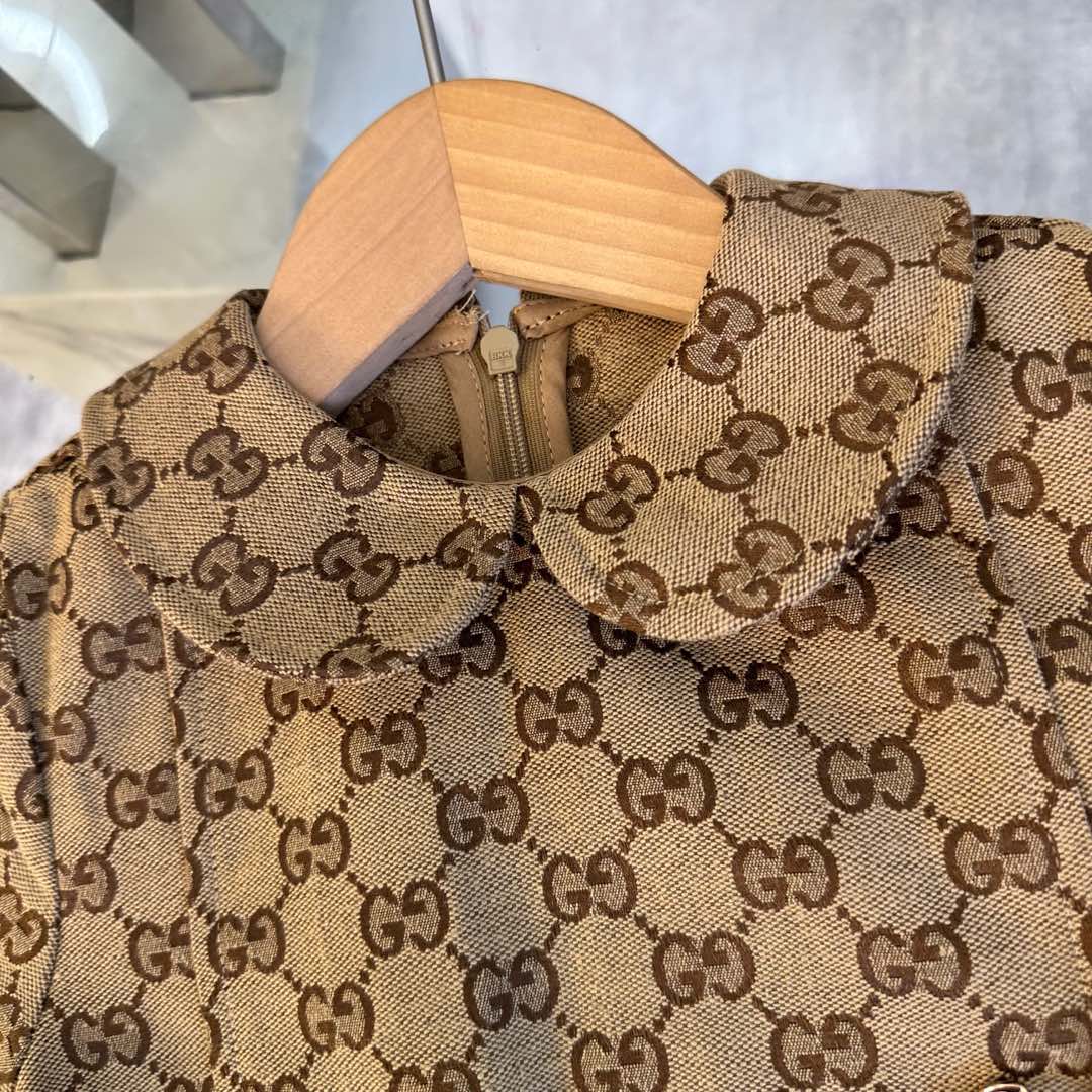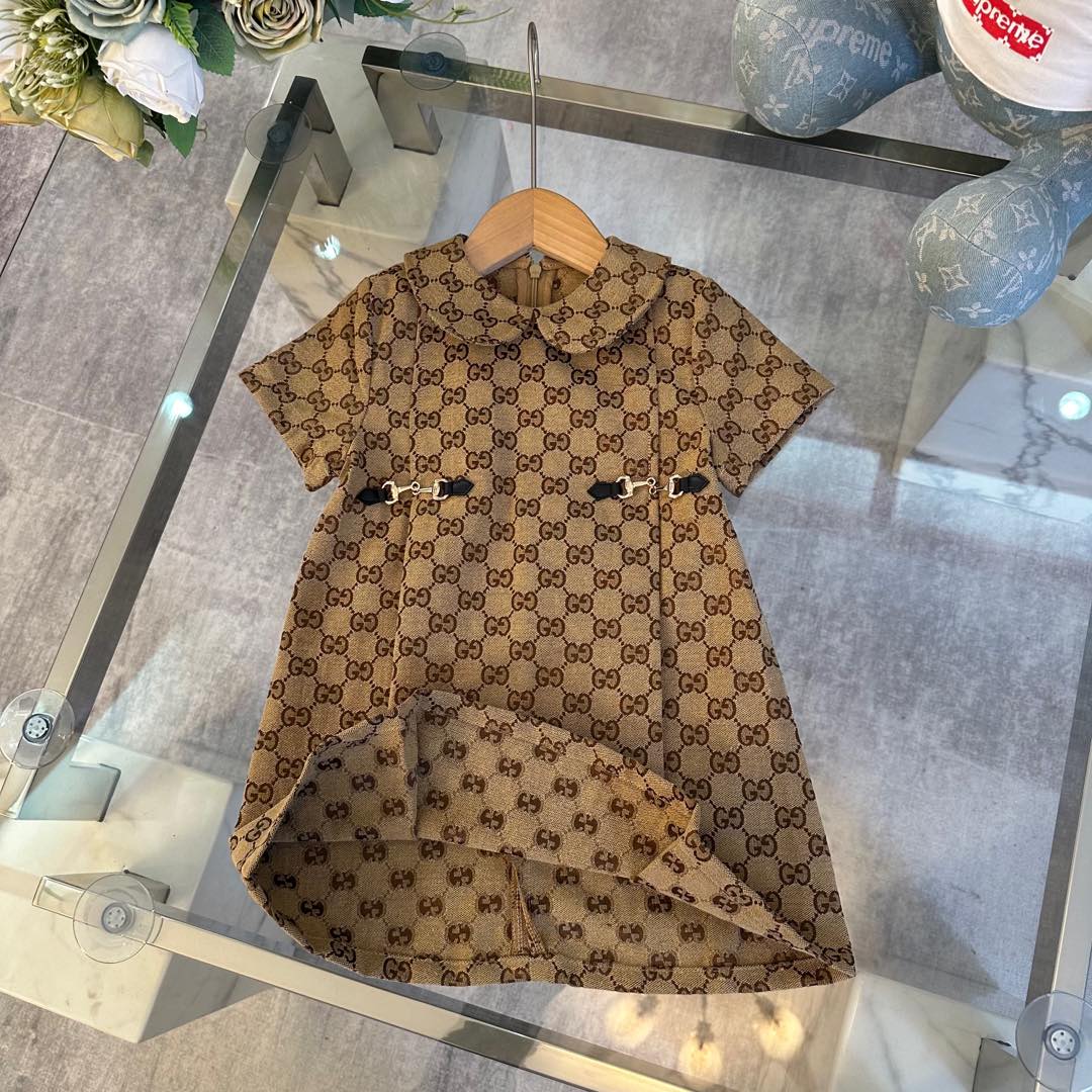 NIGO Gucci Kid's Summer GG Full Print Doll Neck Short Sleeve Cotton Dresses #nigo31361