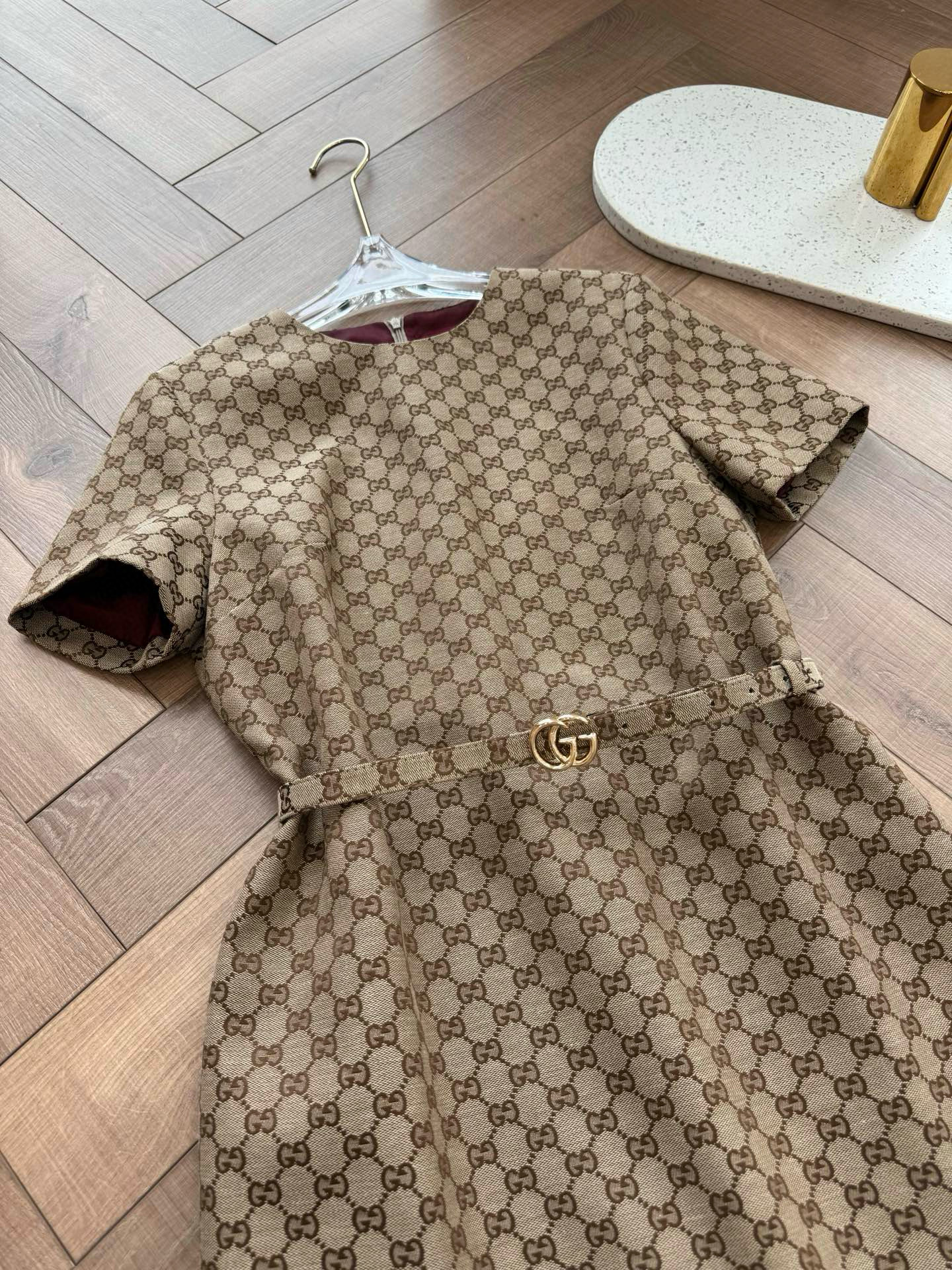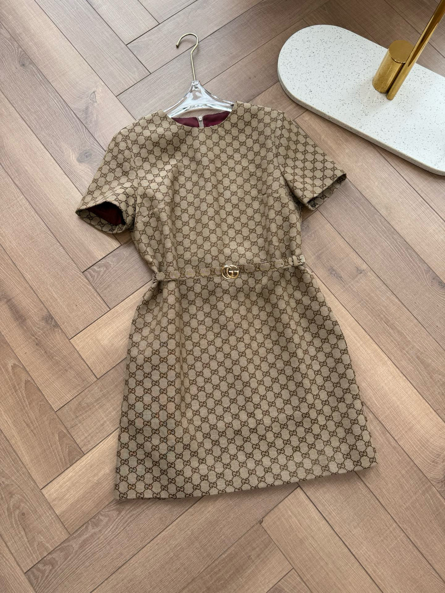 NIGO Gucci Women's Spring/Summer Round Neck Drawstring Waist Letter Printed Jacquard Short Sleeve Dresses #nigo76512