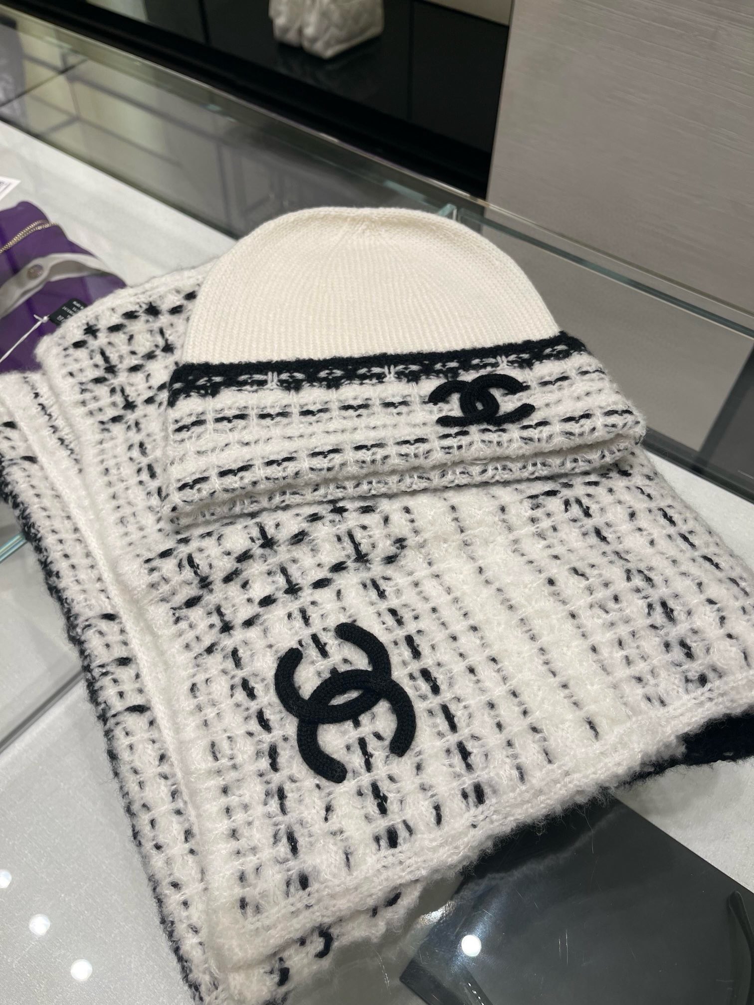 NIGO Chanel Women's Winter Black and White Wool Knit Hat Cap Scarf #nigo73494