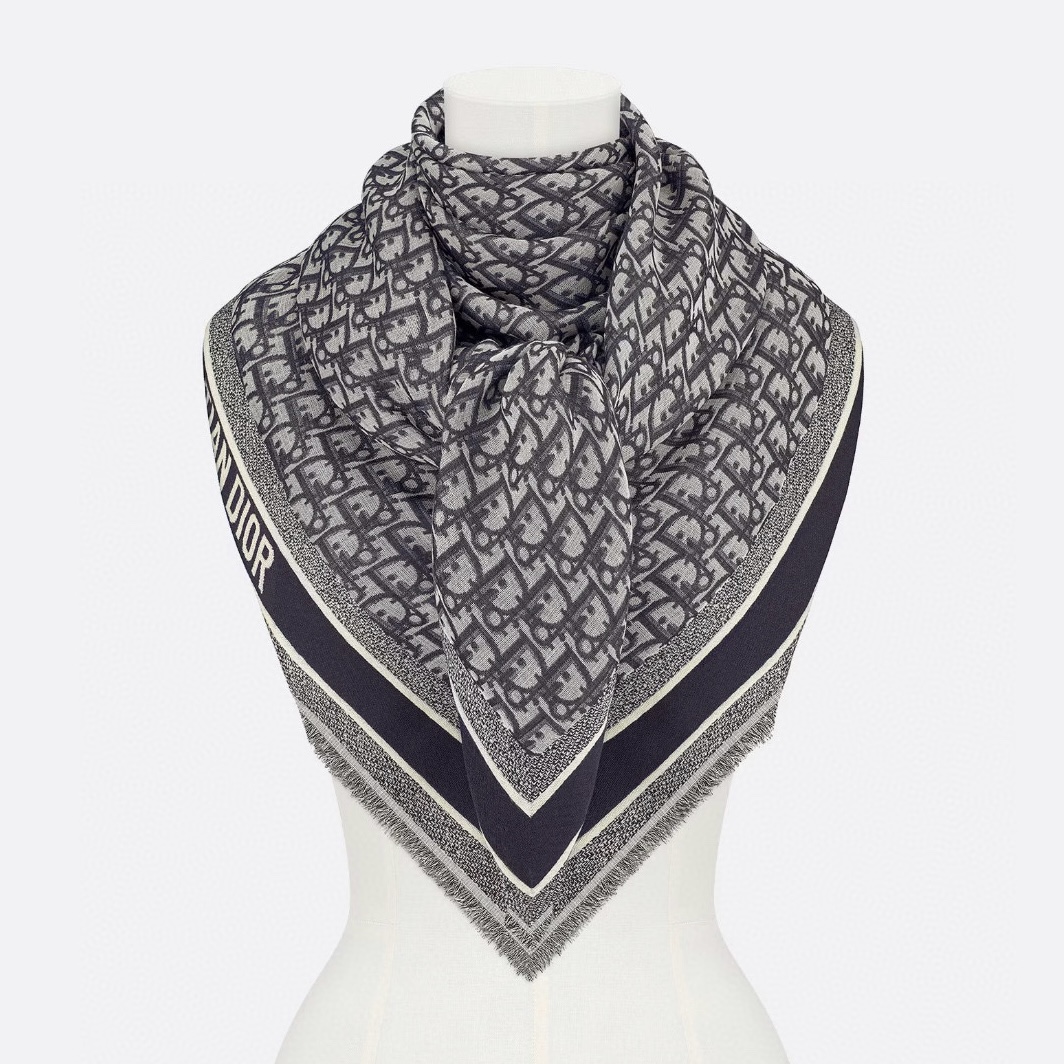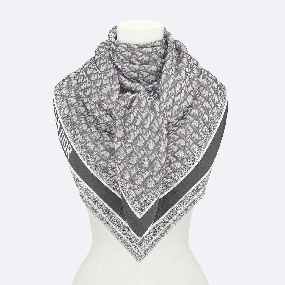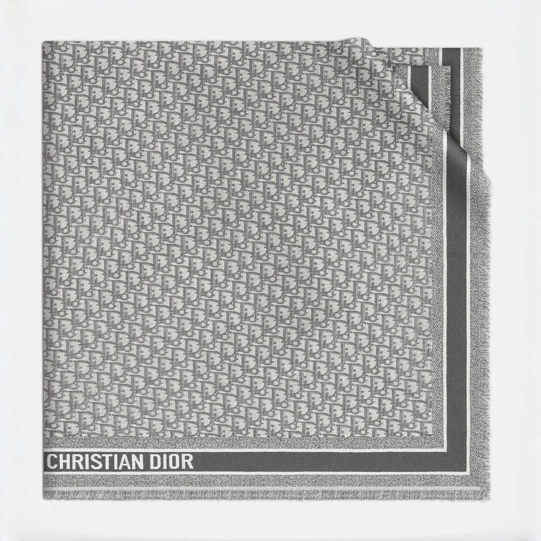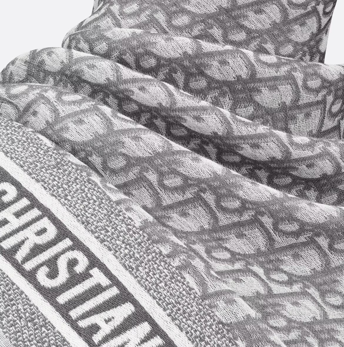 NIGO Dior Women's Gray Monogrammed Wool, Mulberry Silk & Cotton Blend Shawl Scarf #nigo72748
