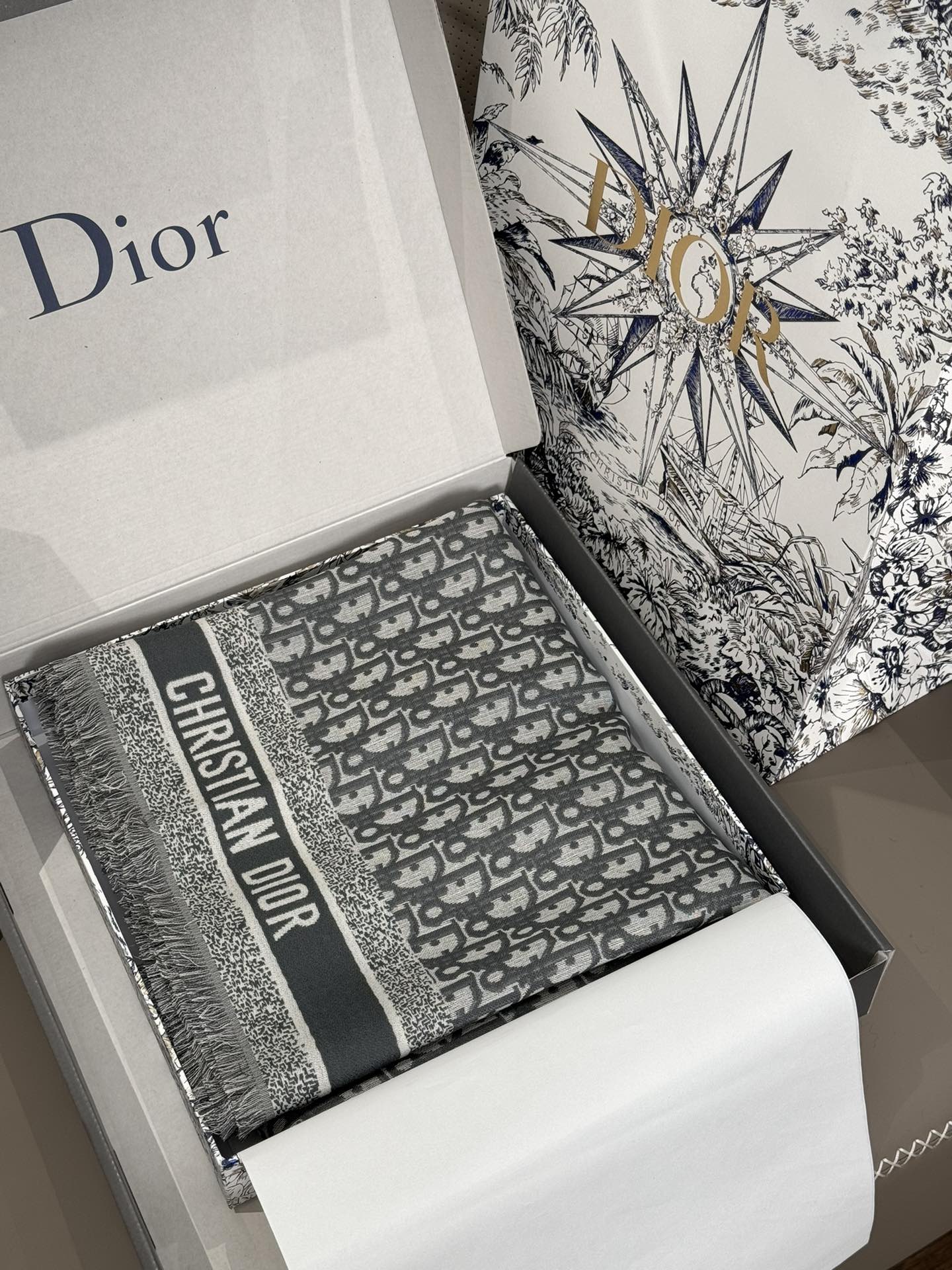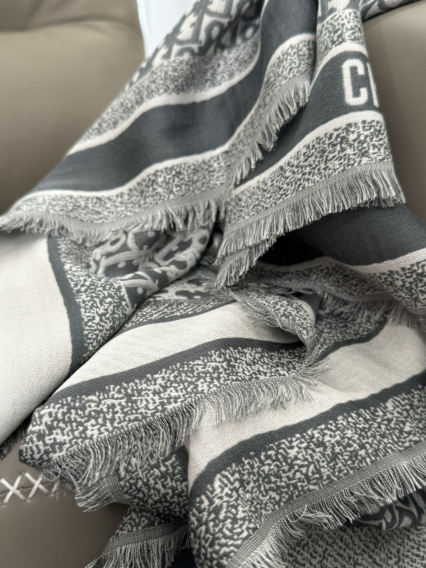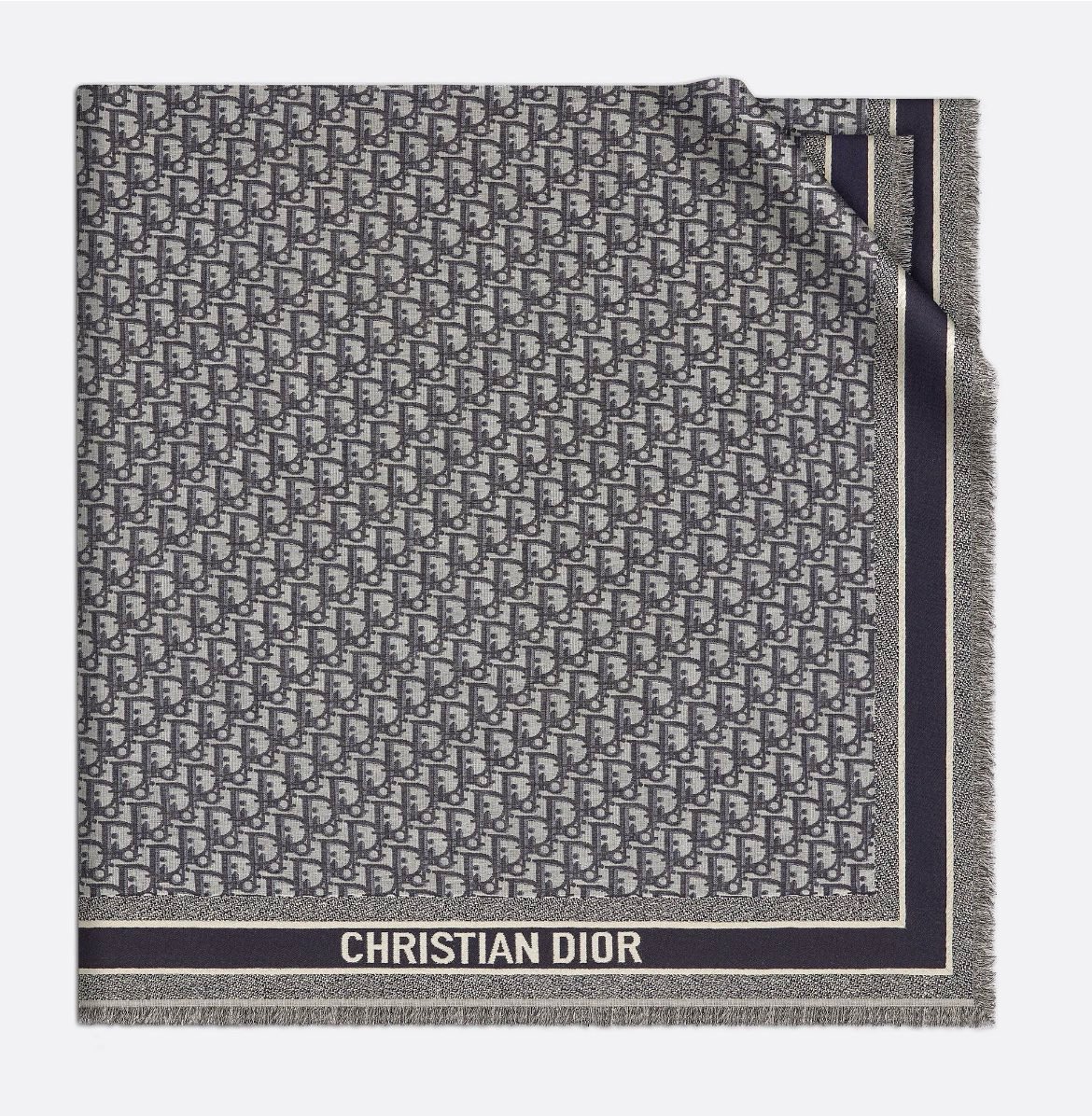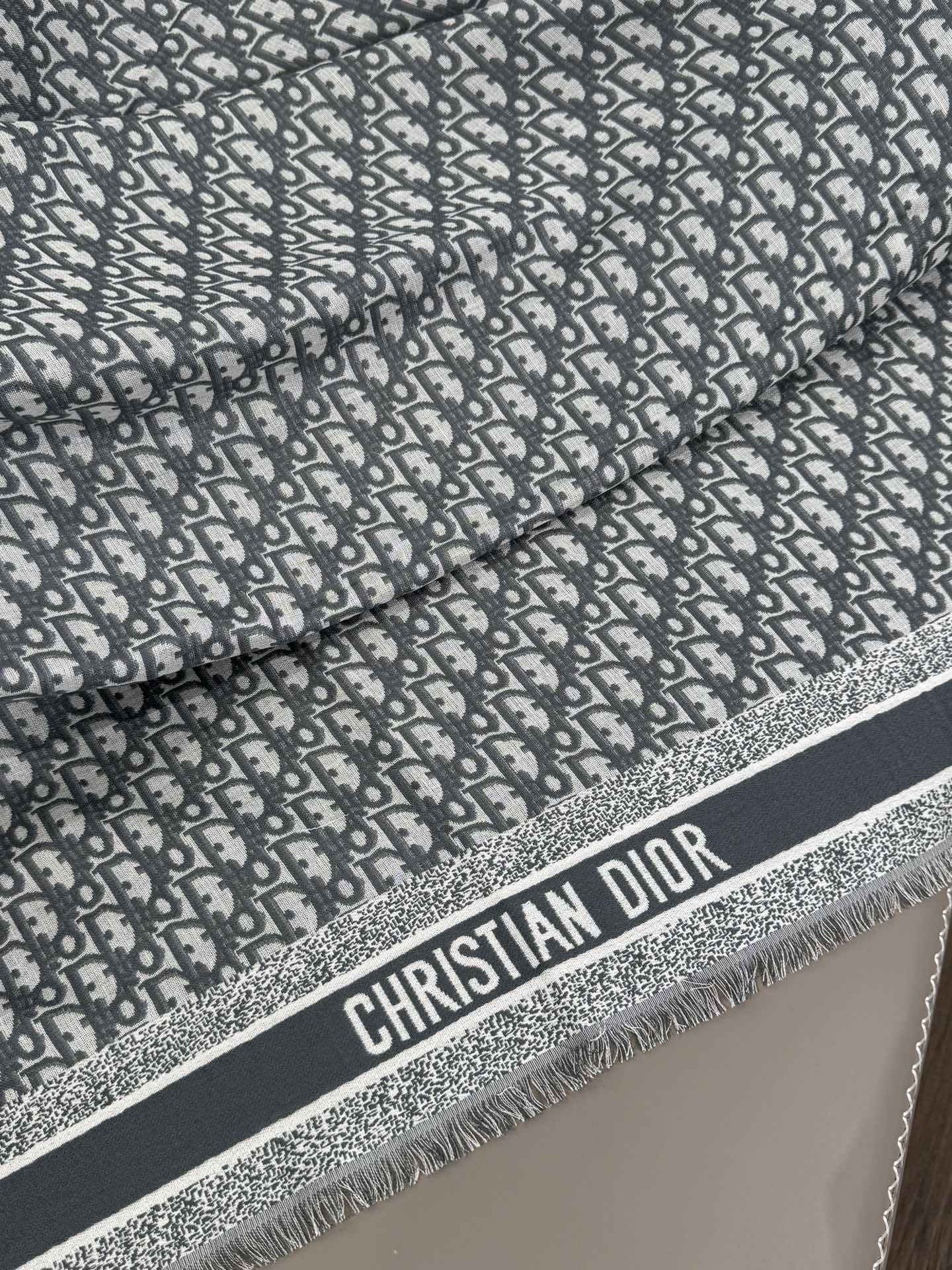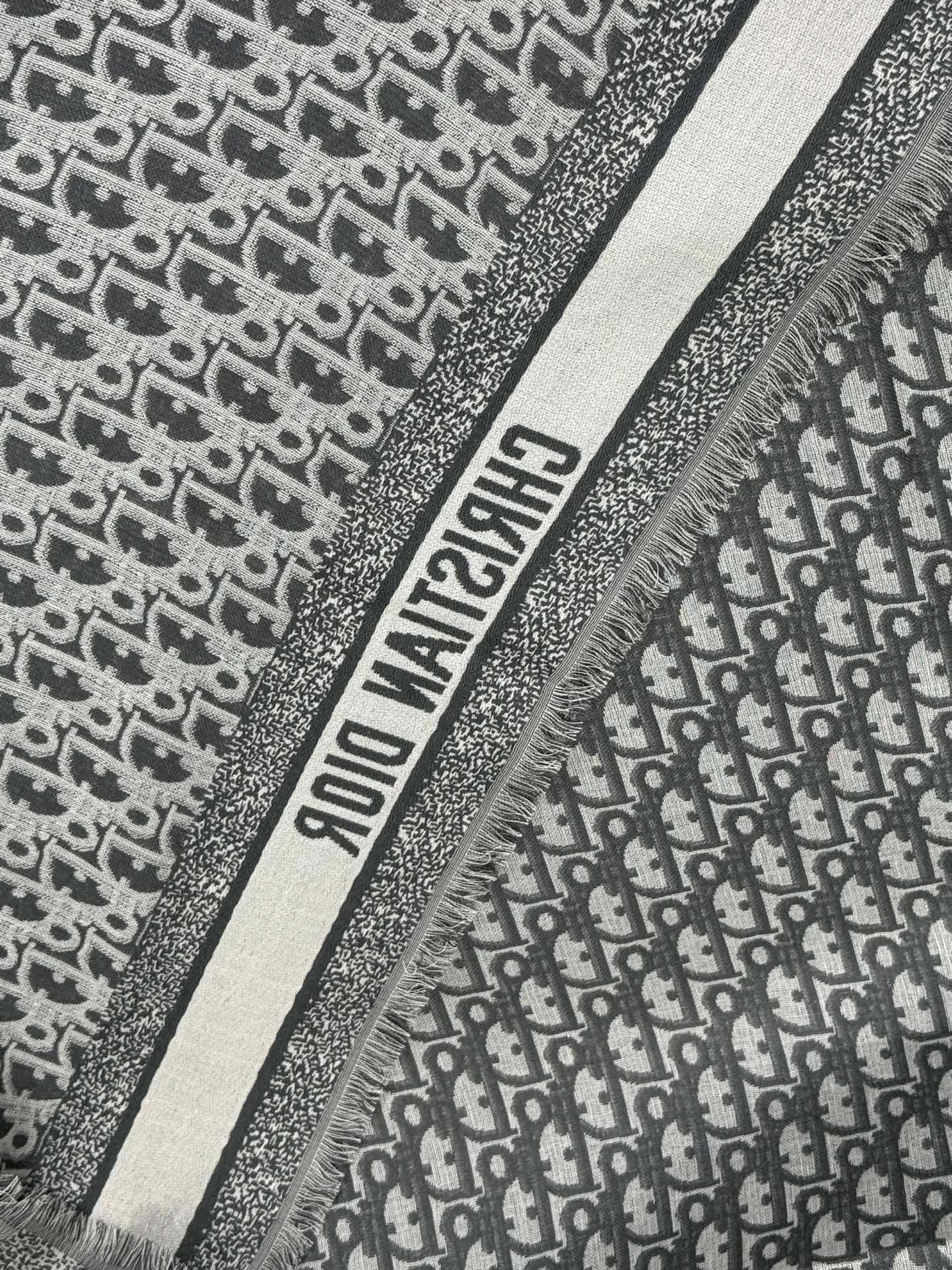 NIGO Dior Women's Gray Monogrammed Wool, Mulberry Silk & Cotton Blend Shawl Scarf #nigo72748