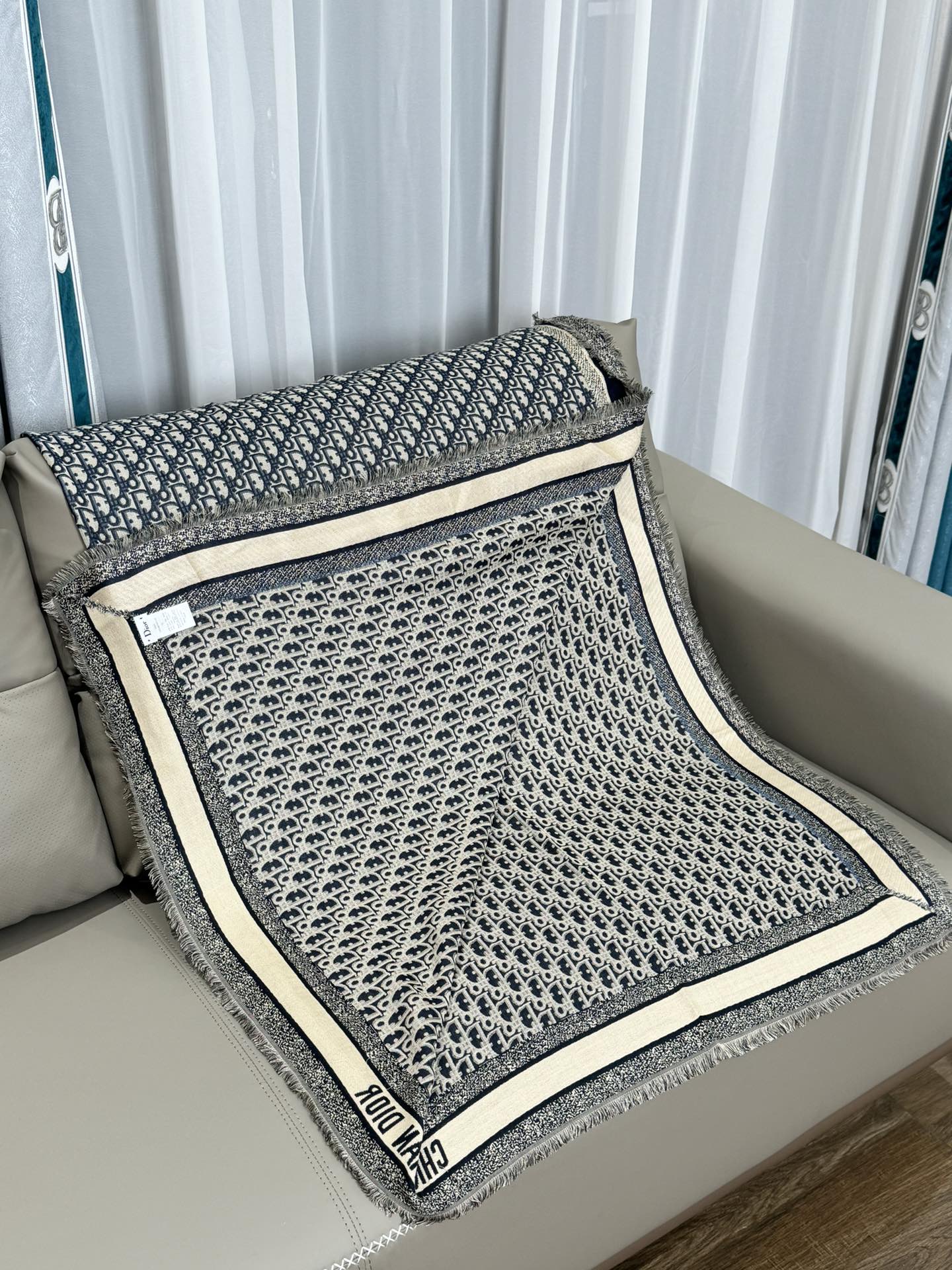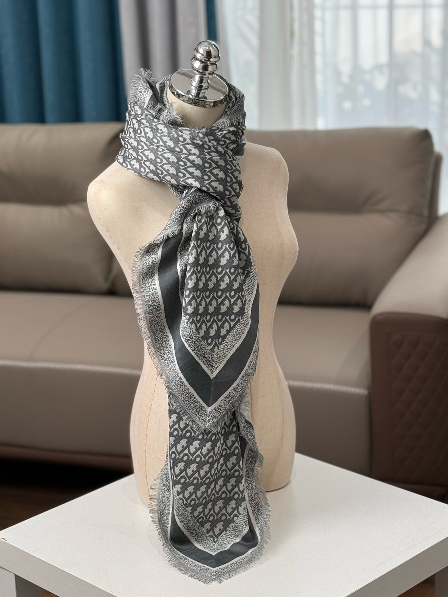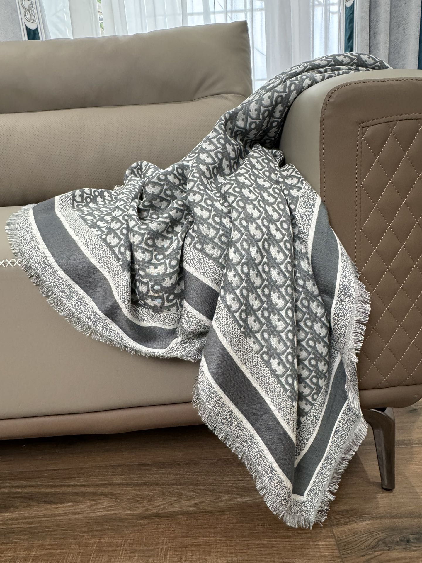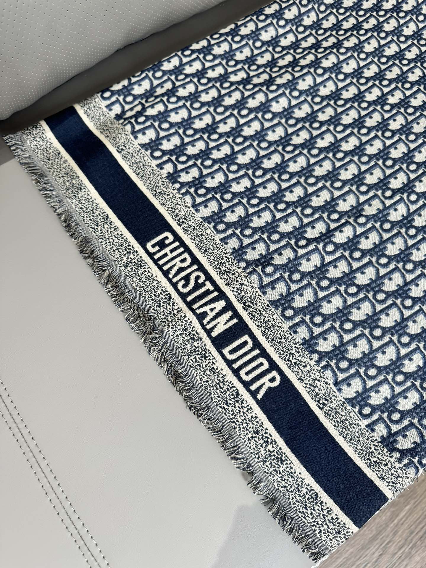 NIGO Dior Women's Gray Monogrammed Wool, Mulberry Silk & Cotton Blend Shawl Scarf #nigo72748