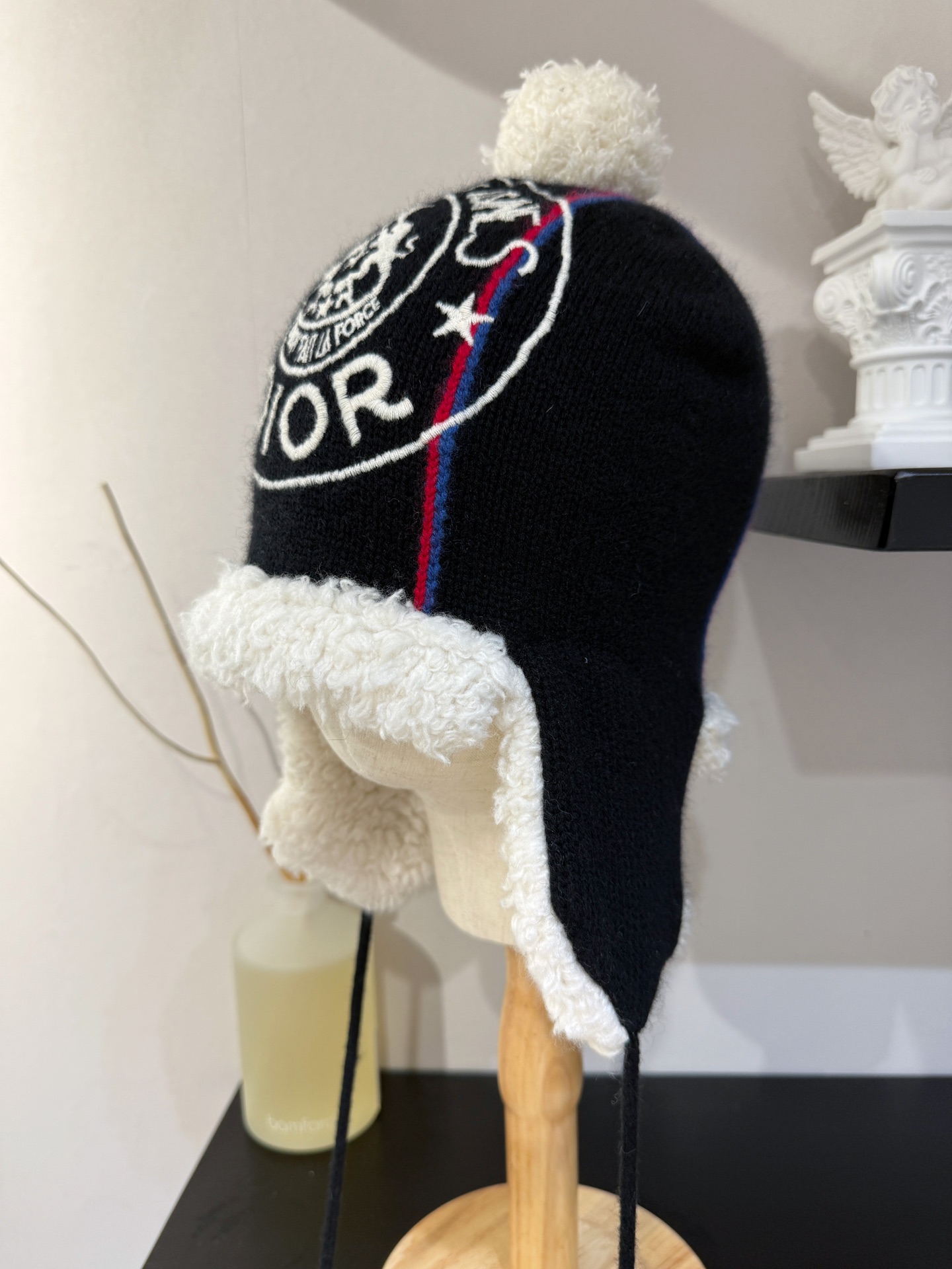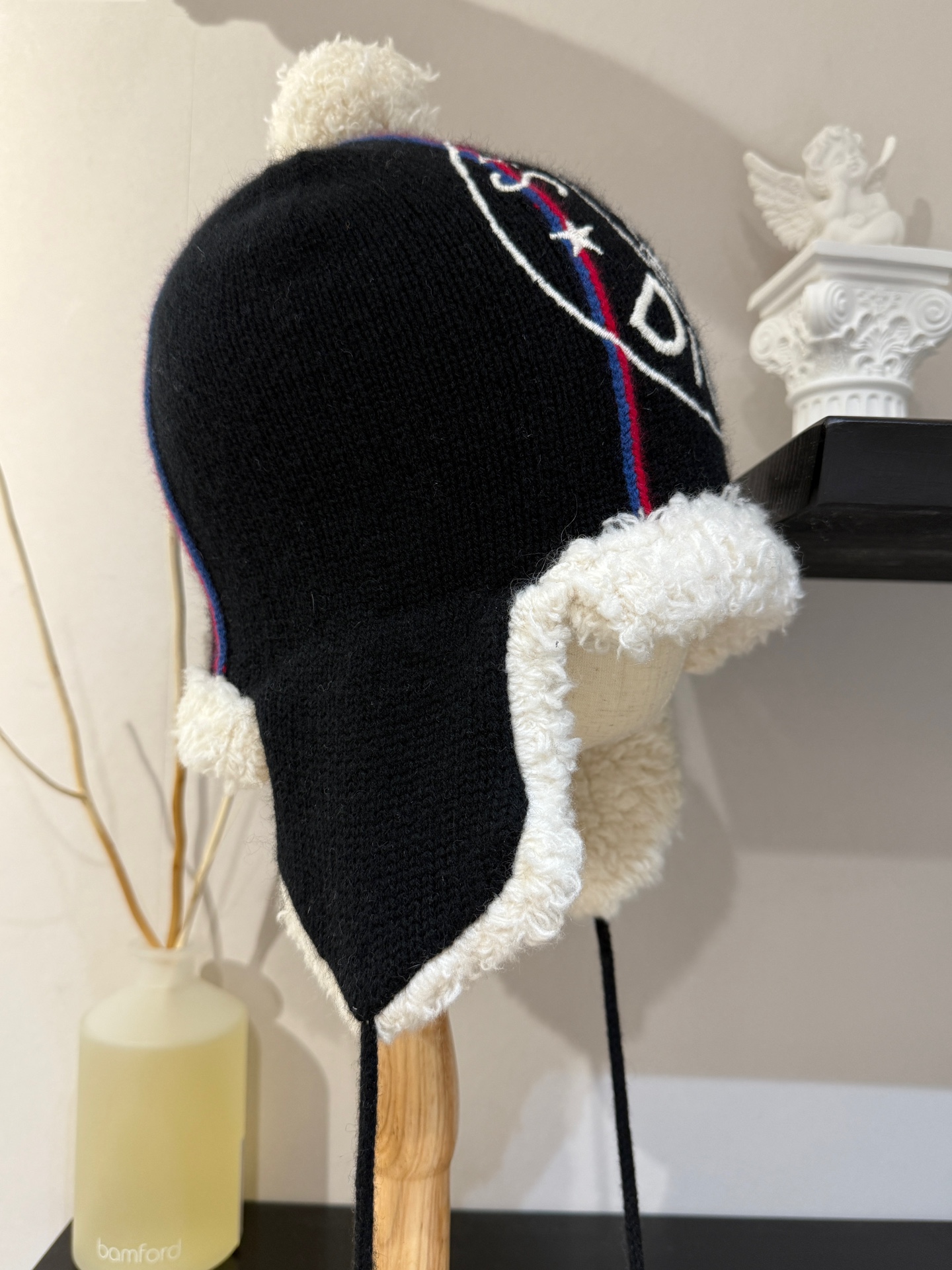 NIGO Dior Women's Men's Ski Hat Hairball Ear Protection Hat Cashmere Warm Line Cap #nigo73978