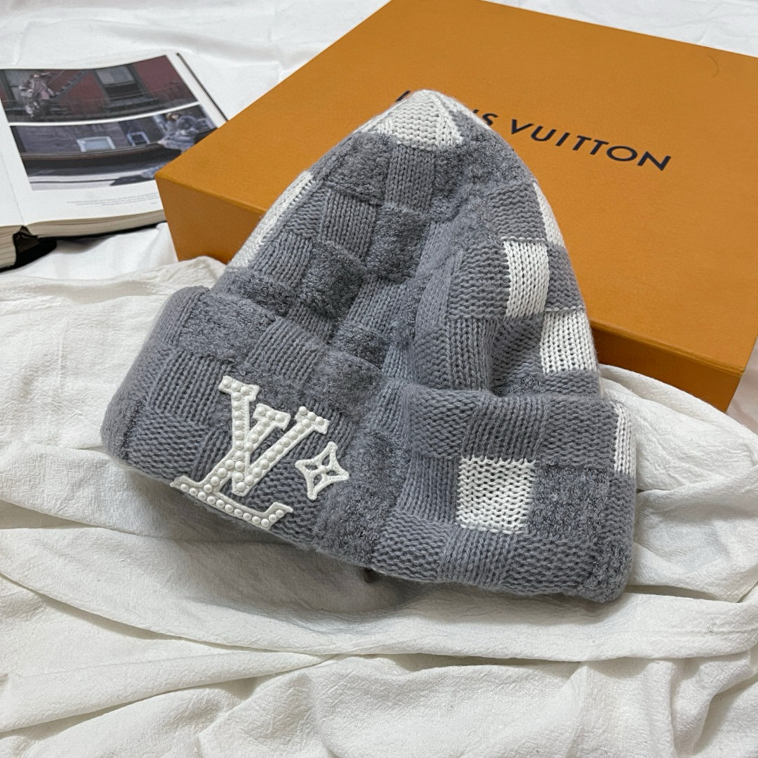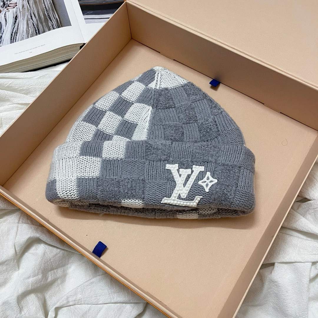 NIGO Louis Vuitton Men's and Women's Logo Embroidered Gray Sheep Wool Pom Pom Hat Cap Scarf #nigo73793