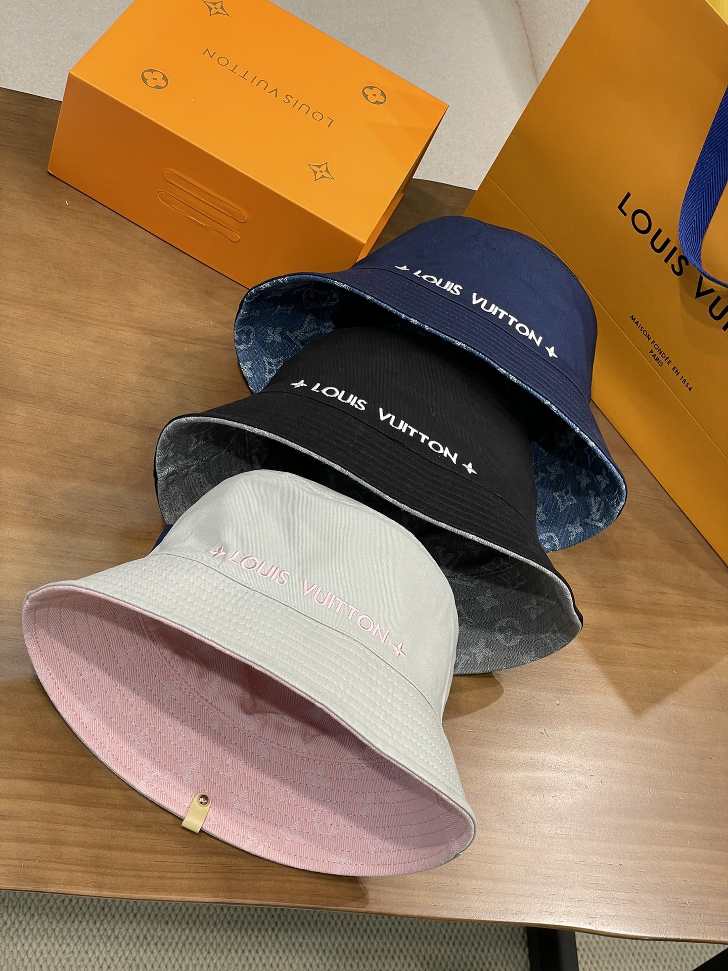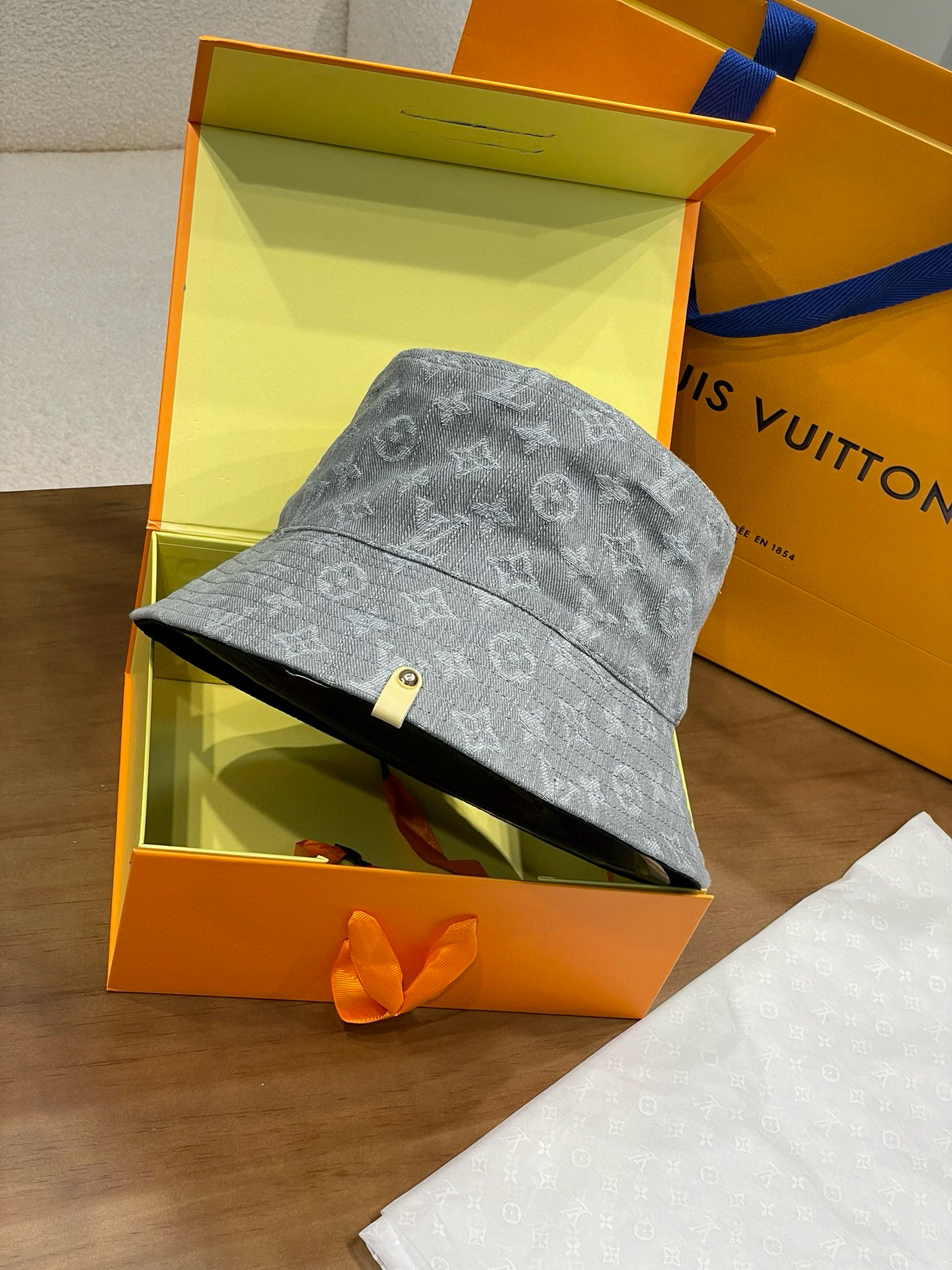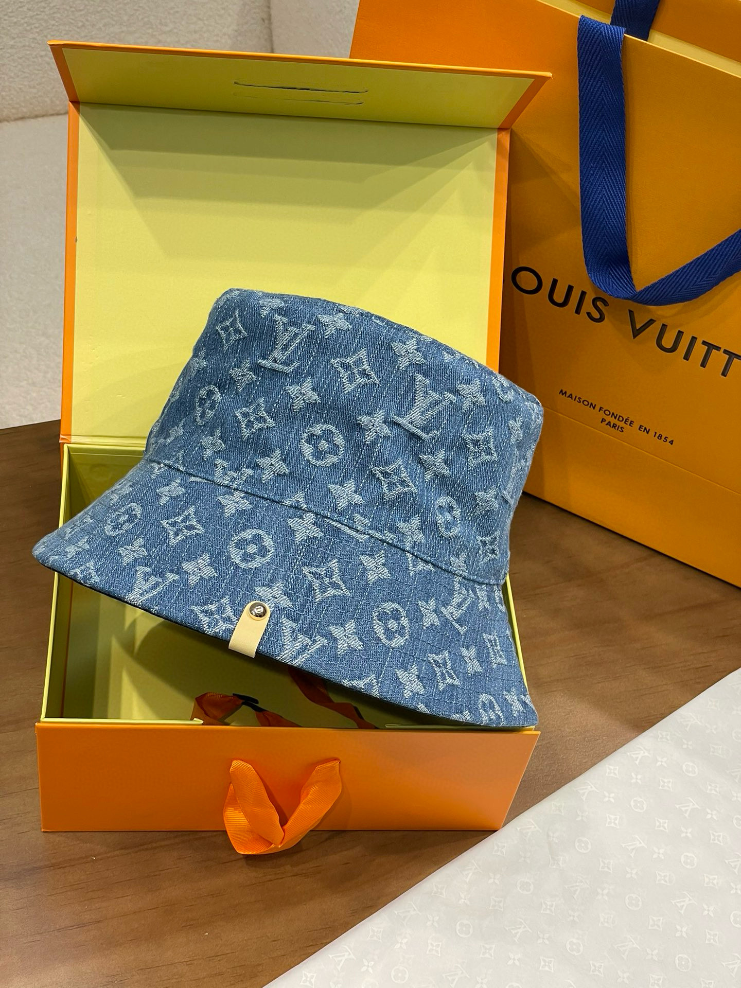 NIGO Nautical Louis Vuitton Men's and Women's Solid Colour Letter Printed Denim Fisherman's Hat Baseball Cap #nigo76888
