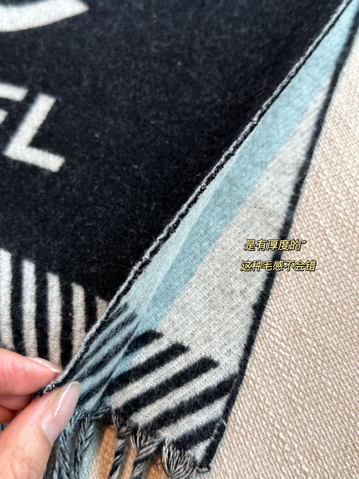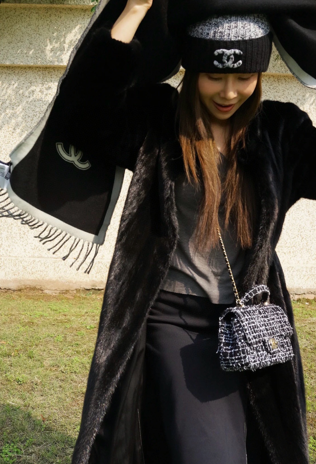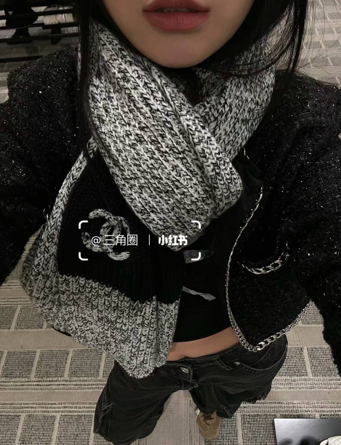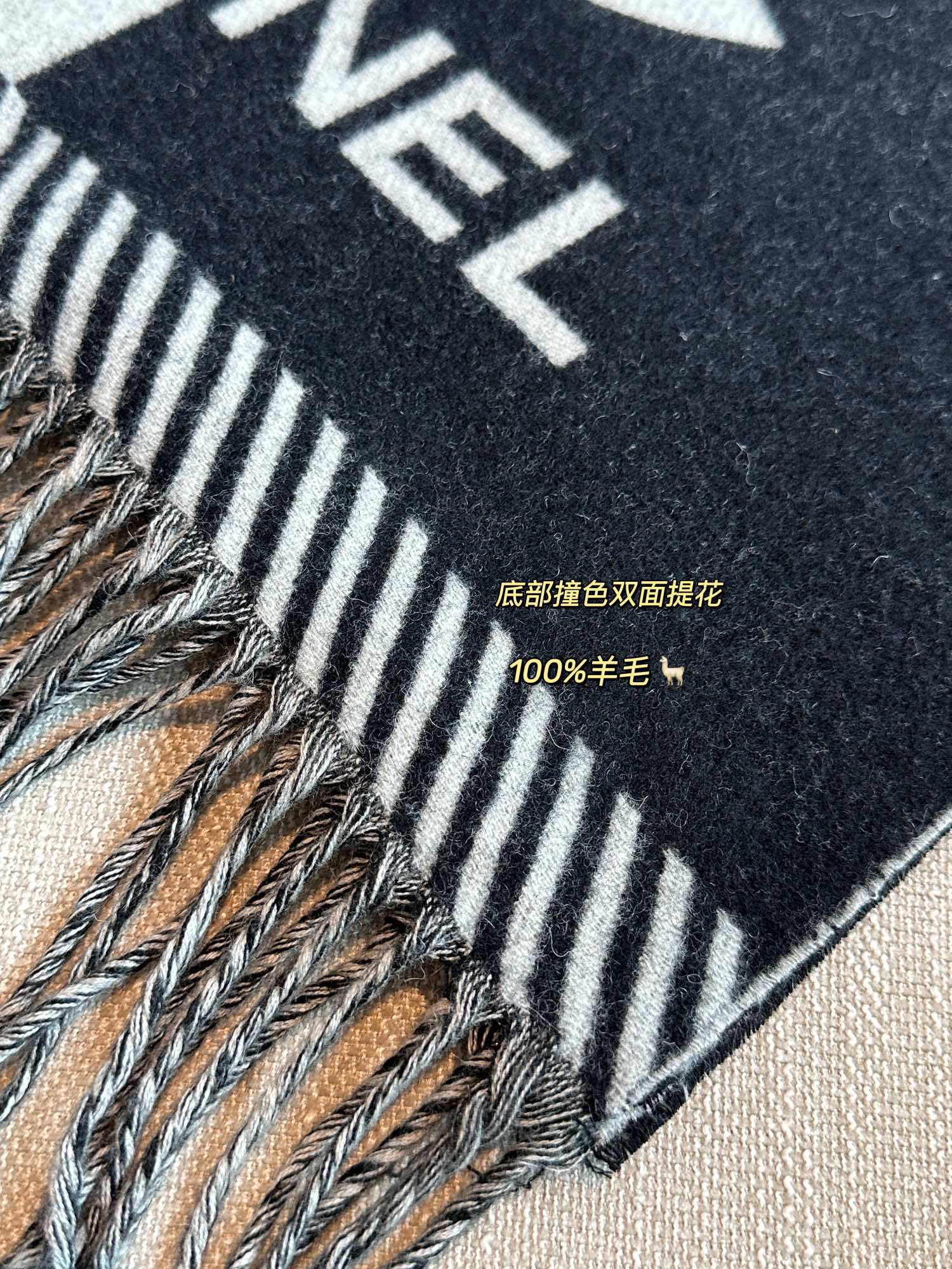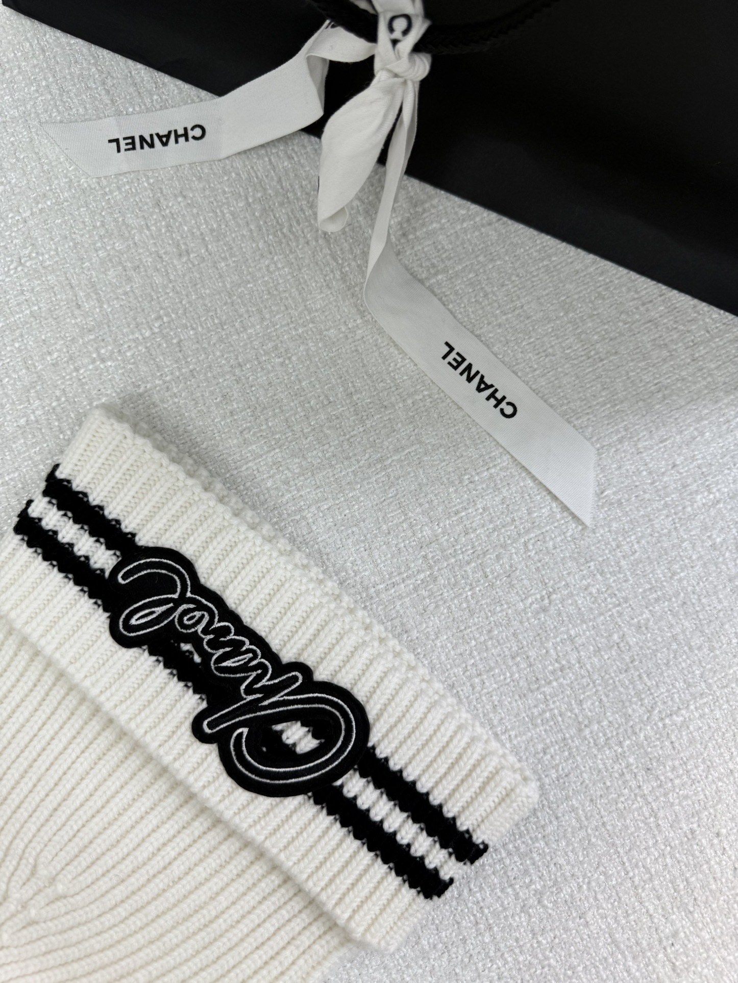 NIGO Chanel Women's Black and White Logo Print Wool Fringe Scarf #nigo74239