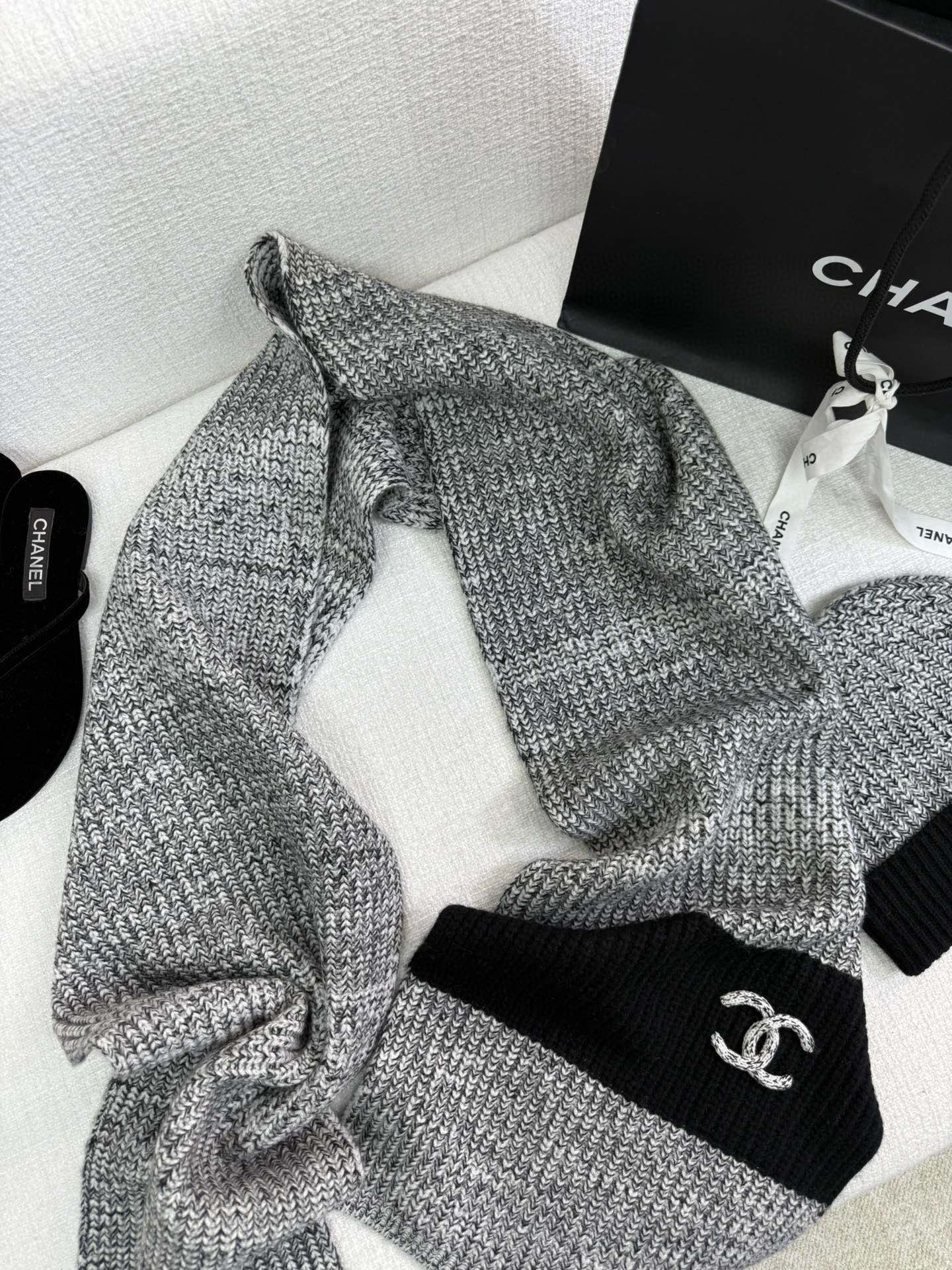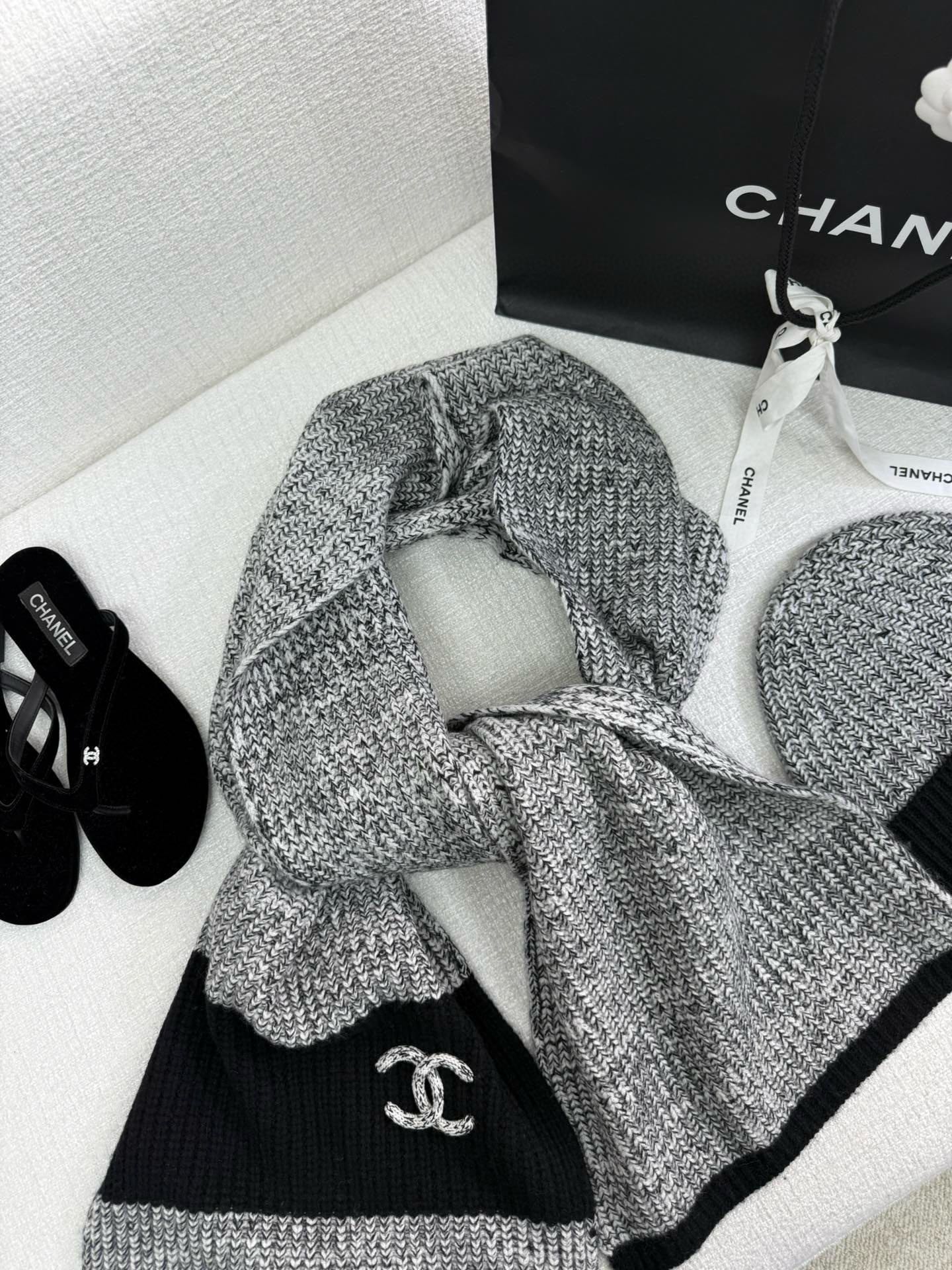 NIGO Chanel Women's Autumn and Winter Solid Color Cashmere Scarf Hat Cap #nigo74228
