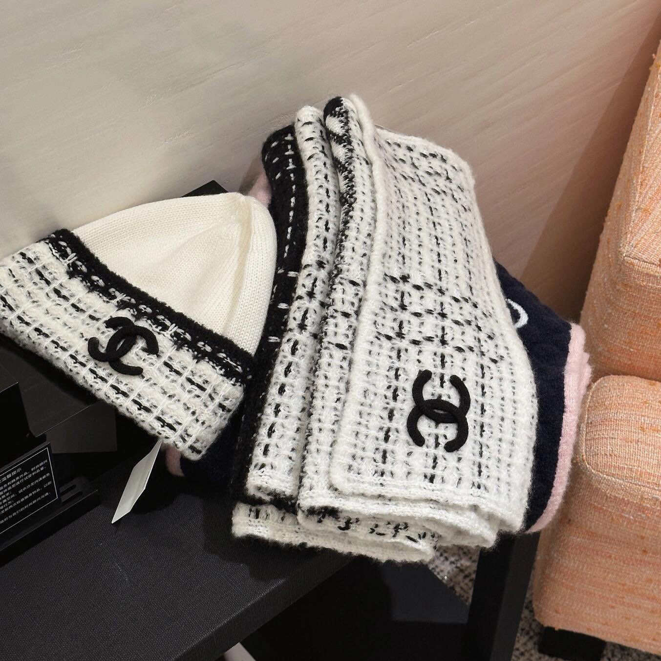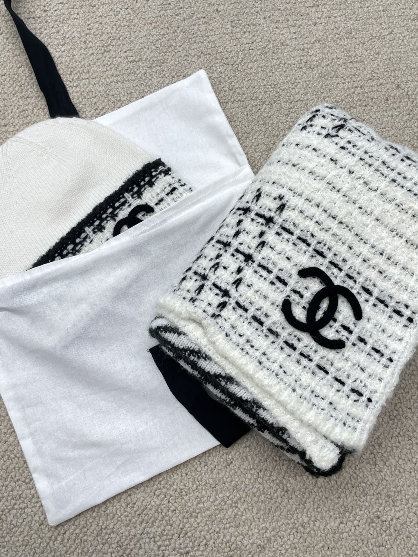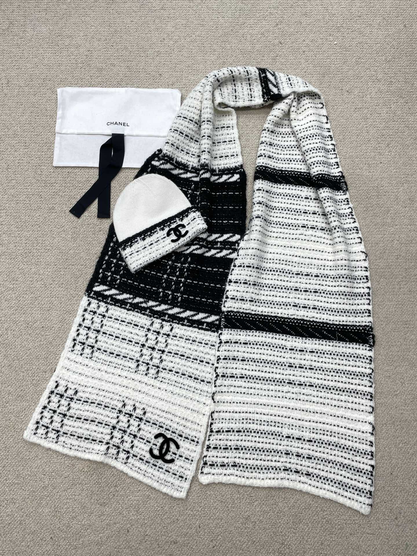 NIGO Chanel Women's Winter Black and White Wool Knit Hat Cap Scarf #nigo73494