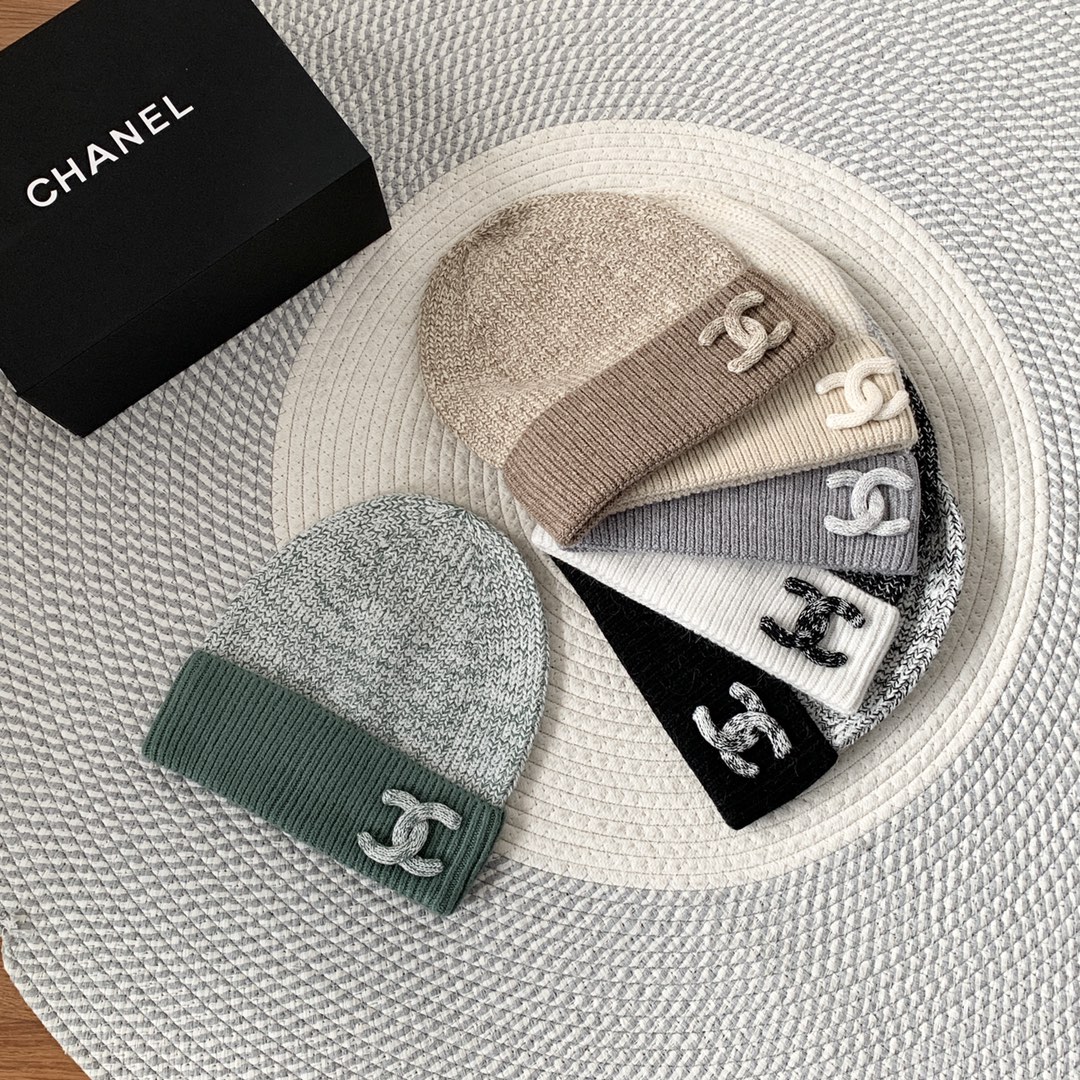 NIGO Chanel Women's Autumn and Winter Colorblocking Cashmere Pompom Hat Cap #nigo73632