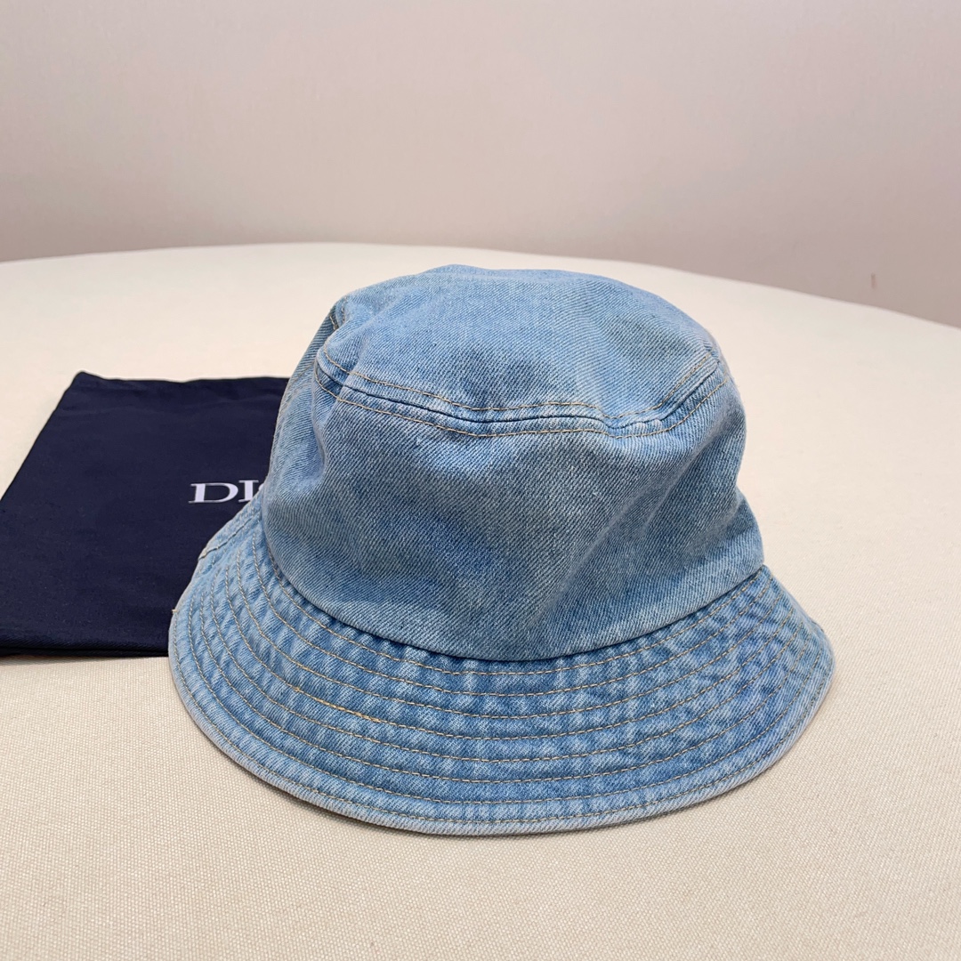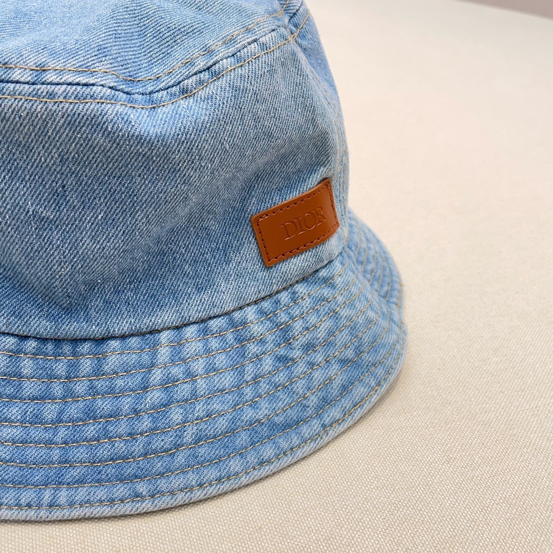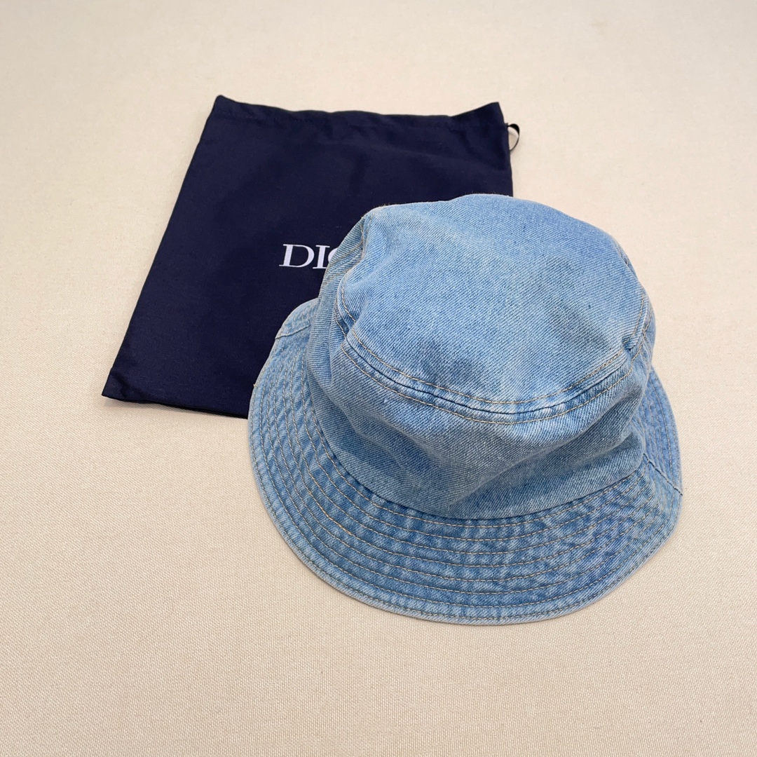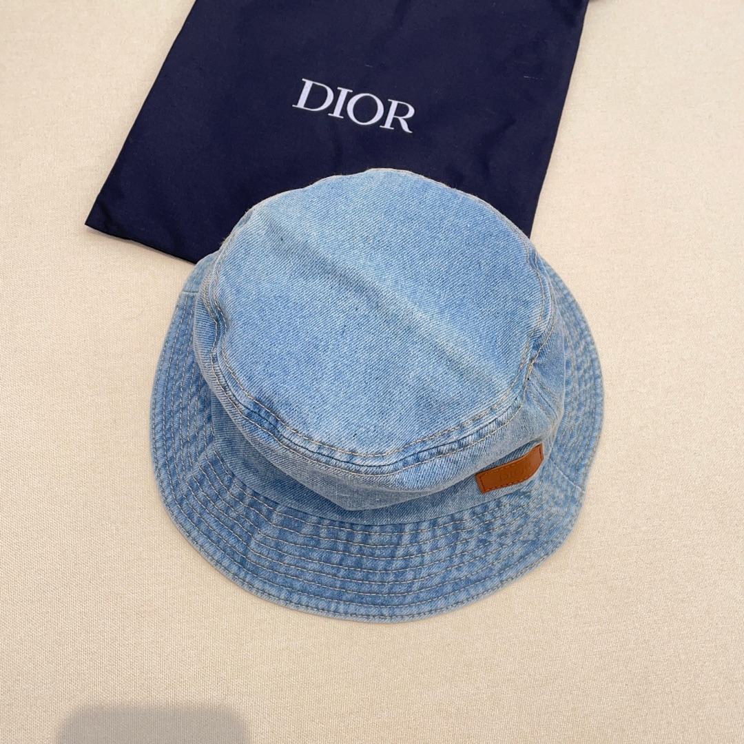 NIGO Dior Men's and Women's Blue Embossed Leather Labeled Fisherman's Hat Cap #nigo99836