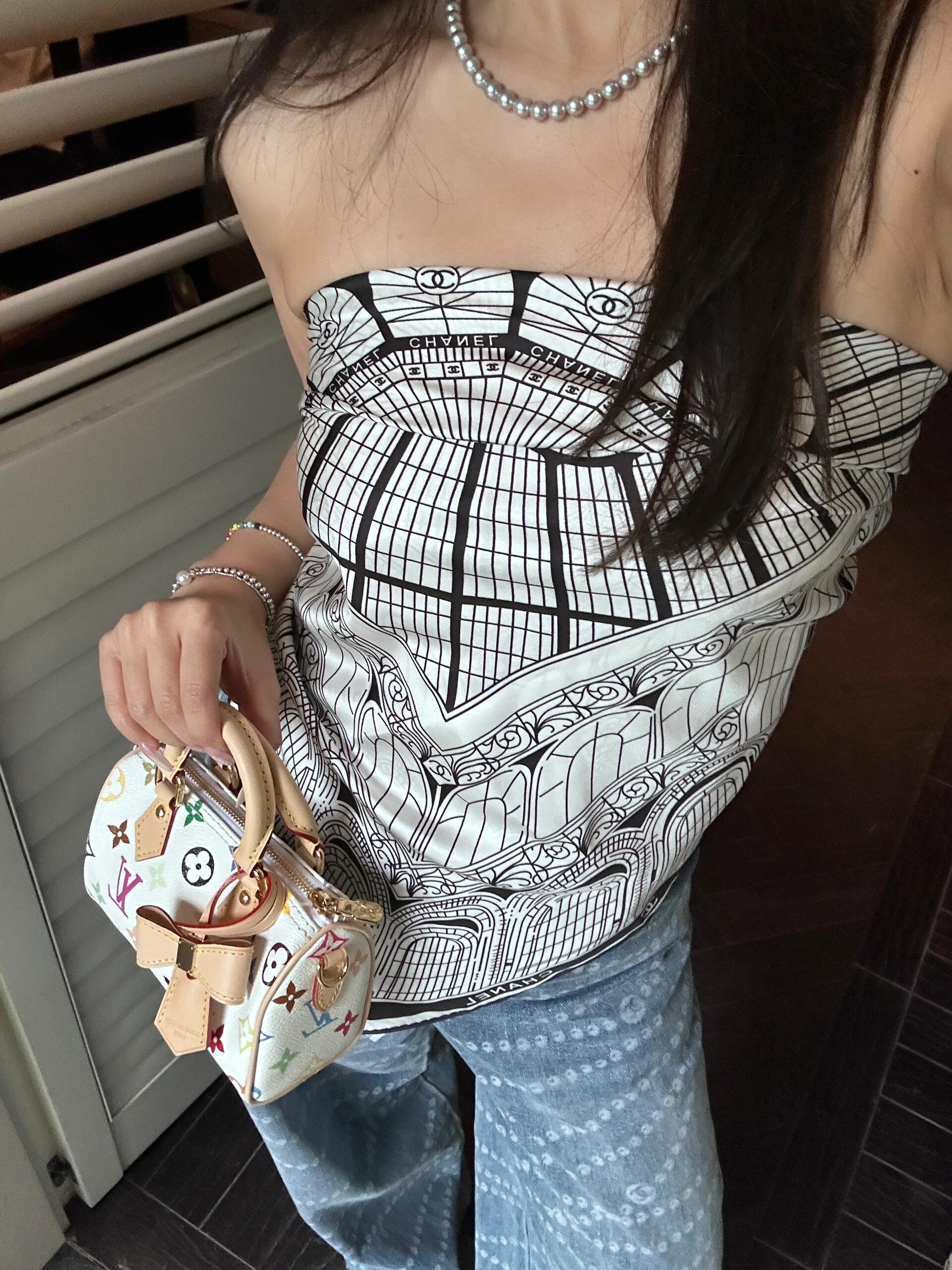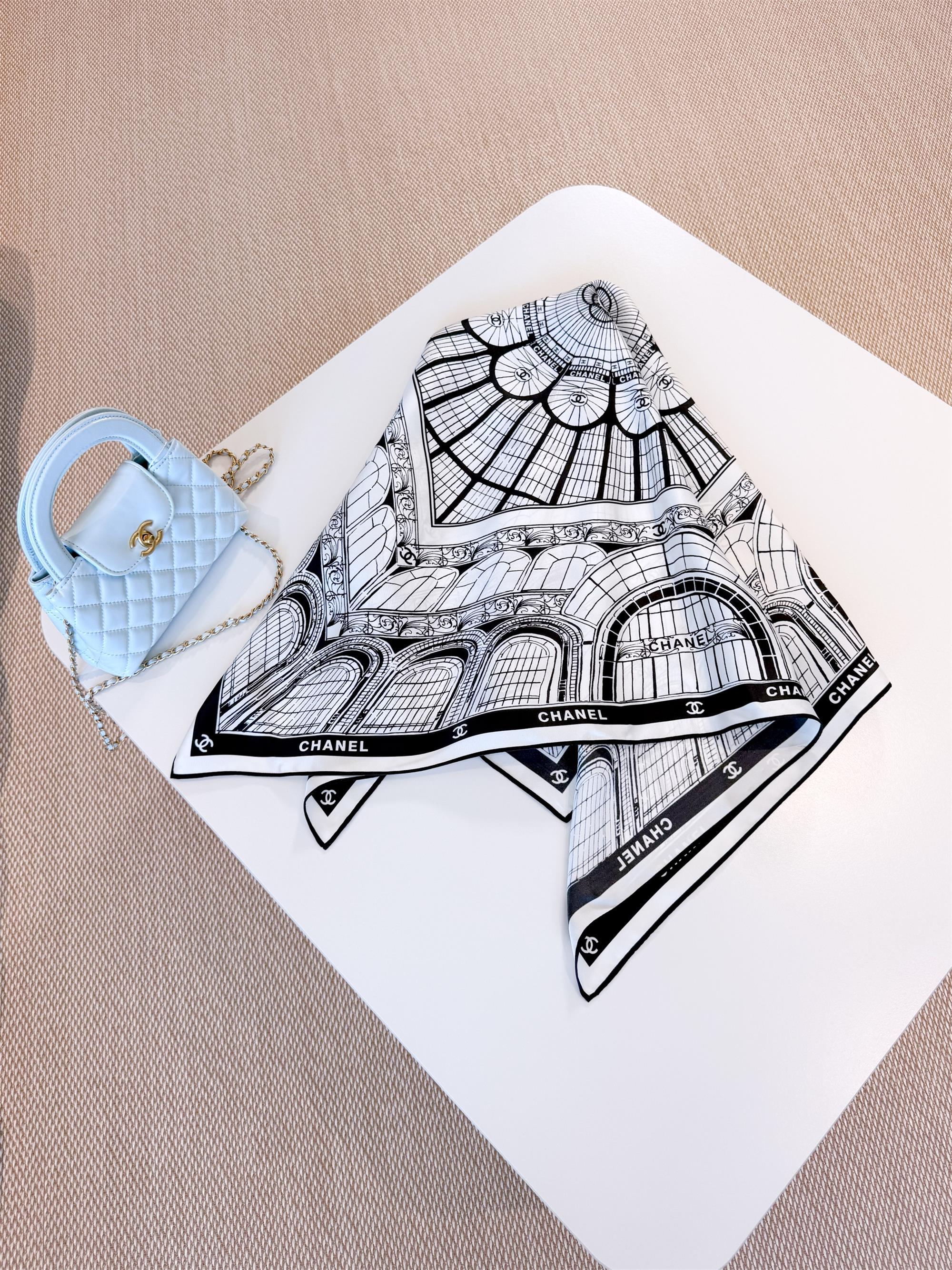 NIGO Chanel Women's Grand Palace Birdcage Black & White Floral Silk Twill Square Scarf #nigo76947