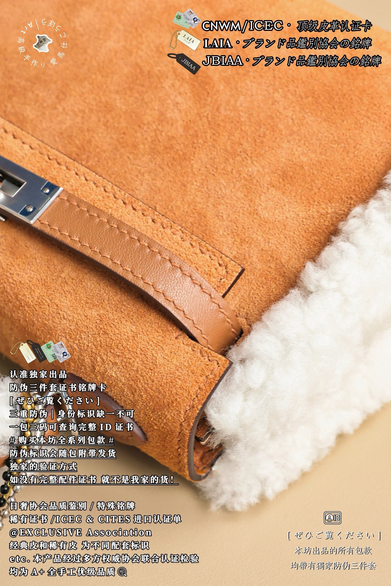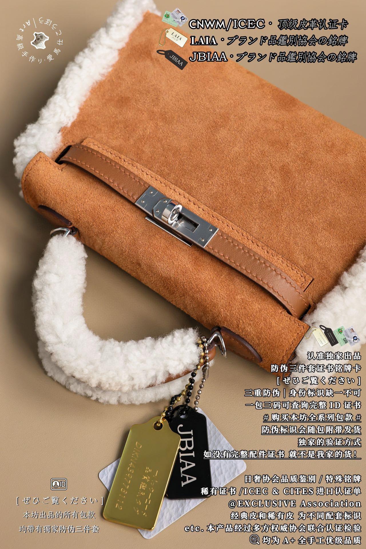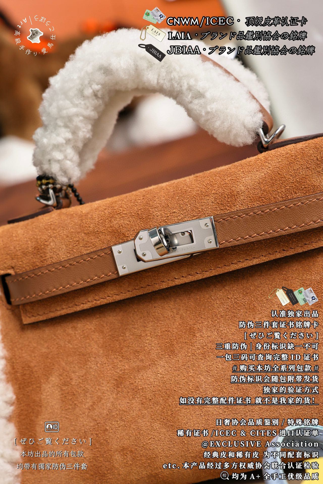 NIGO Hermes Kelly20 Women Golden Brown Suede Plush Fashion Temperament Tote Shoulder Bag Bags #nigo74555