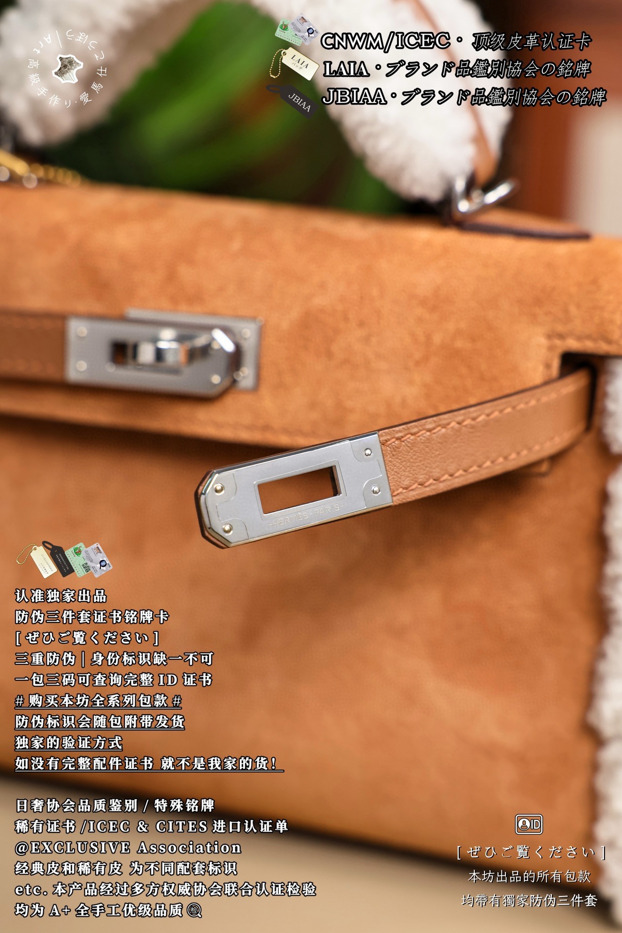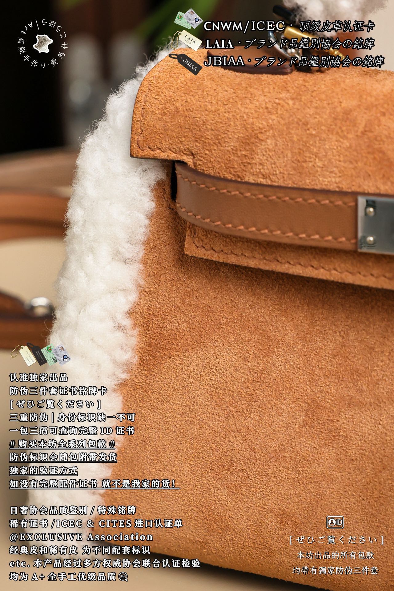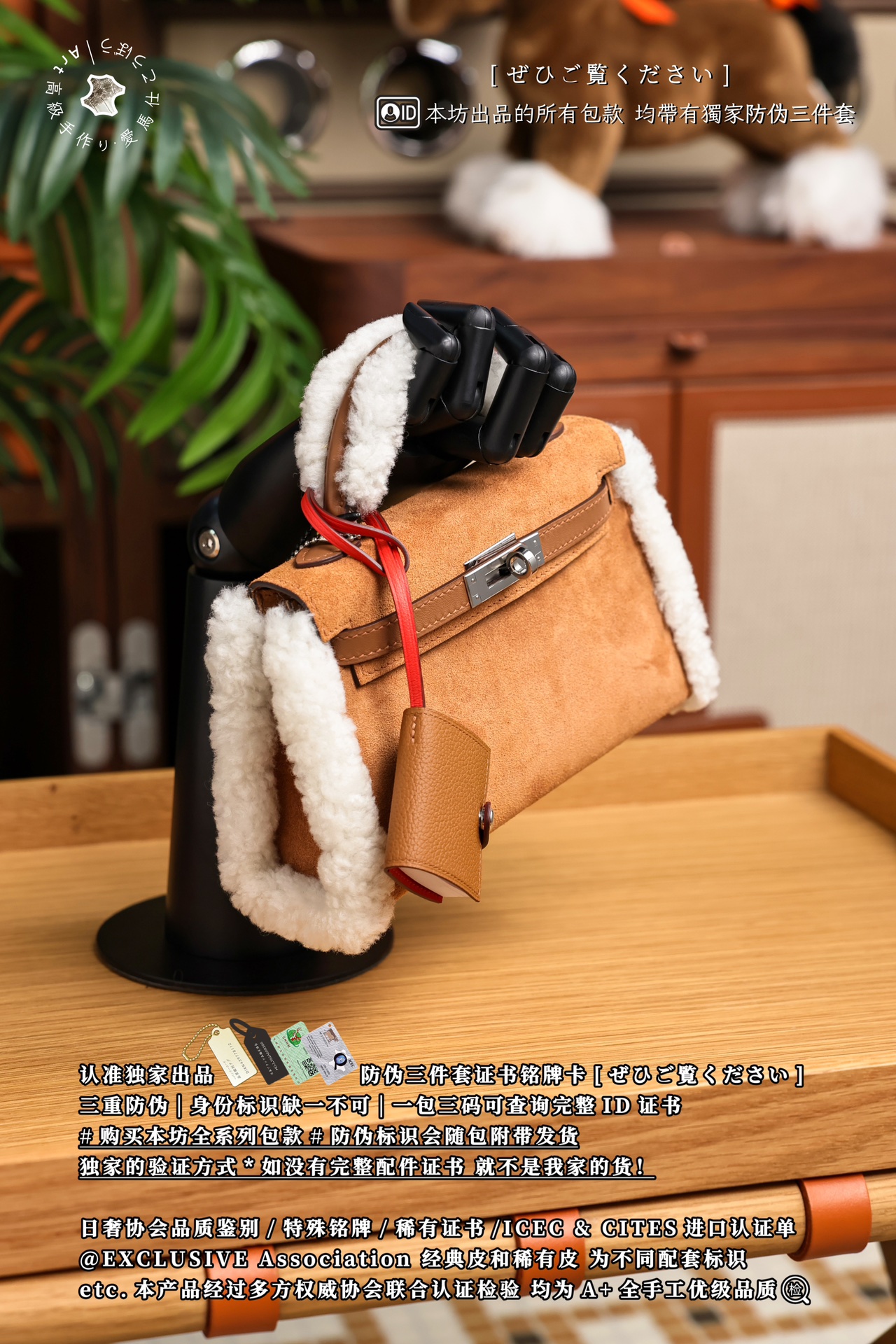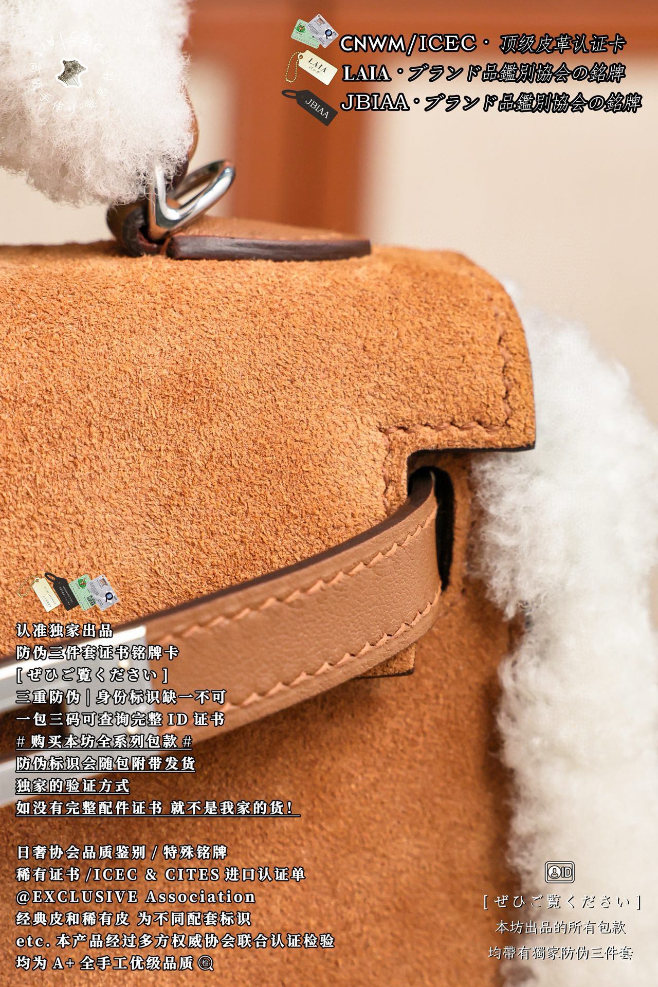 NIGO Hermes Kelly20 Women Golden Brown Suede Plush Fashion Temperament Tote Shoulder Bag Bags #nigo74555