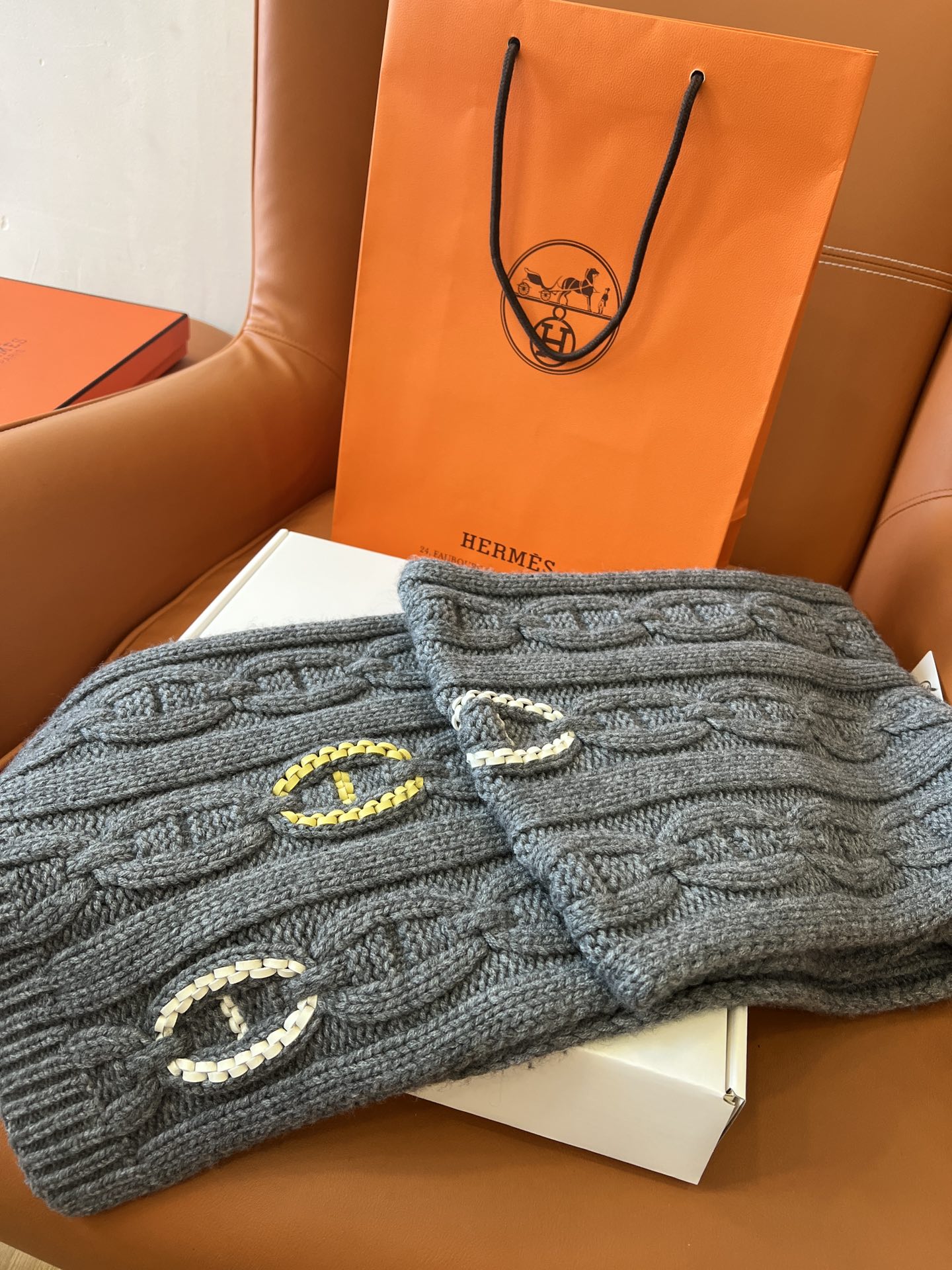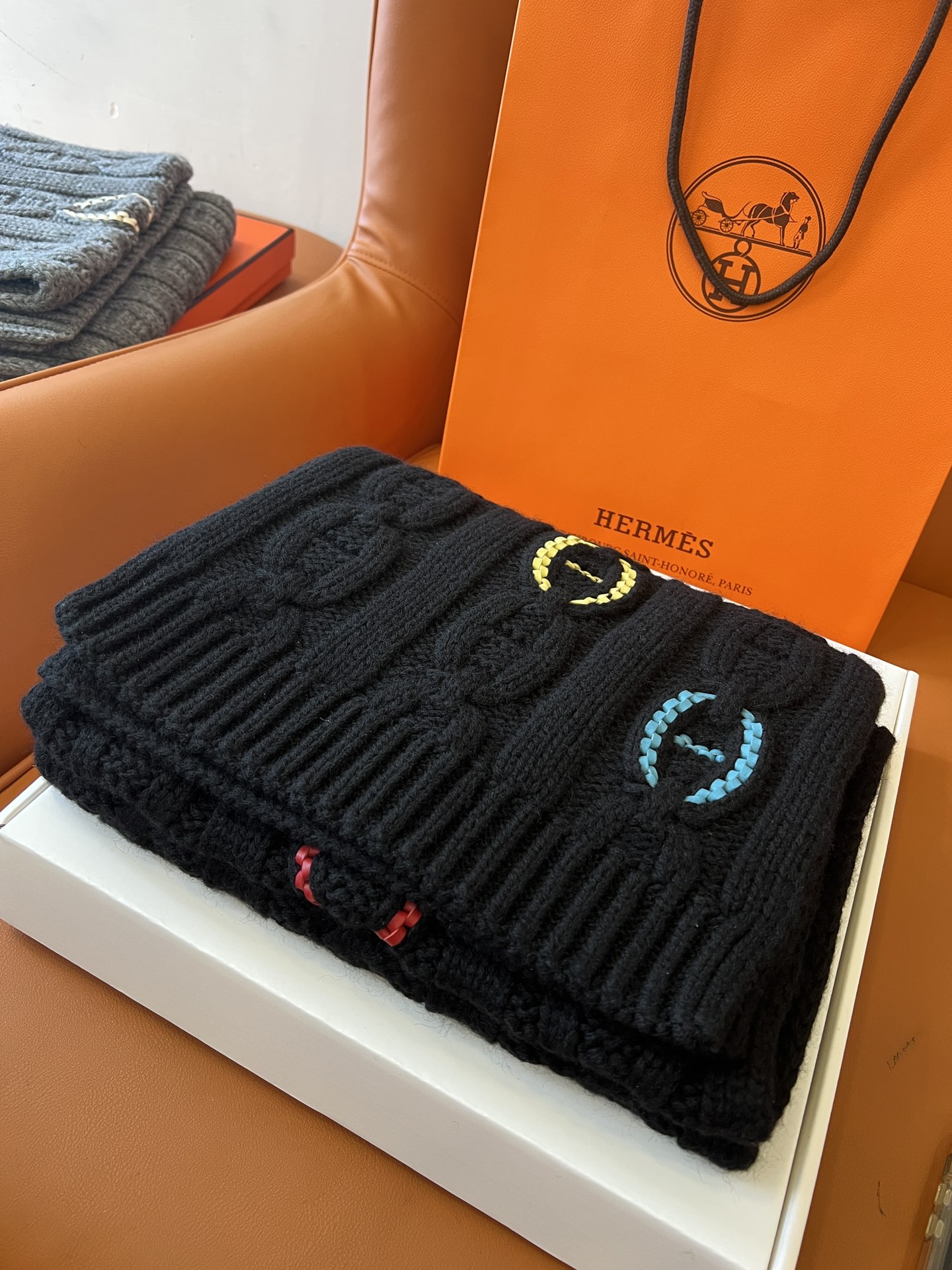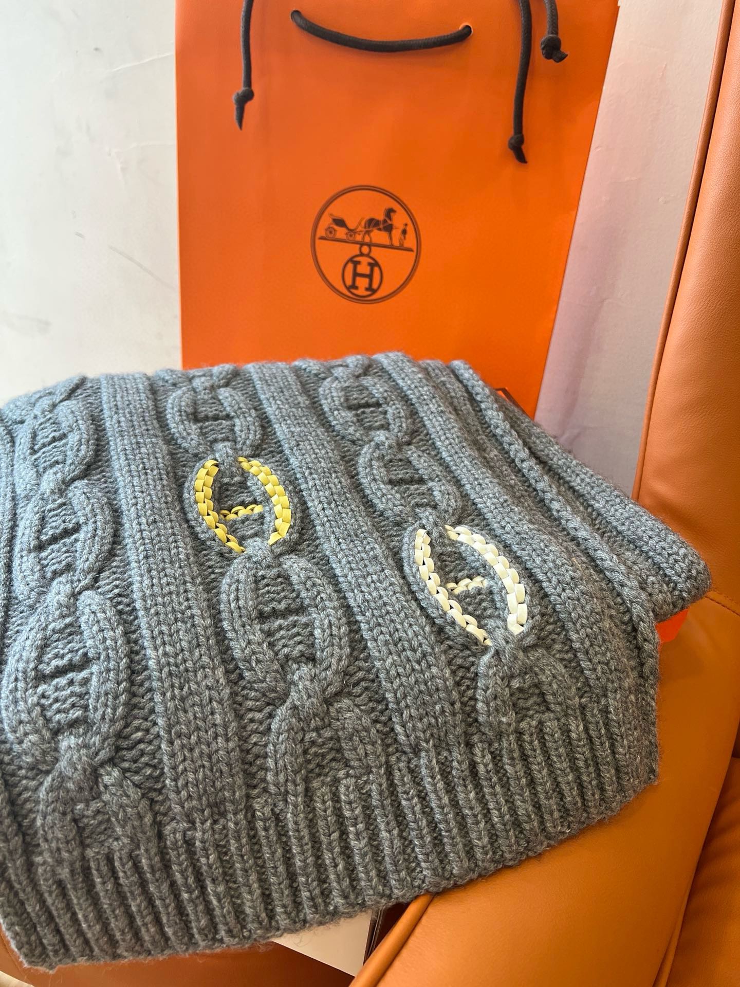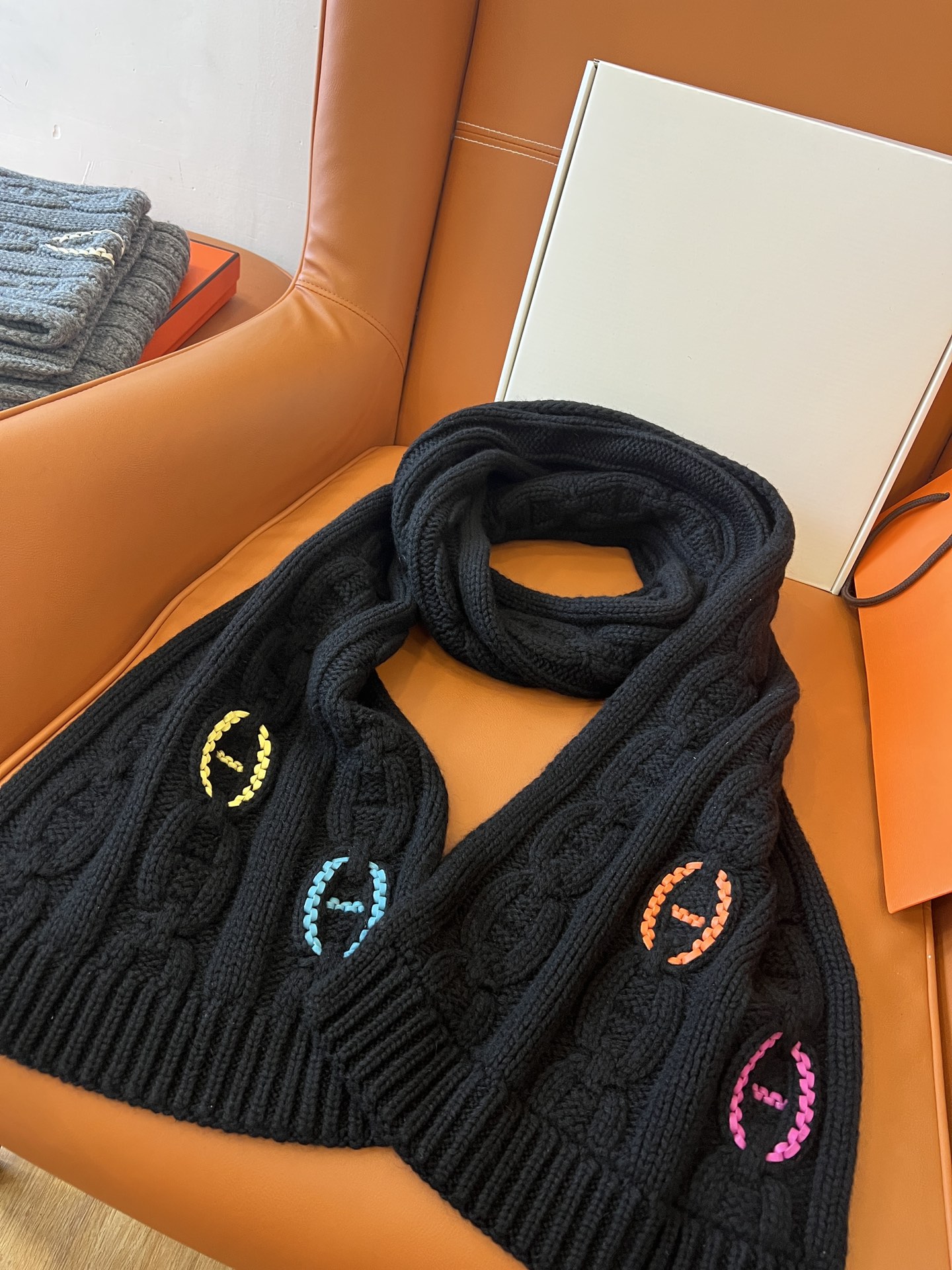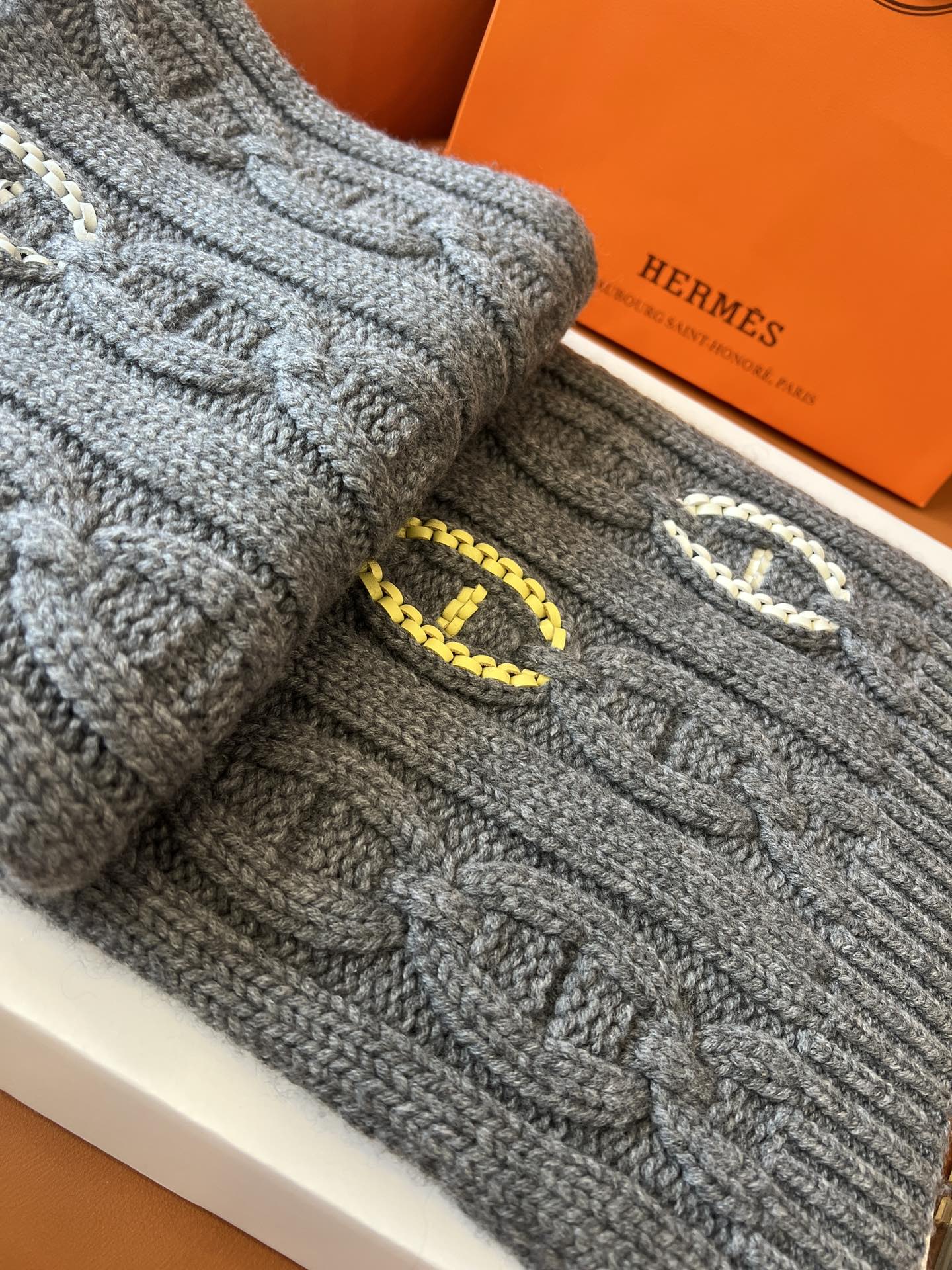 NIGO Hermes Knitted Chaine D'ancre Chain Link Cashmere Scarf Fashion Casual Solid Colour Warm 100% Cashmere Men's Autumn & Winter Accessories Ngvp #nigo9716