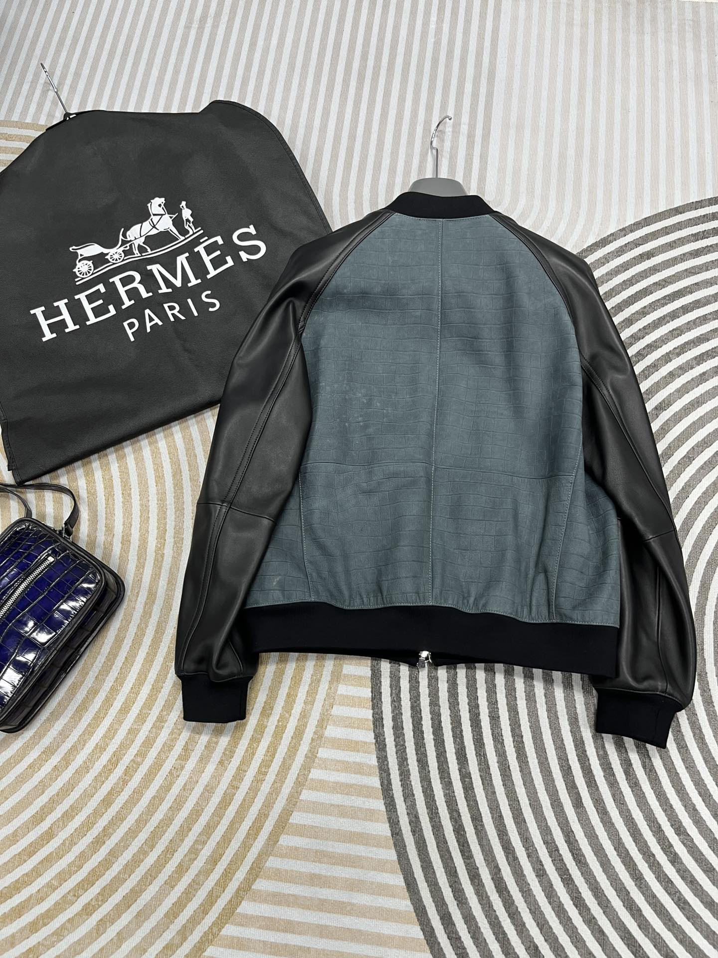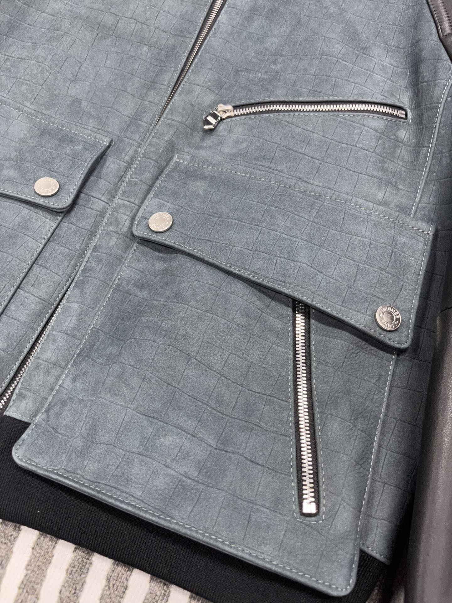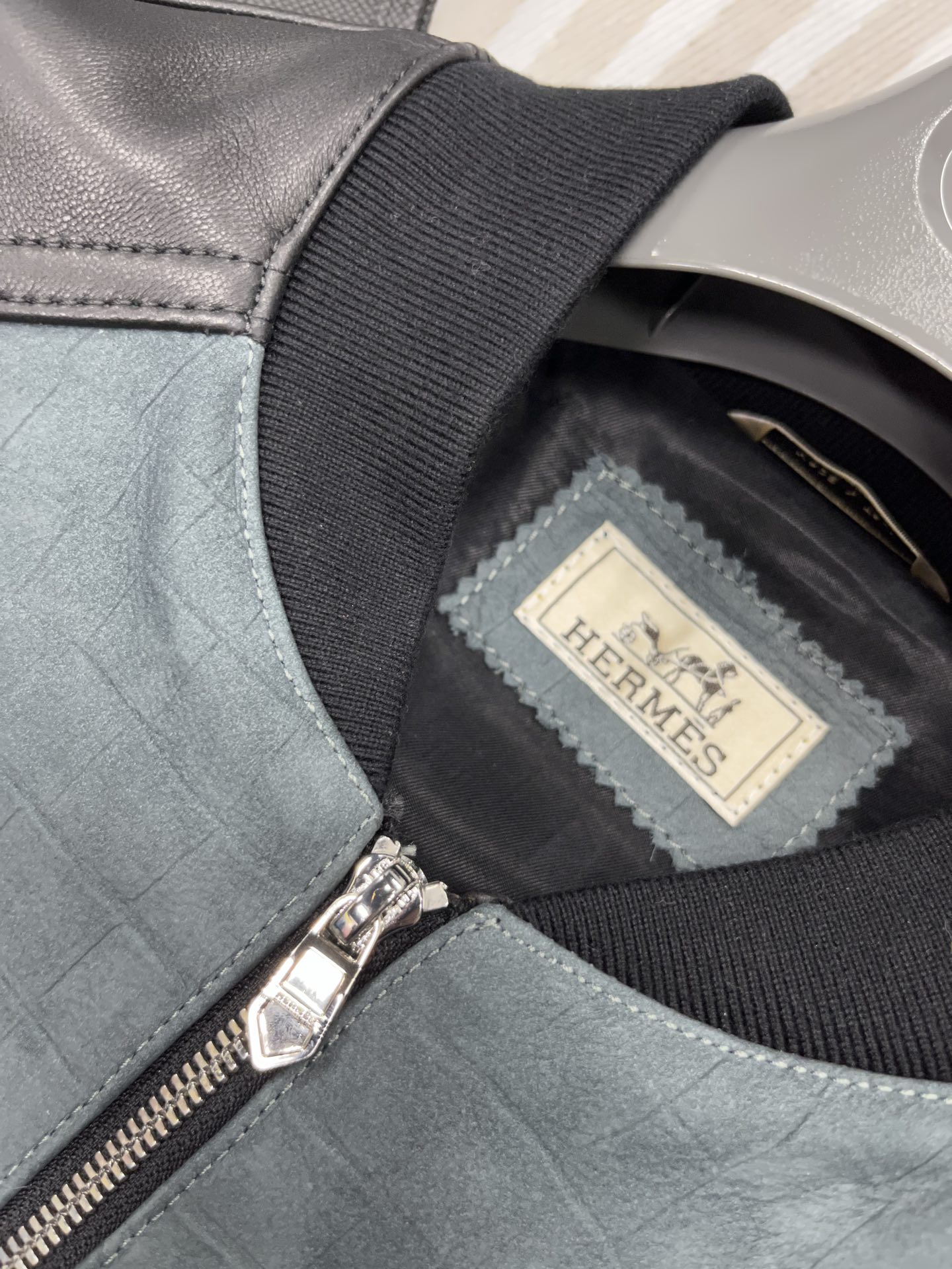 NIGO Hermes Men's Autumn And Winter Frosted Crocodile Pattern Cowhide Patchwork Sheepskin Baseball Leather Jacket #nigo71231