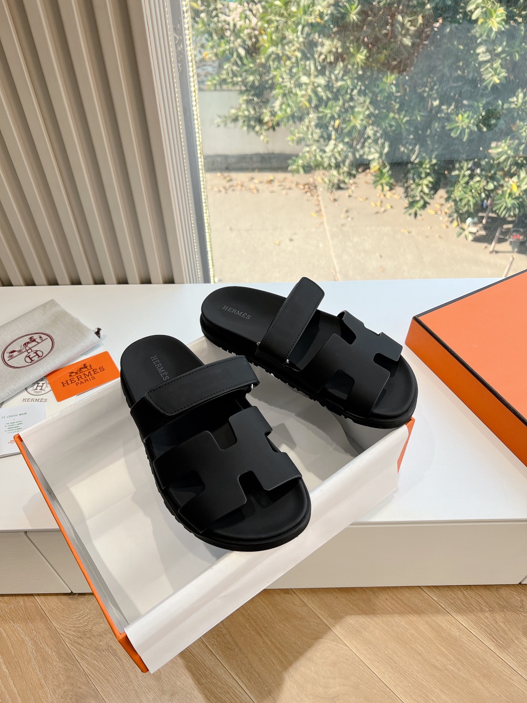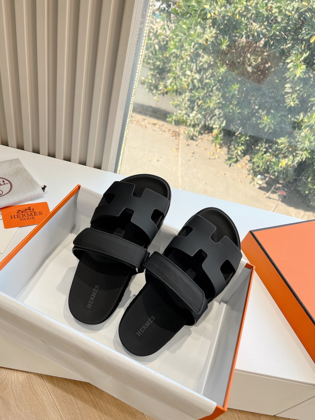 NIGO Hermes Men's Women's Fashion Casual Comfortable Letter Logo Slippers Black Deerskin Sandals Shoes #nigo71389