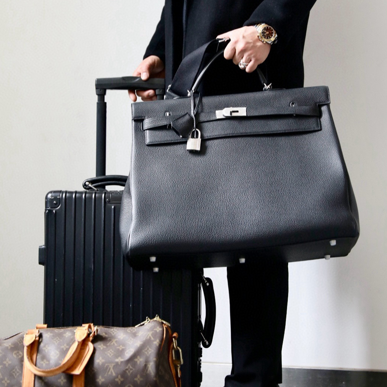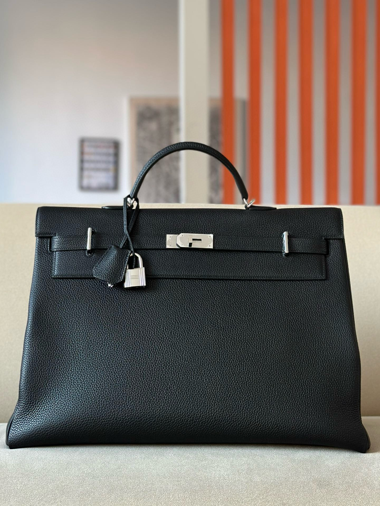 NIGO Hermes Men's Women's Four Seasons Large Bag Black Silver Buckle Kylie Handbag Tote Bag #nigo98265
