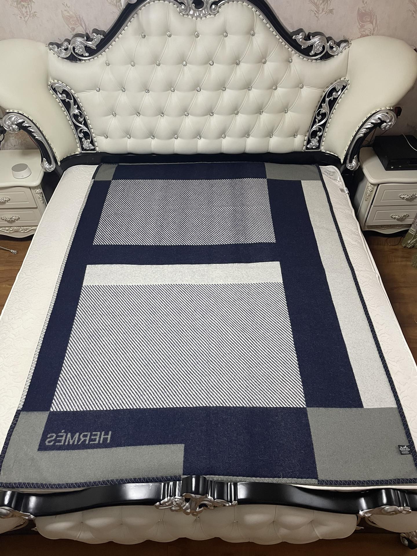 NIGO Hermes Men's Women's Riviera Blanket Reversible Jacquard Cashmere Wool Blend Blanket #nigo71318