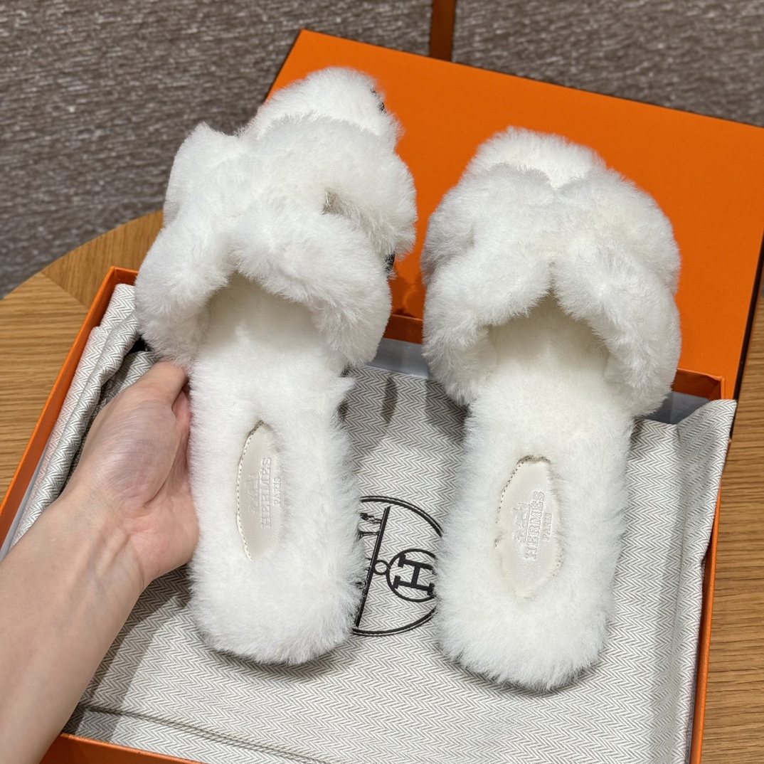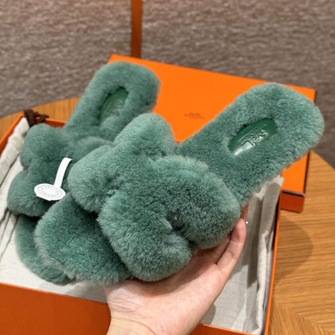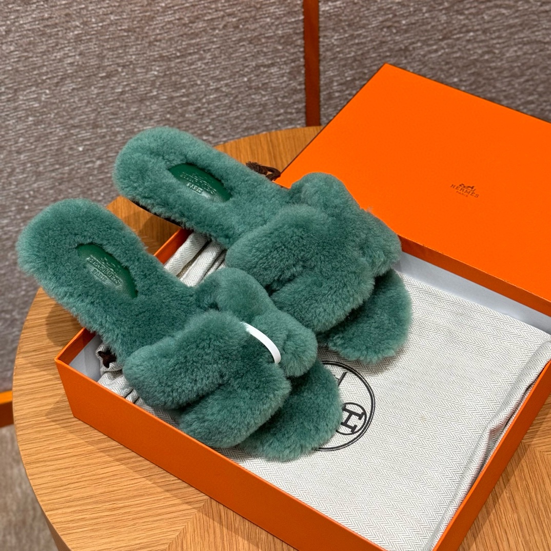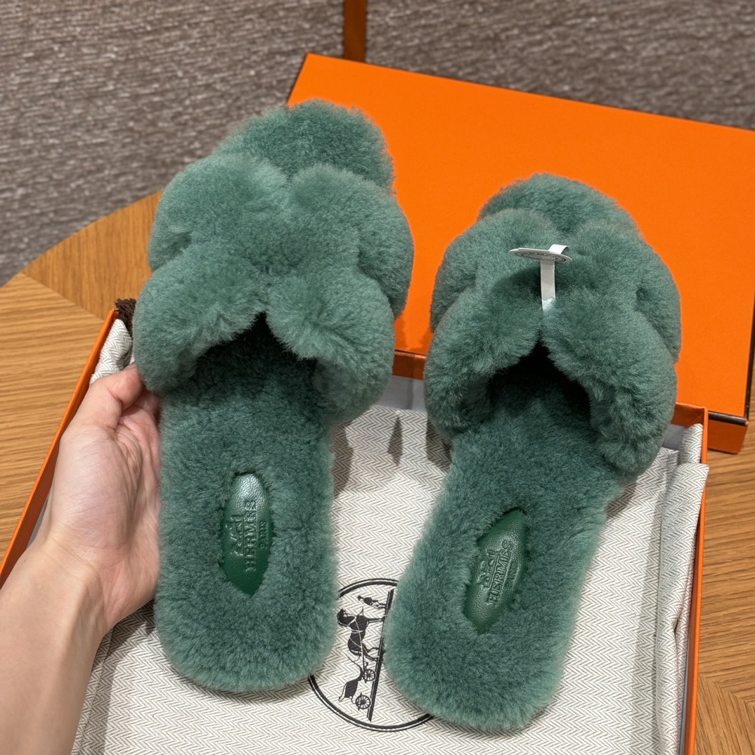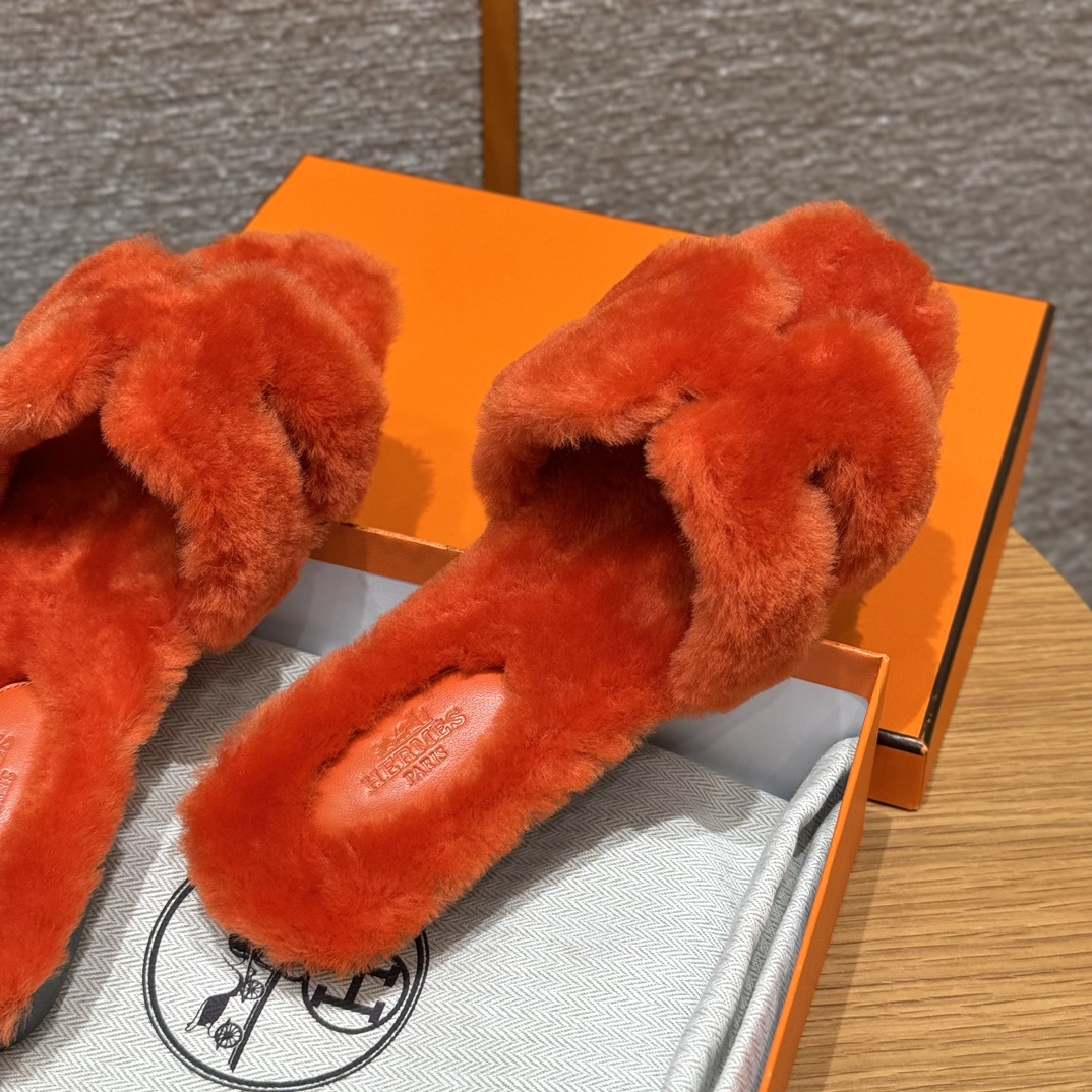 NIGO Hermes Oran Sandals Women's Spring And Autumn Wool Temperament Fashion Elegant Simple Casual Shoes Fashionable Outwear Slippers #nigo71711