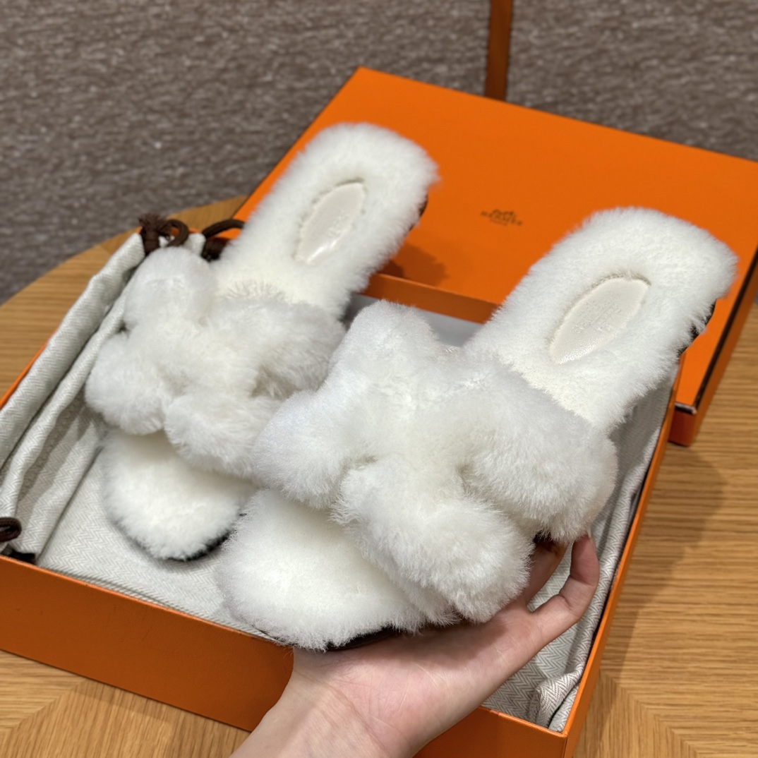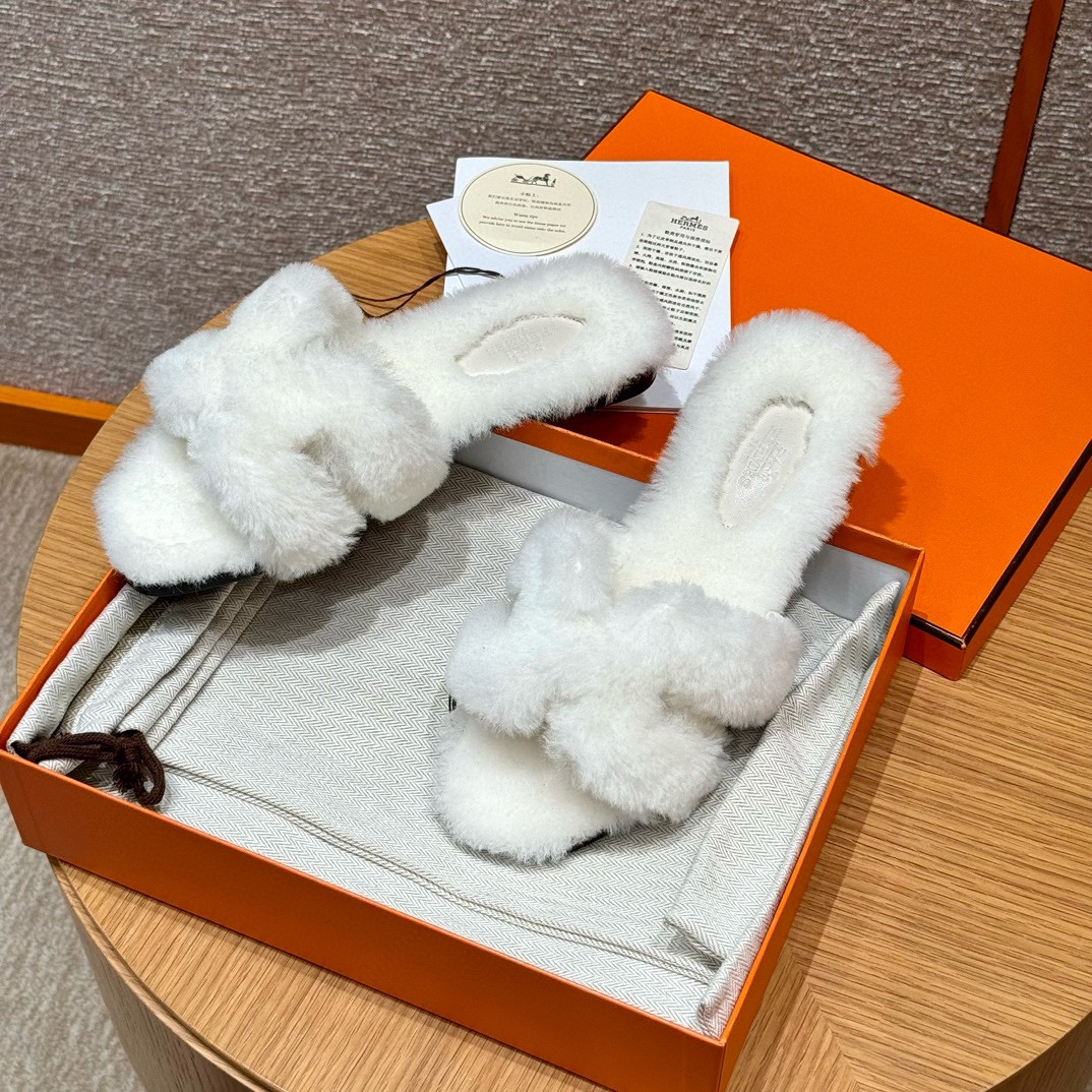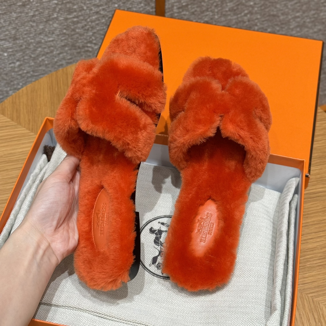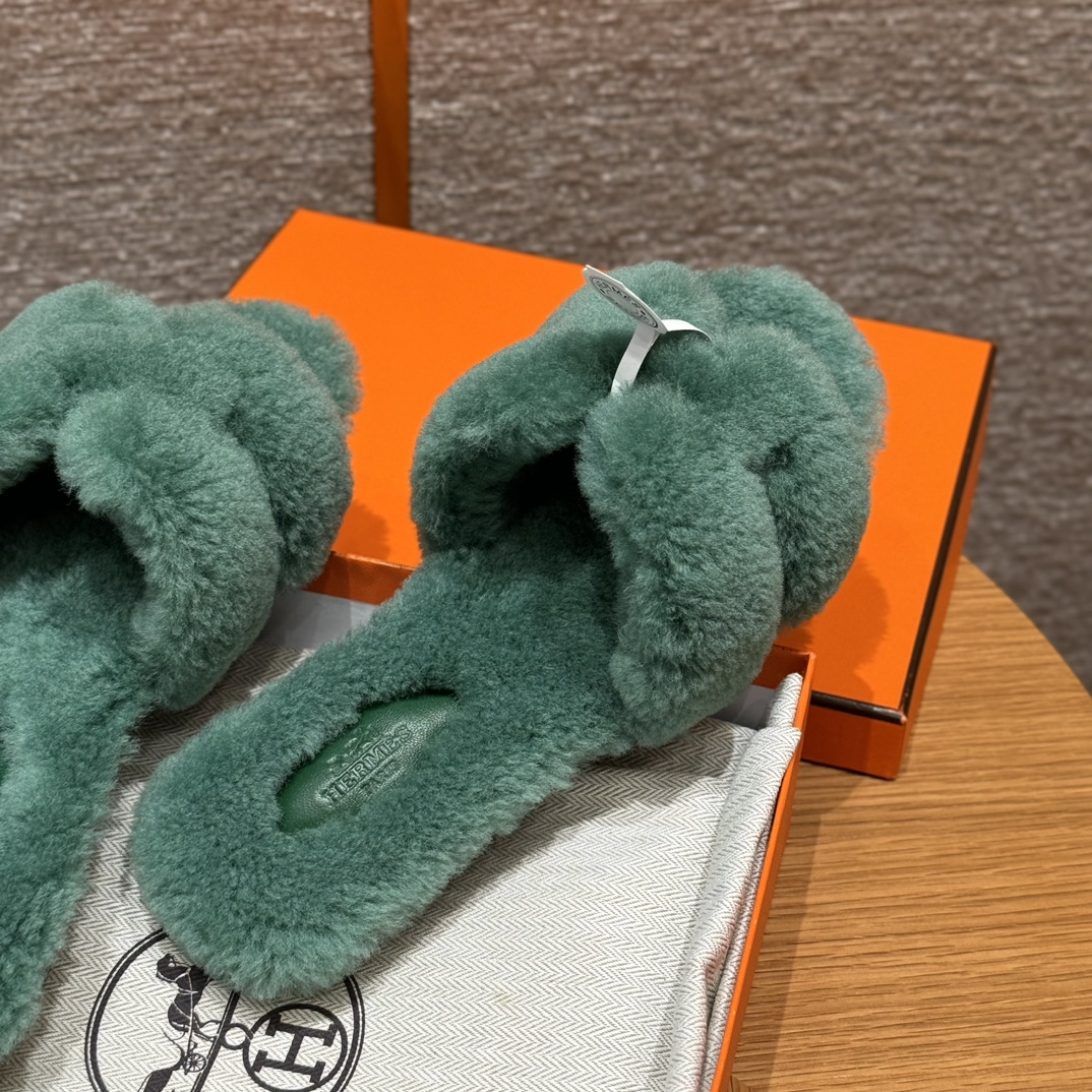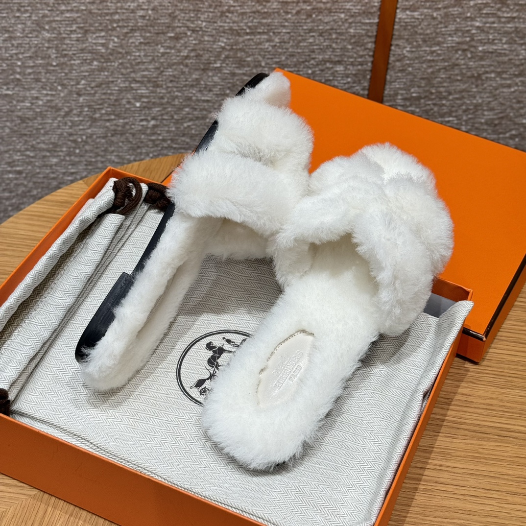 NIGO Hermes Oran Sandals Women's Spring And Autumn Wool Temperament Fashion Elegant Simple Casual Shoes Fashionable Outwear Slippers #nigo71711