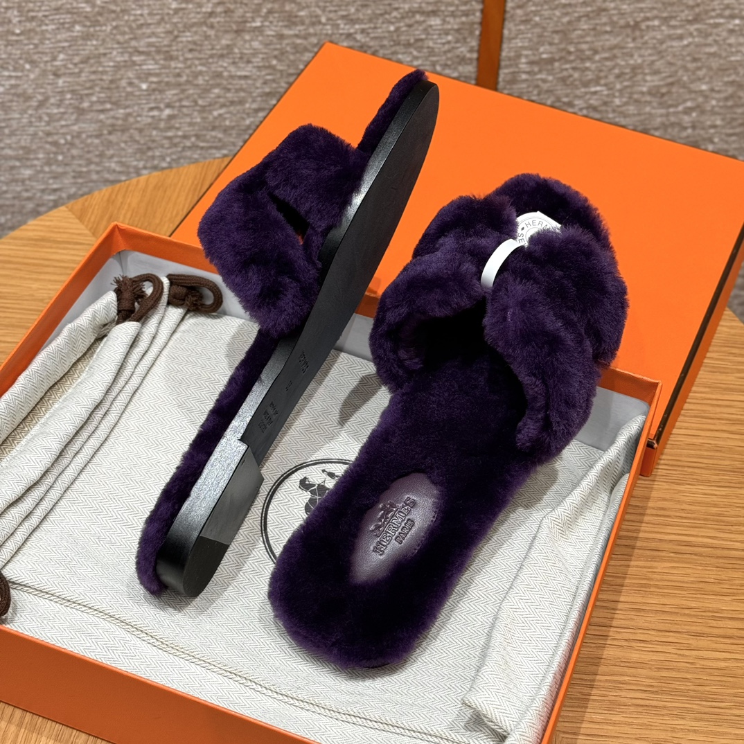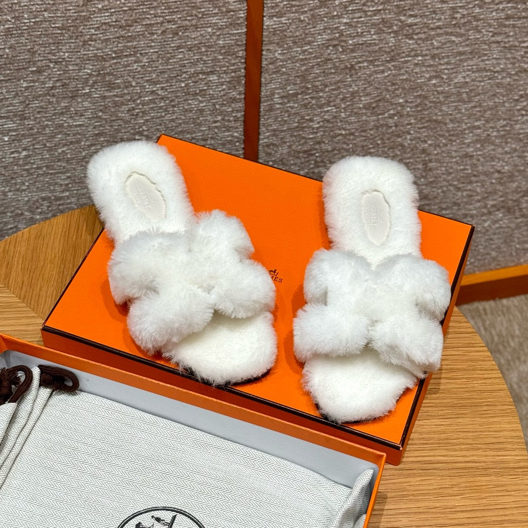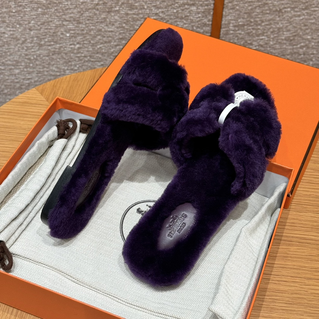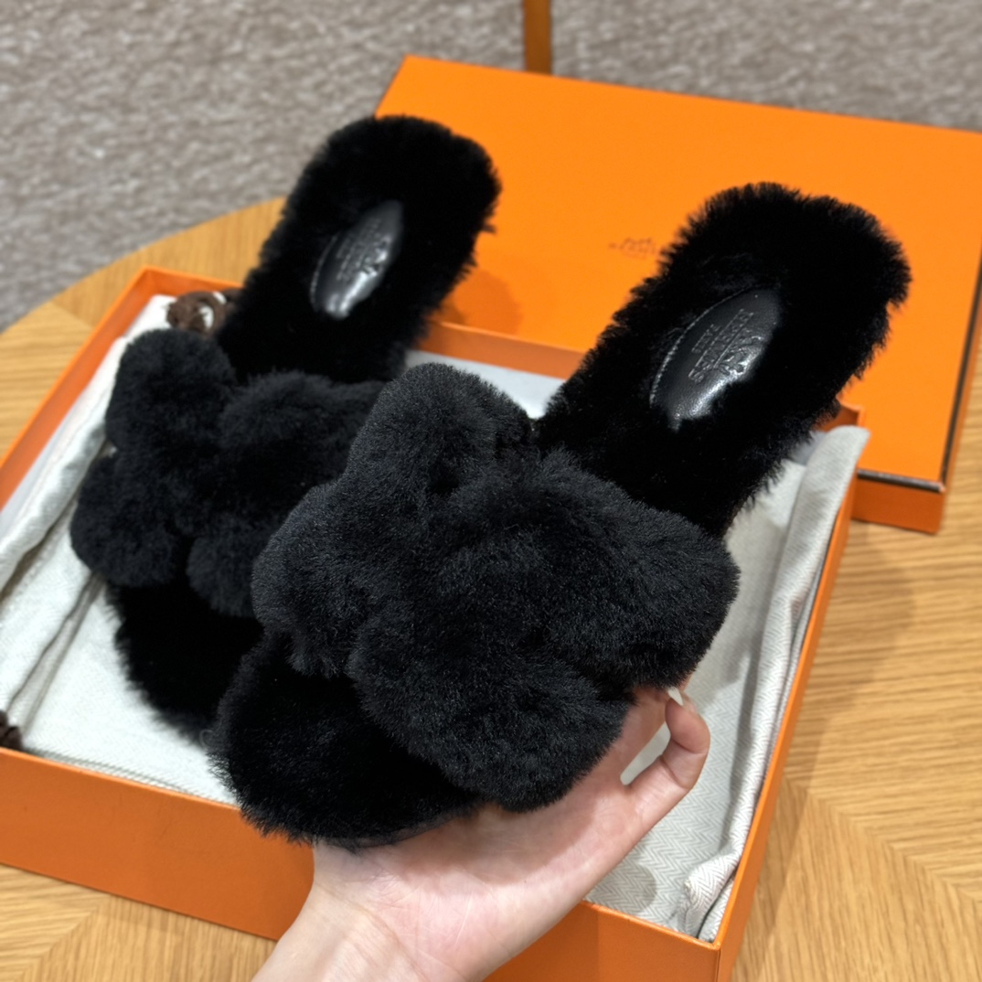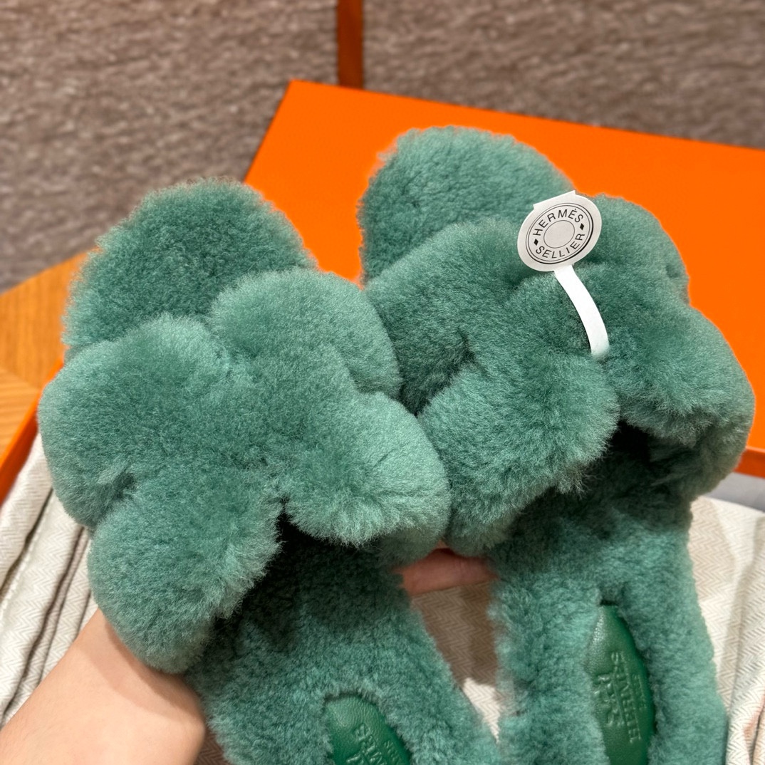 NIGO Hermes Oran Sandals Women's Spring And Autumn Wool Temperament Fashion Elegant Simple Casual Shoes Fashionable Outwear Slippers #nigo71711