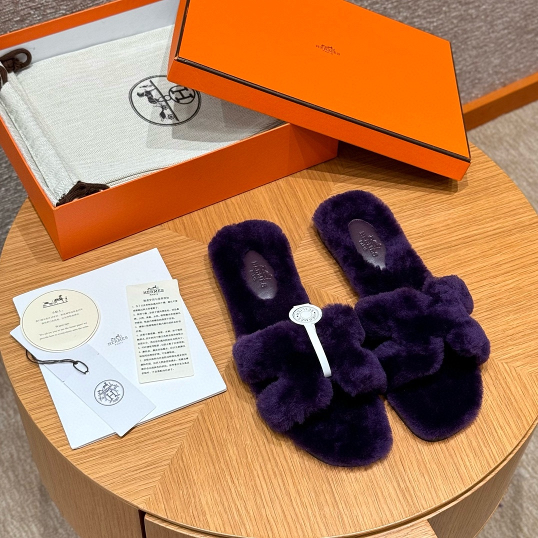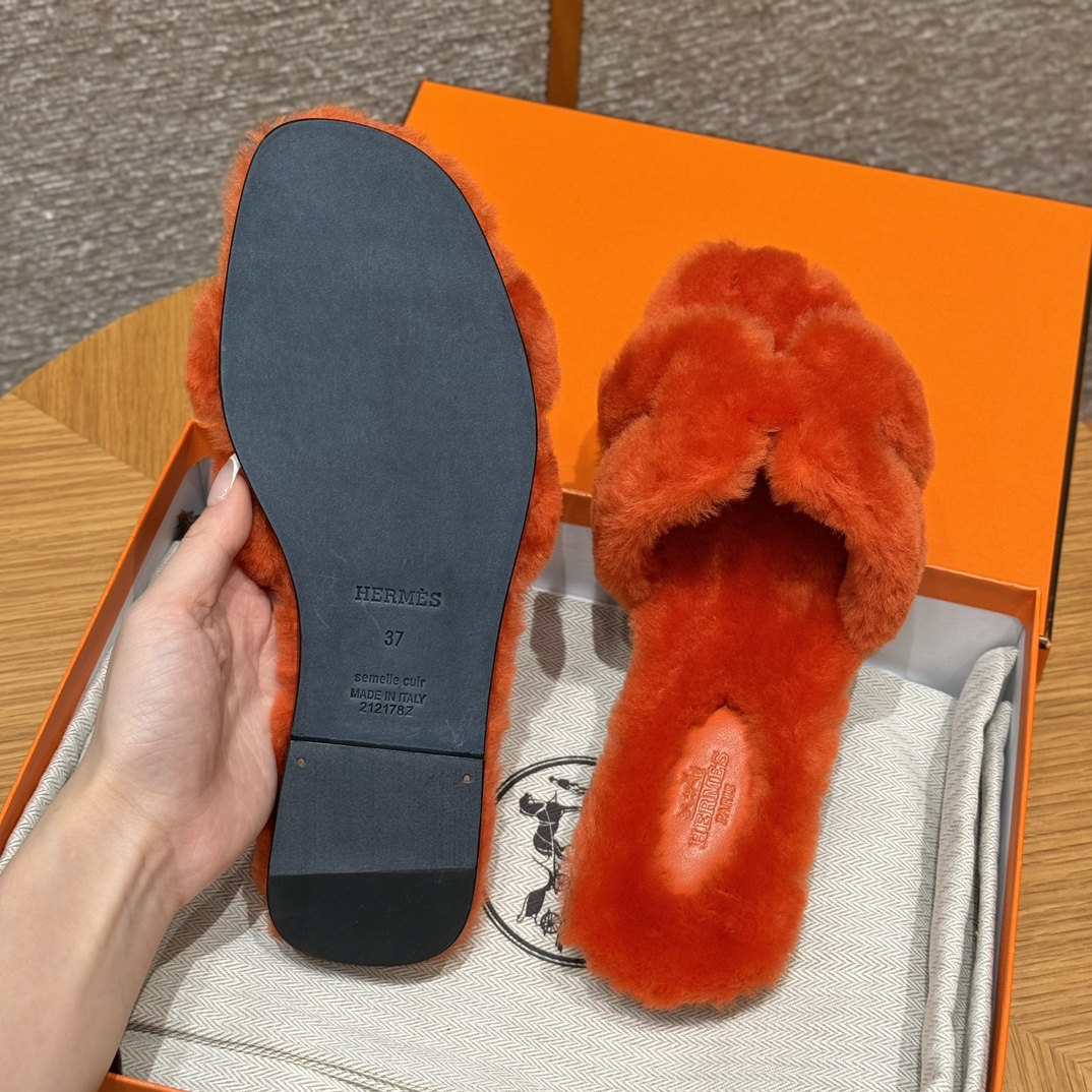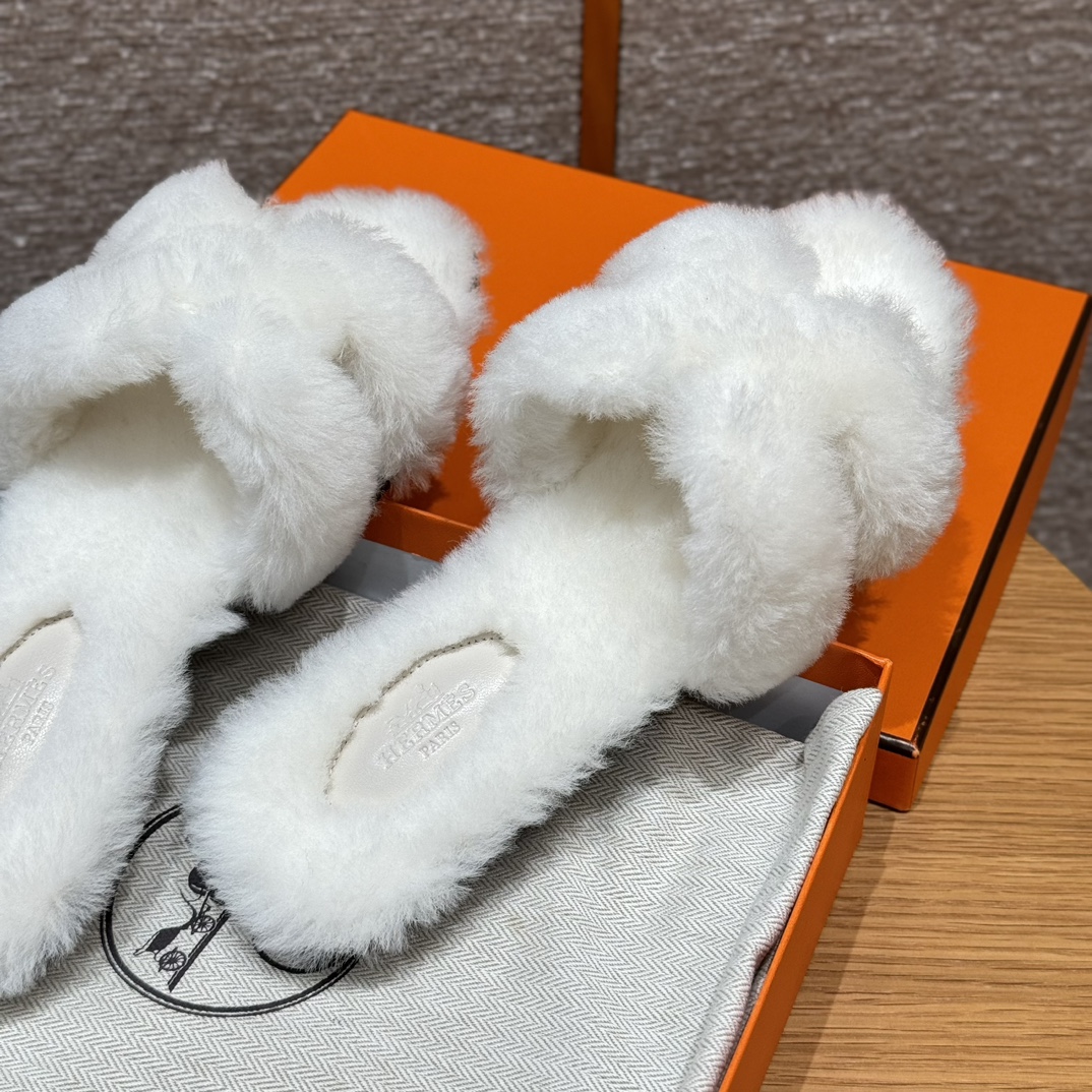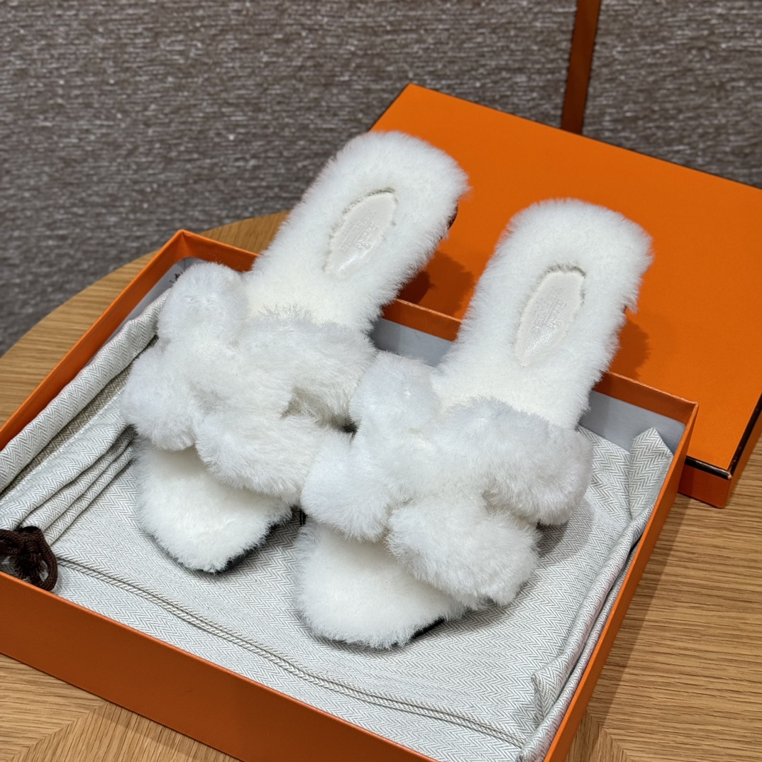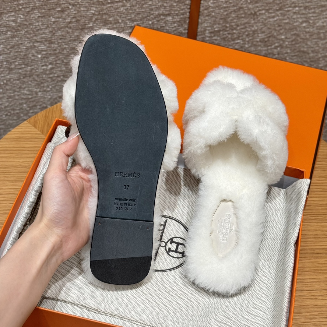 NIGO Hermes Oran Sandals Women's Spring And Autumn Wool Temperament Fashion Elegant Simple Casual Shoes Fashionable Outwear Slippers #nigo71711