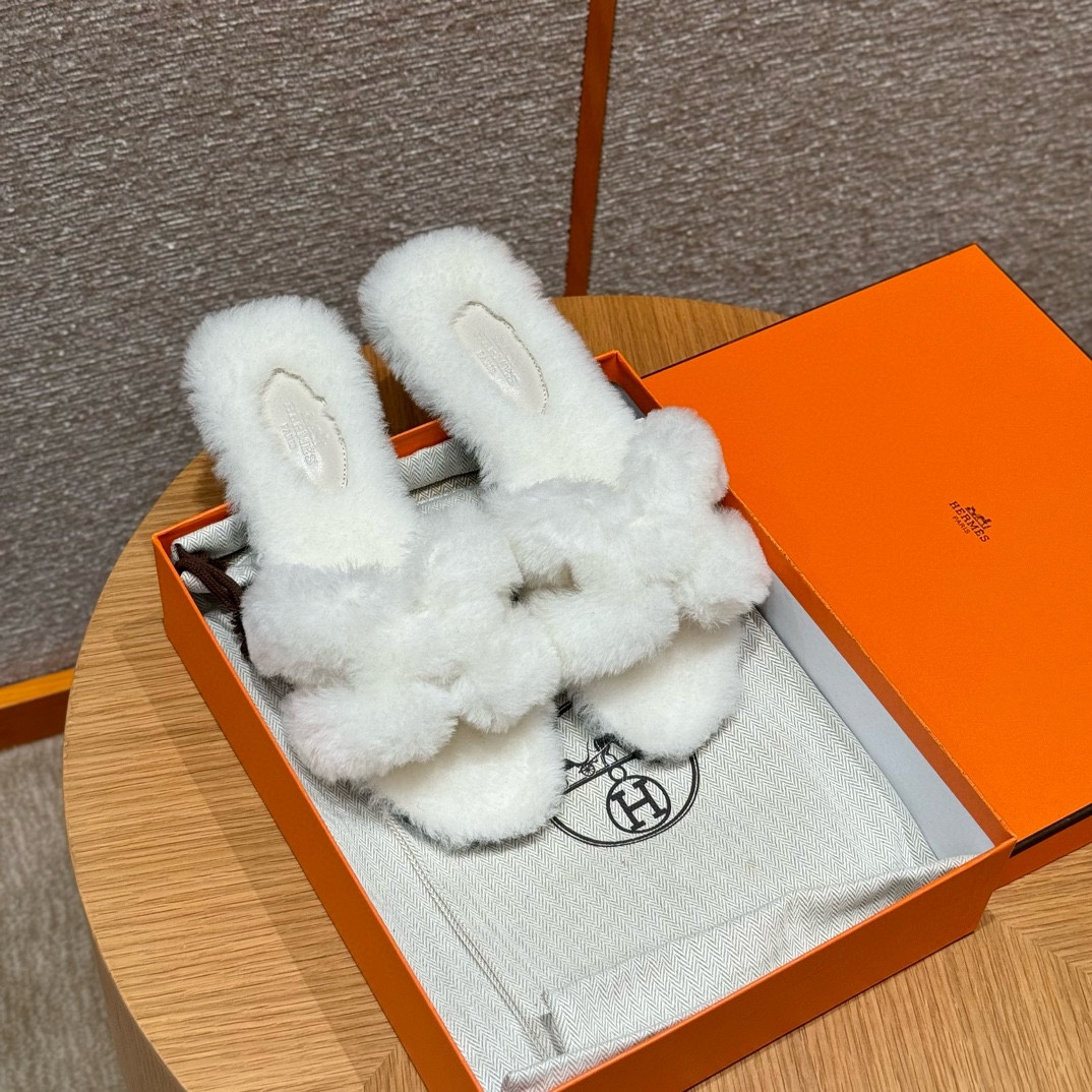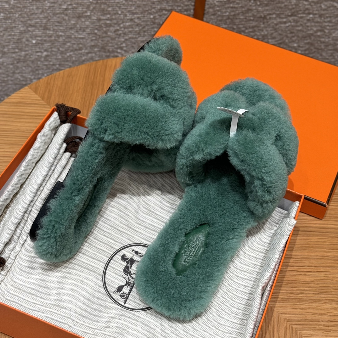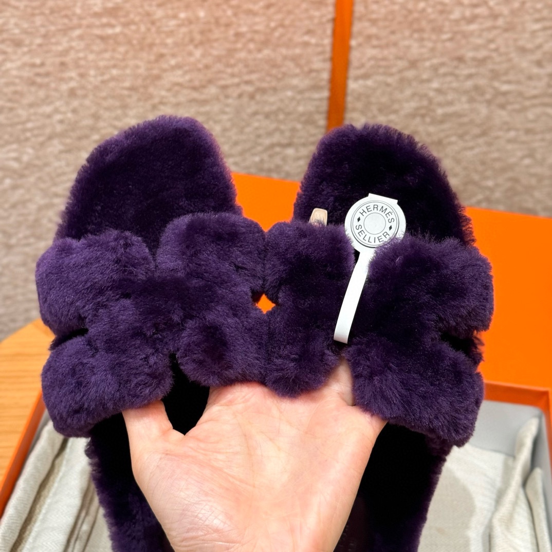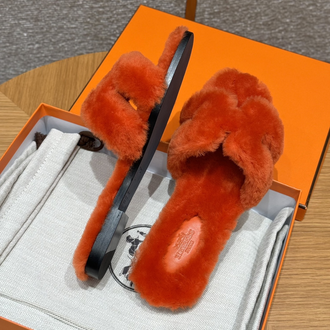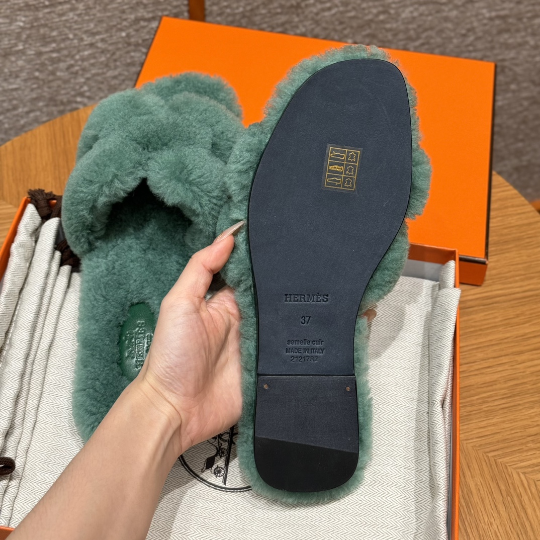 NIGO Hermes Oran Sandals Women's Spring And Autumn Wool Temperament Fashion Elegant Simple Casual Shoes Fashionable Outwear Slippers #nigo71711