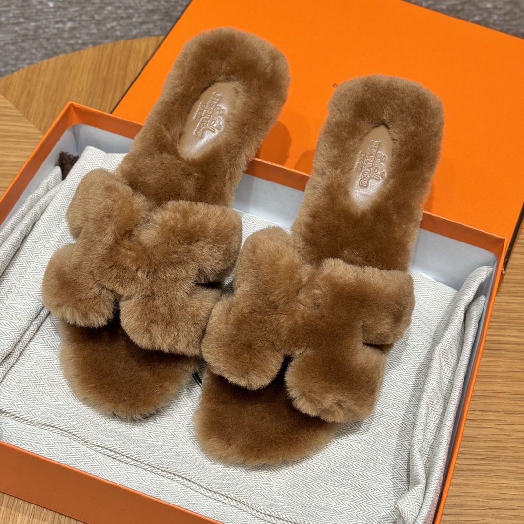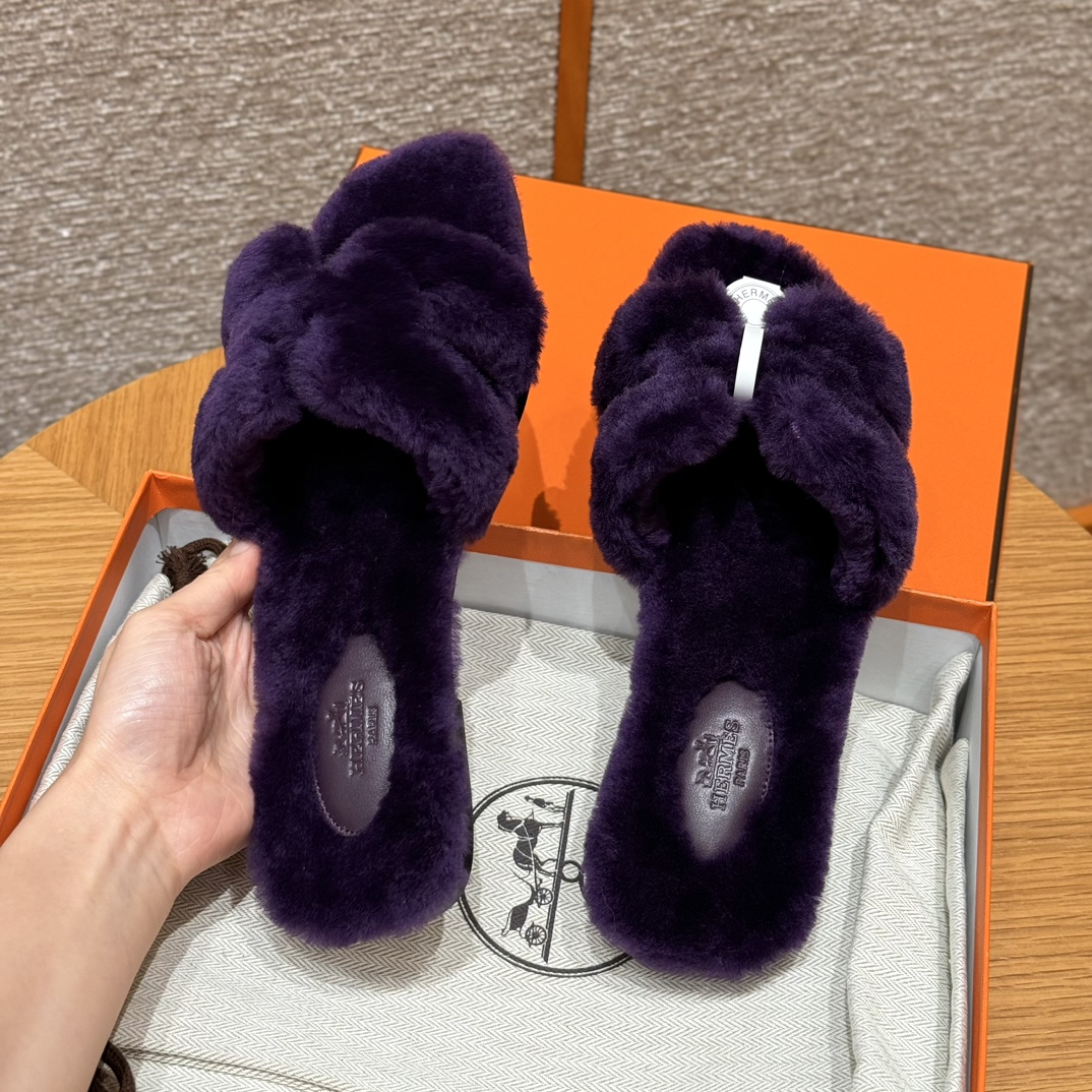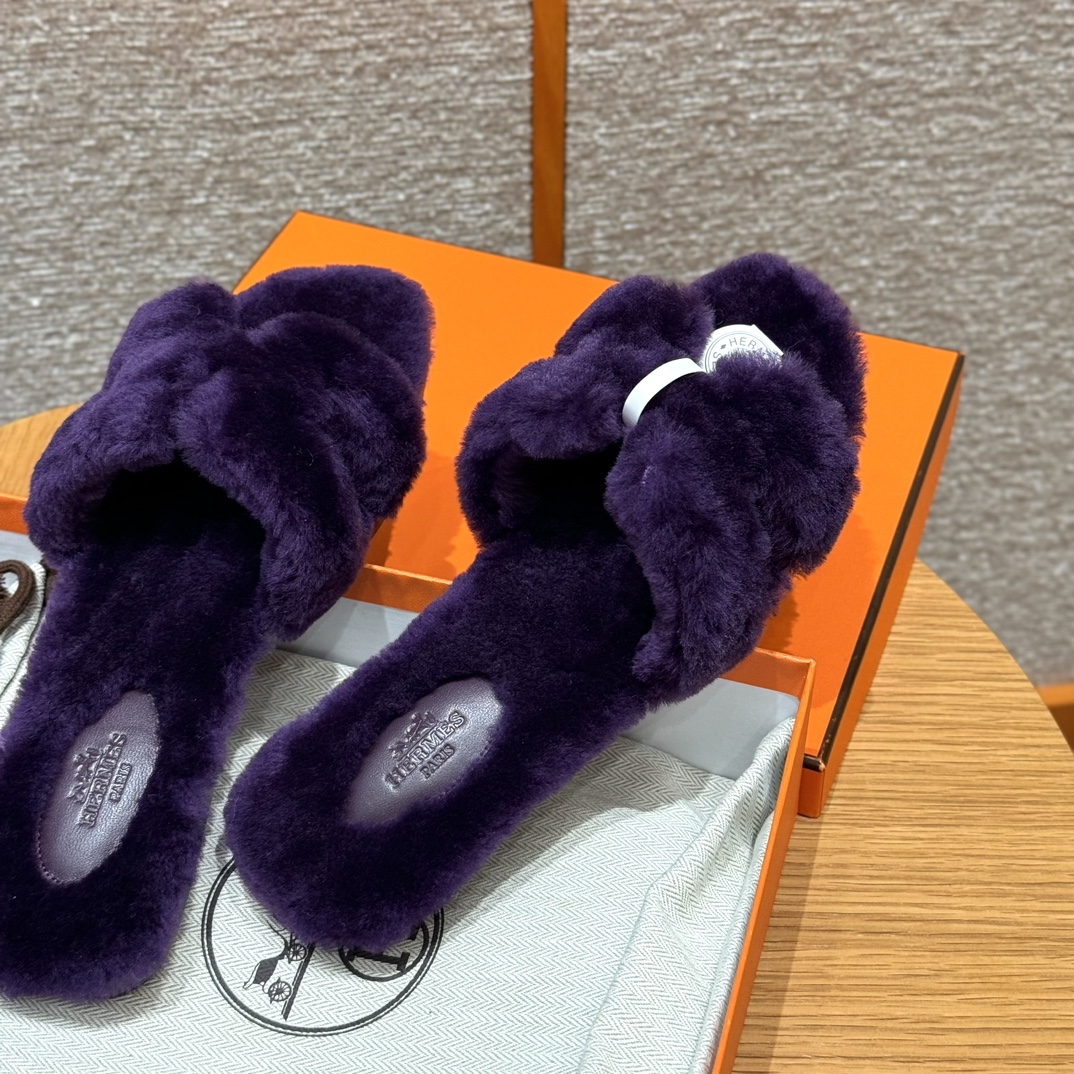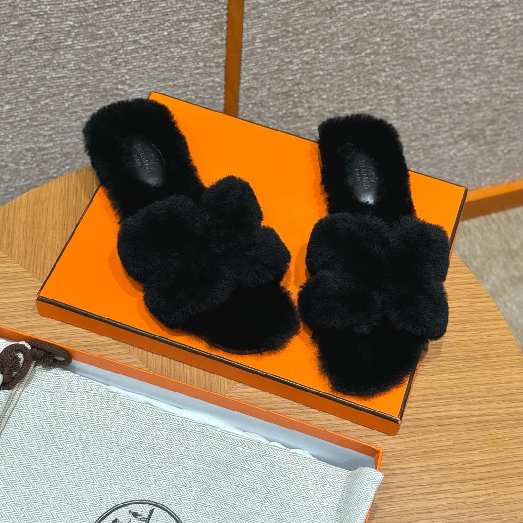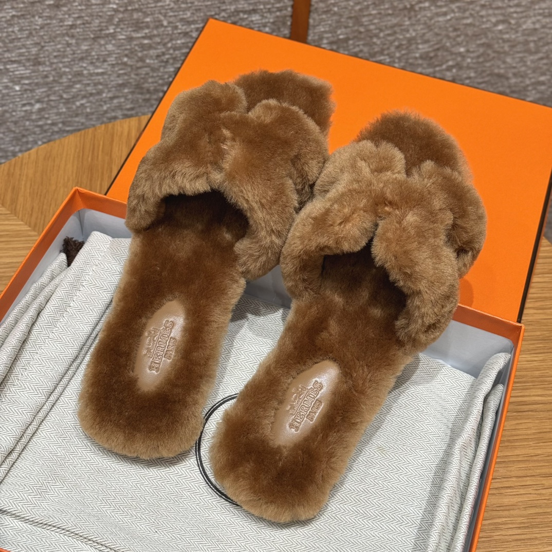 NIGO Hermes Oran Sandals Women's Spring And Autumn Wool Temperament Fashion Elegant Simple Casual Shoes Fashionable Outwear Slippers #nigo71711