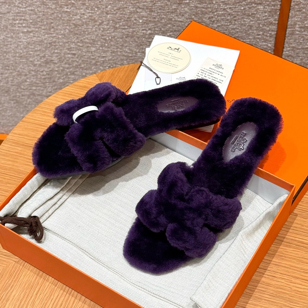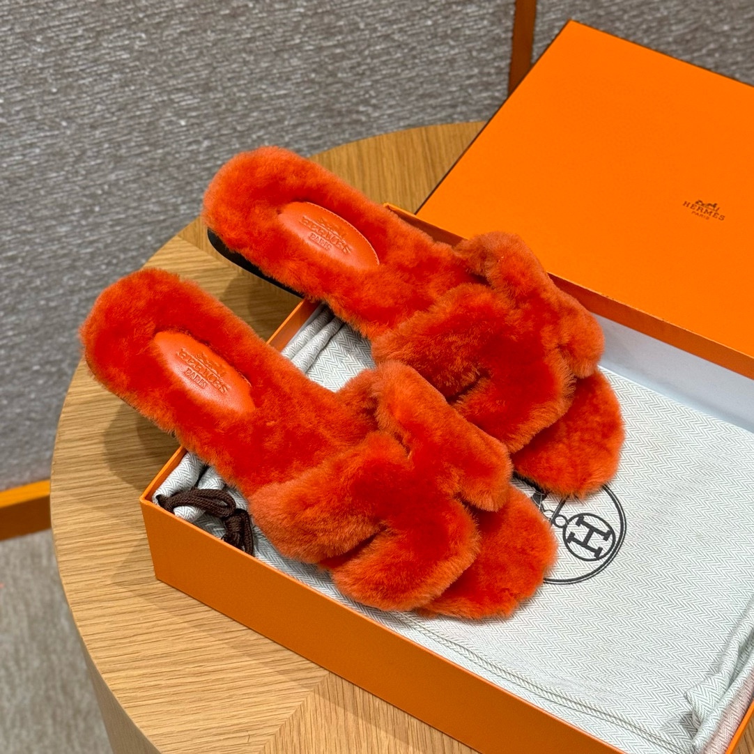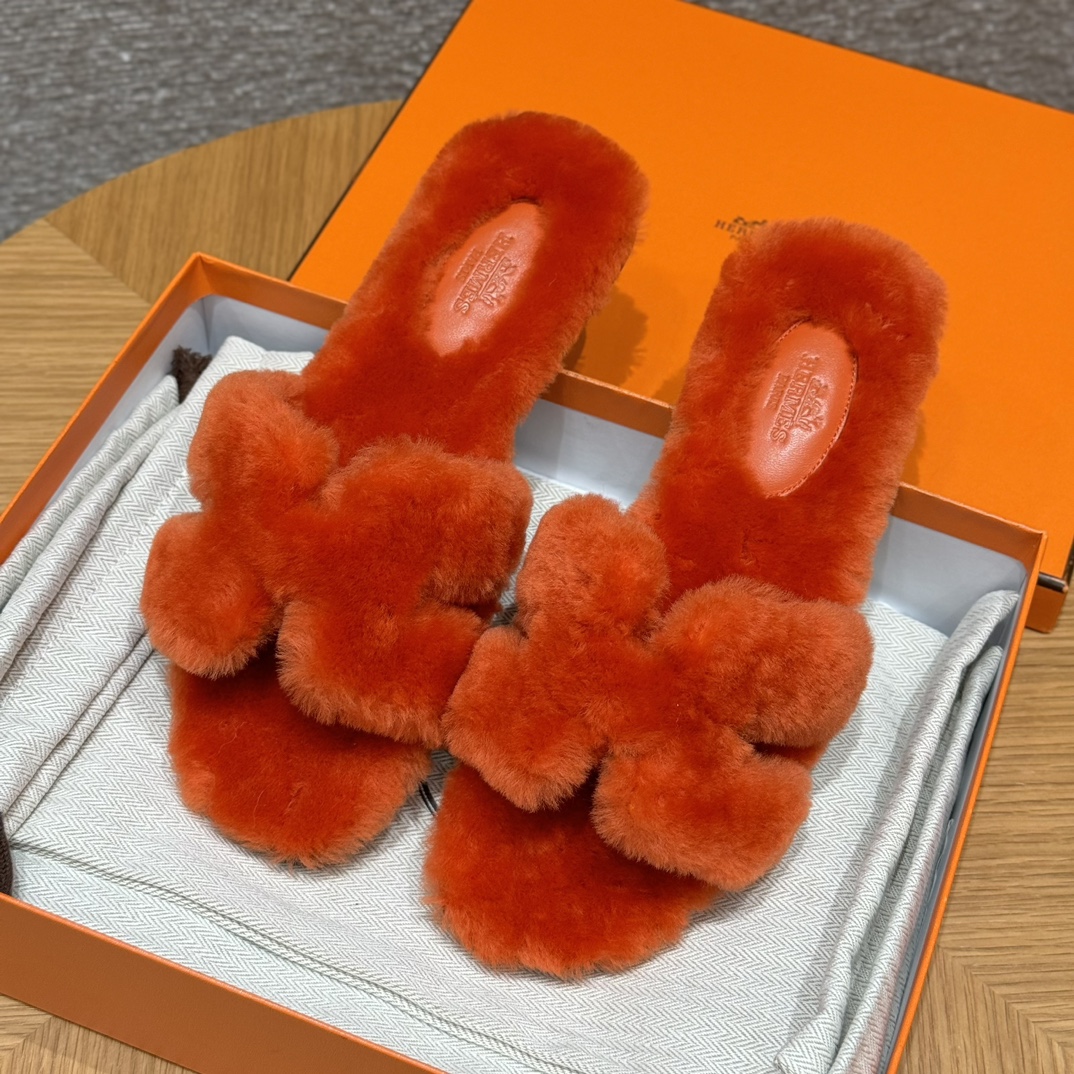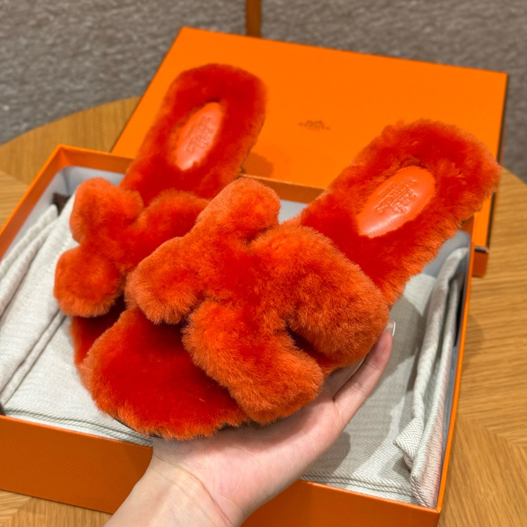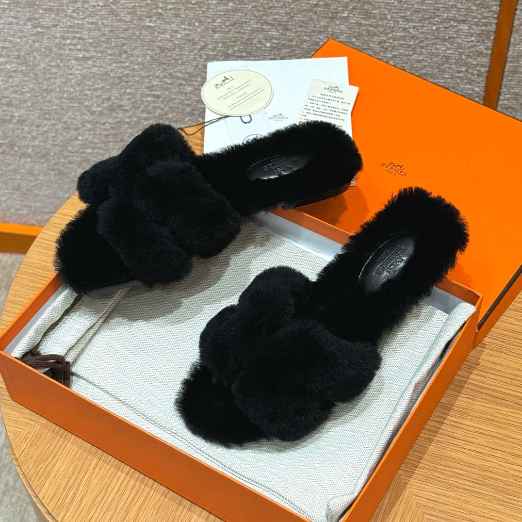 NIGO Hermes Oran Sandals Women's Spring And Autumn Wool Temperament Fashion Elegant Simple Casual Shoes Fashionable Outwear Slippers #nigo71711