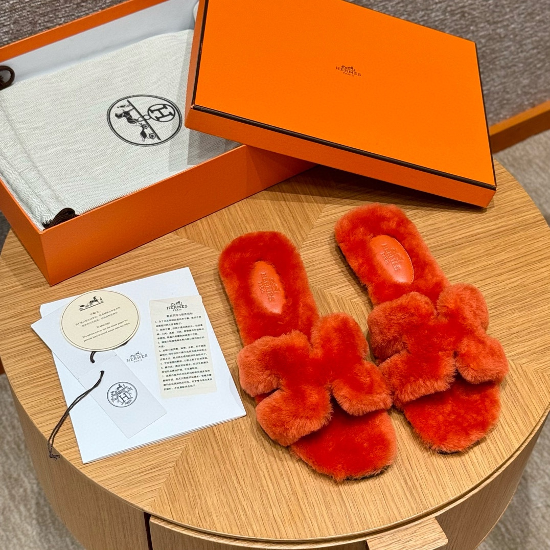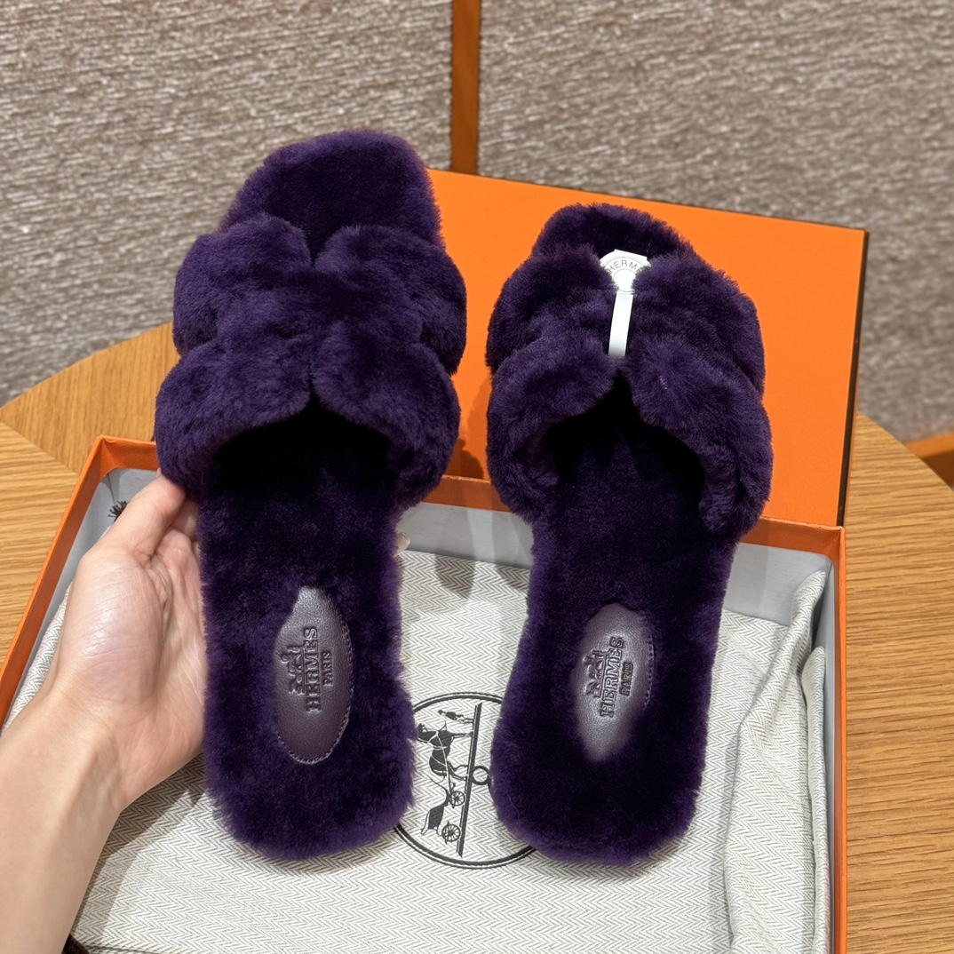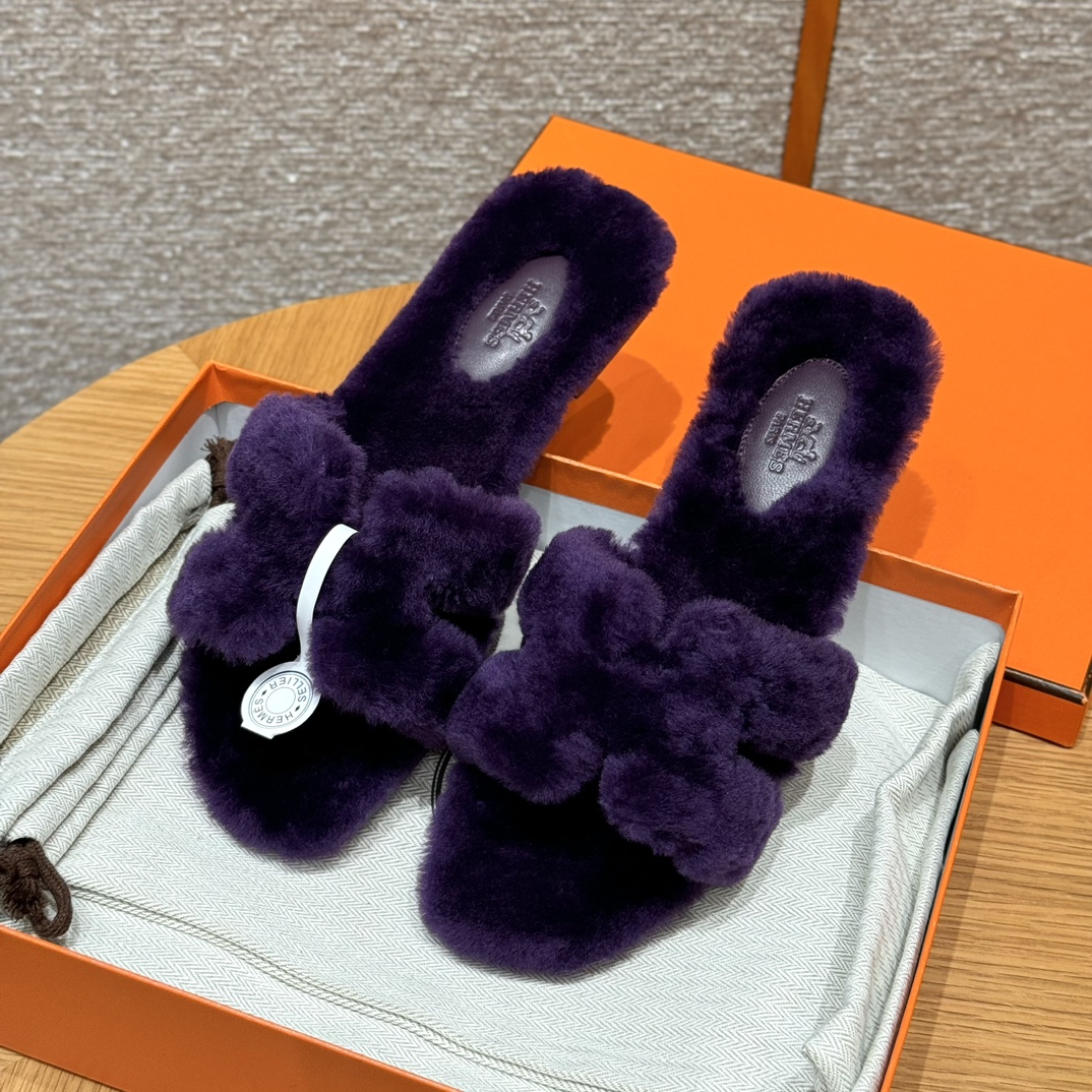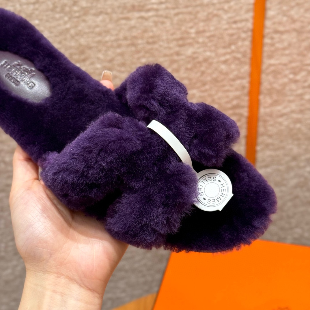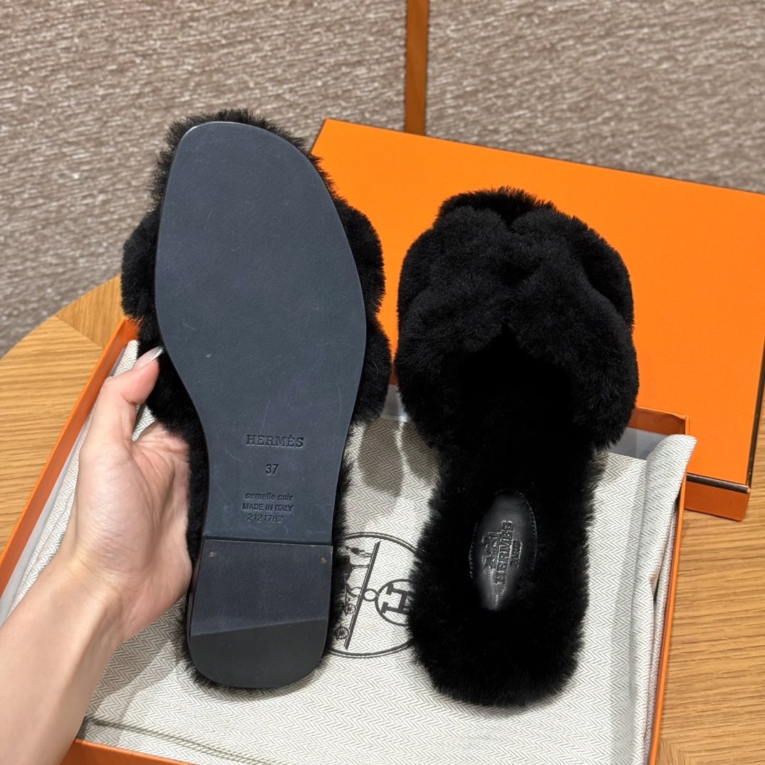 NIGO Hermes Oran Sandals Women's Spring And Autumn Wool Temperament Fashion Elegant Simple Casual Shoes Fashionable Outwear Slippers #nigo71711