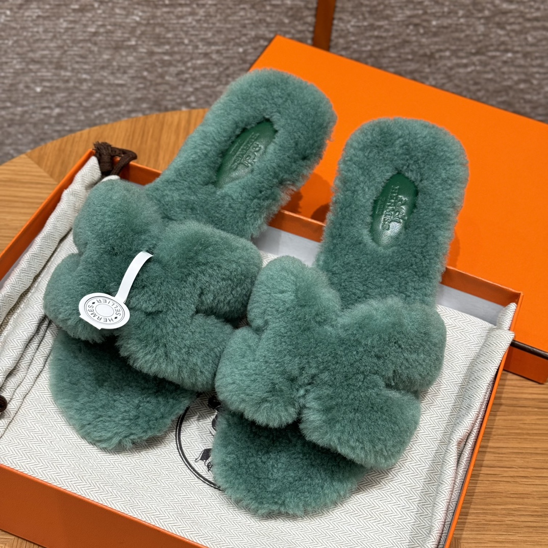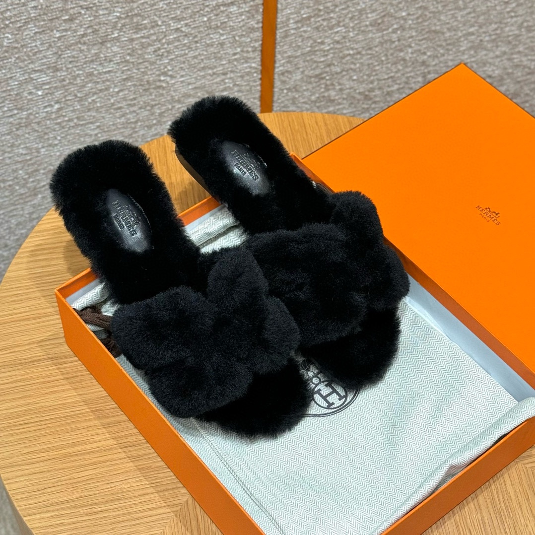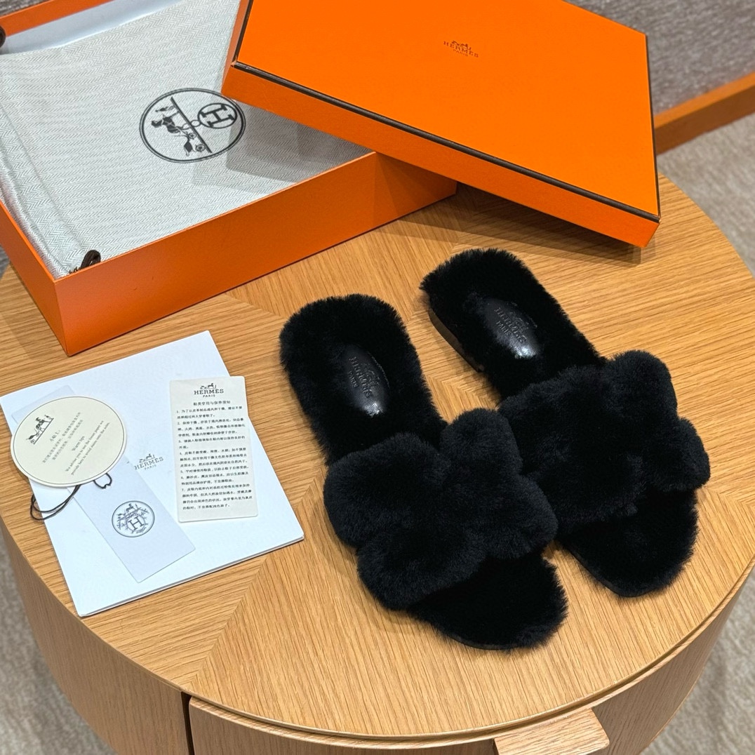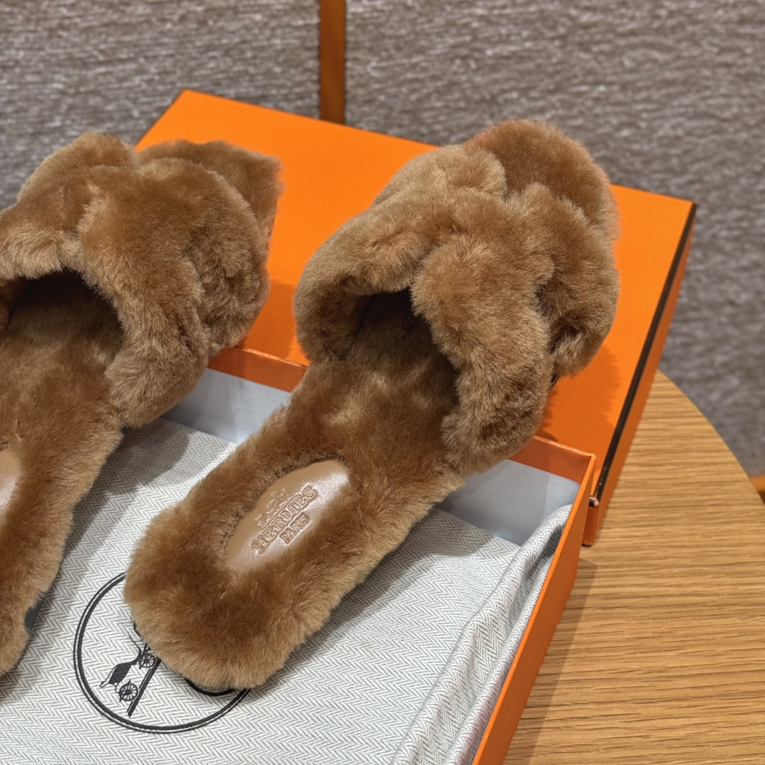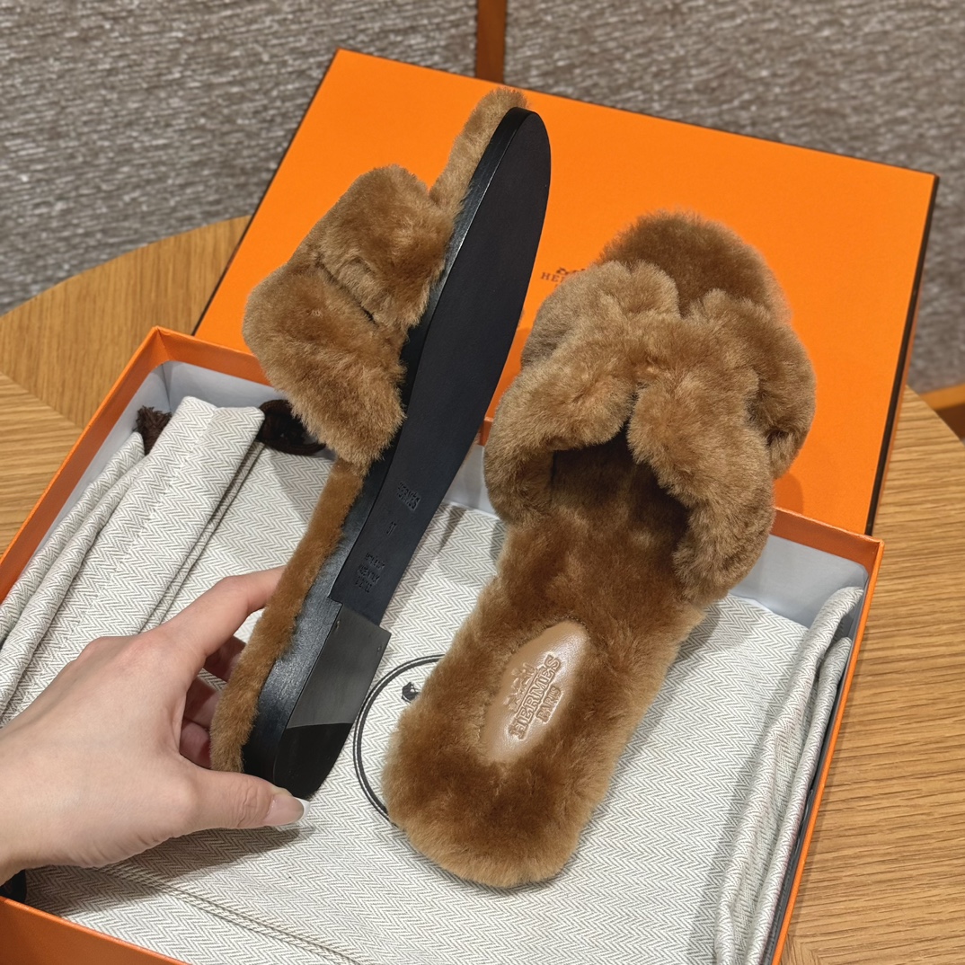 NIGO Hermes Oran Sandals Women's Spring And Autumn Wool Temperament Fashion Elegant Simple Casual Shoes Fashionable Outwear Slippers #nigo71711