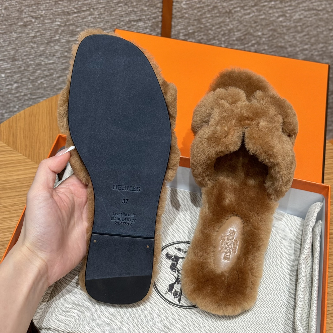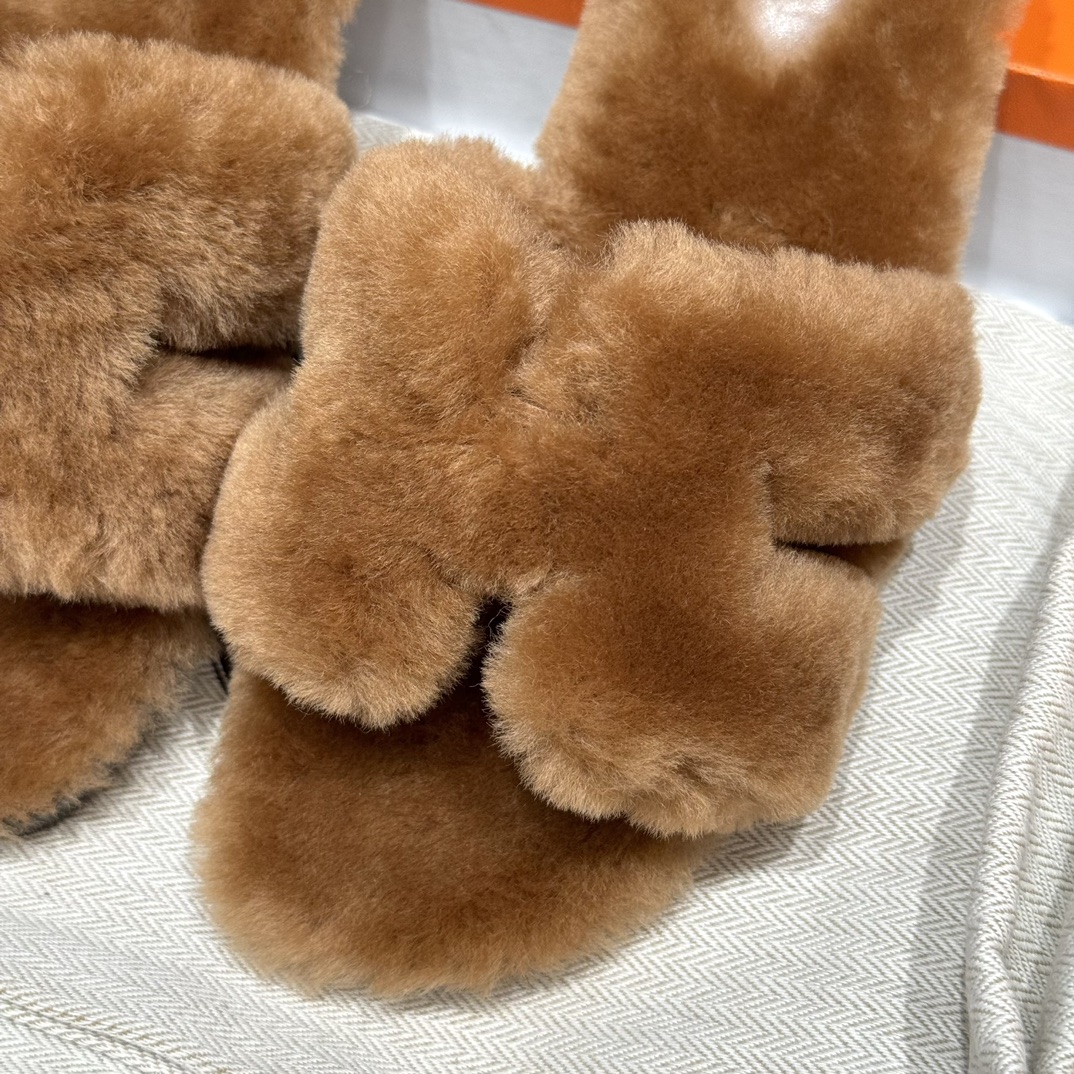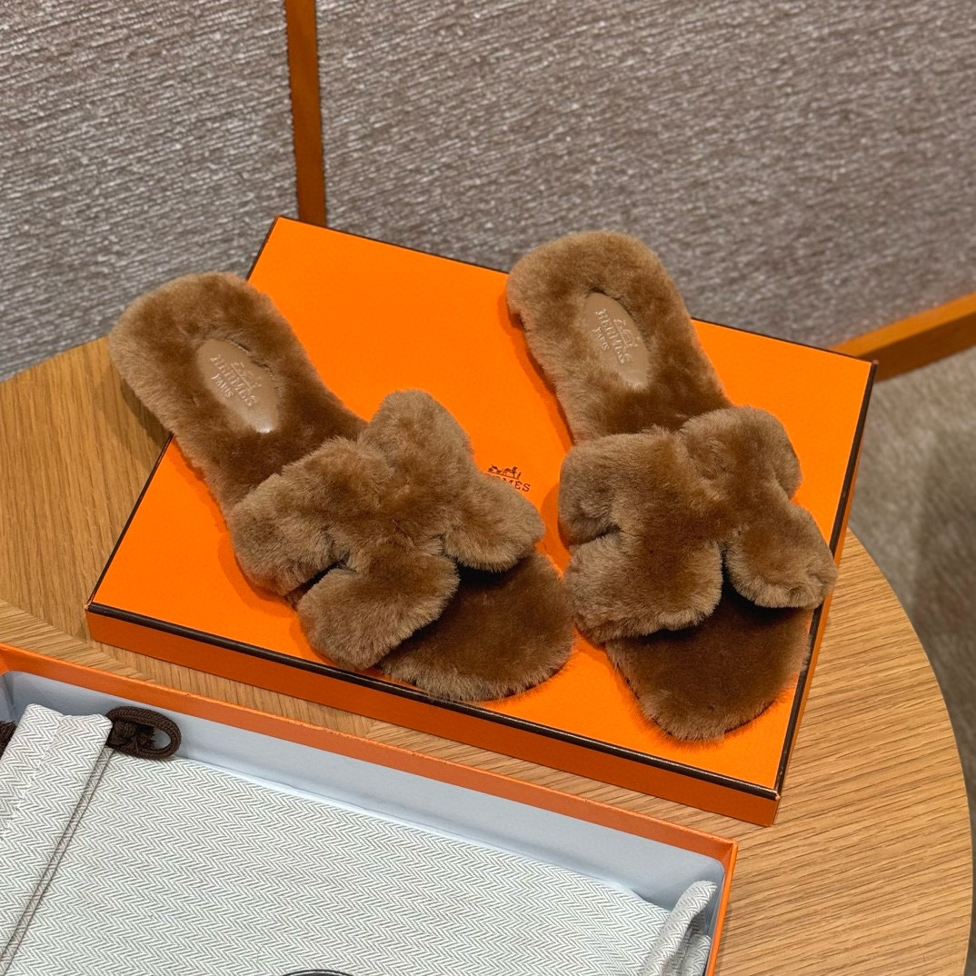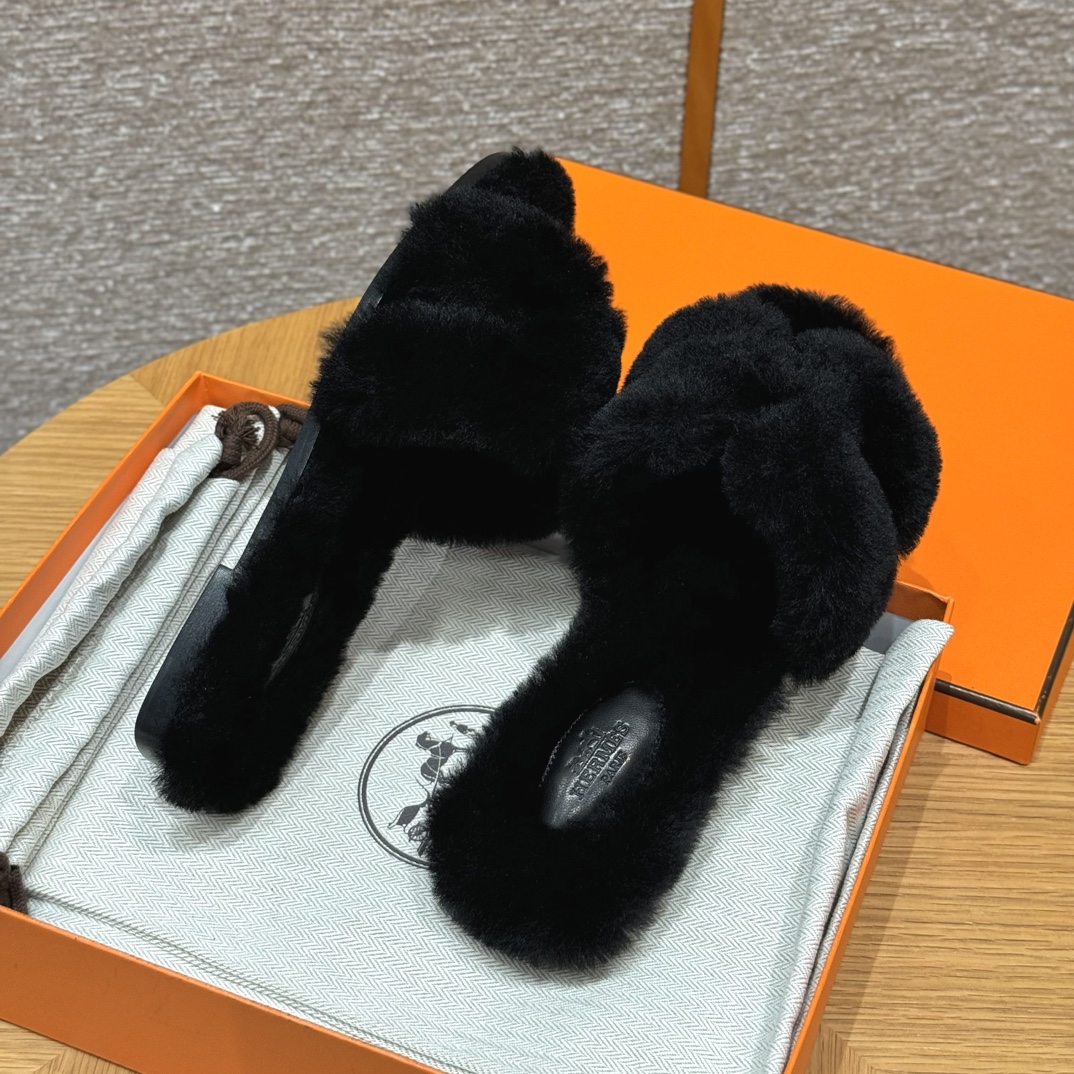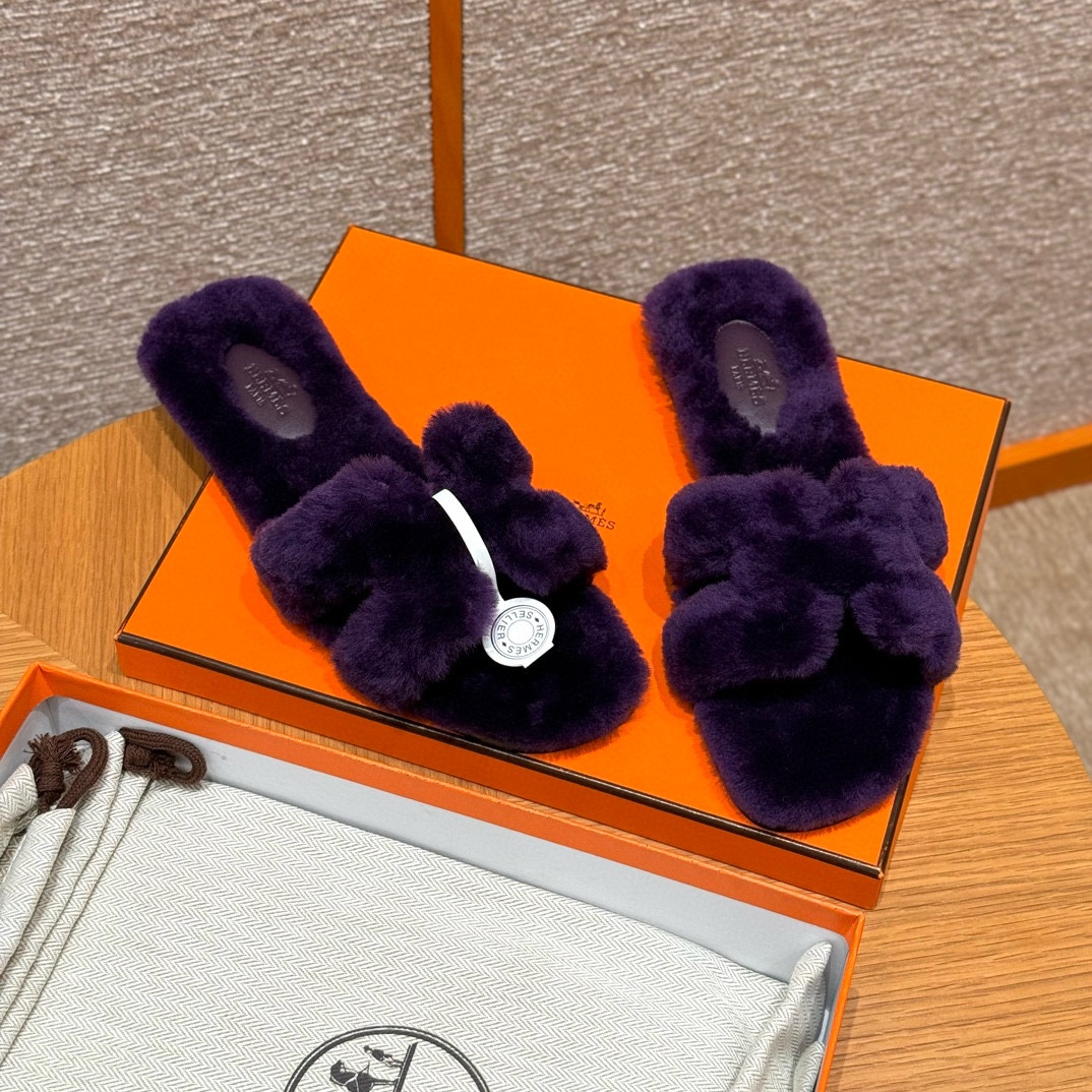 NIGO Hermes Oran Sandals Women's Spring And Autumn Wool Temperament Fashion Elegant Simple Casual Shoes Fashionable Outwear Slippers #nigo71711