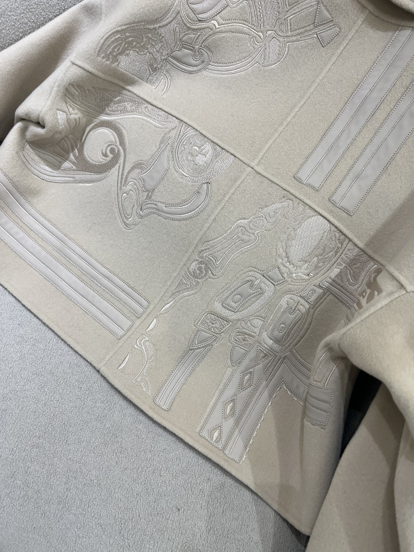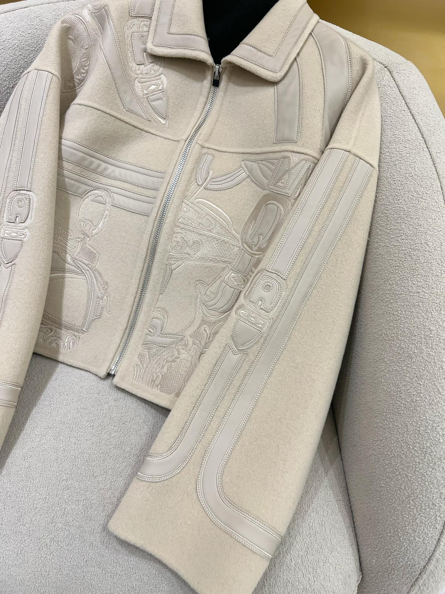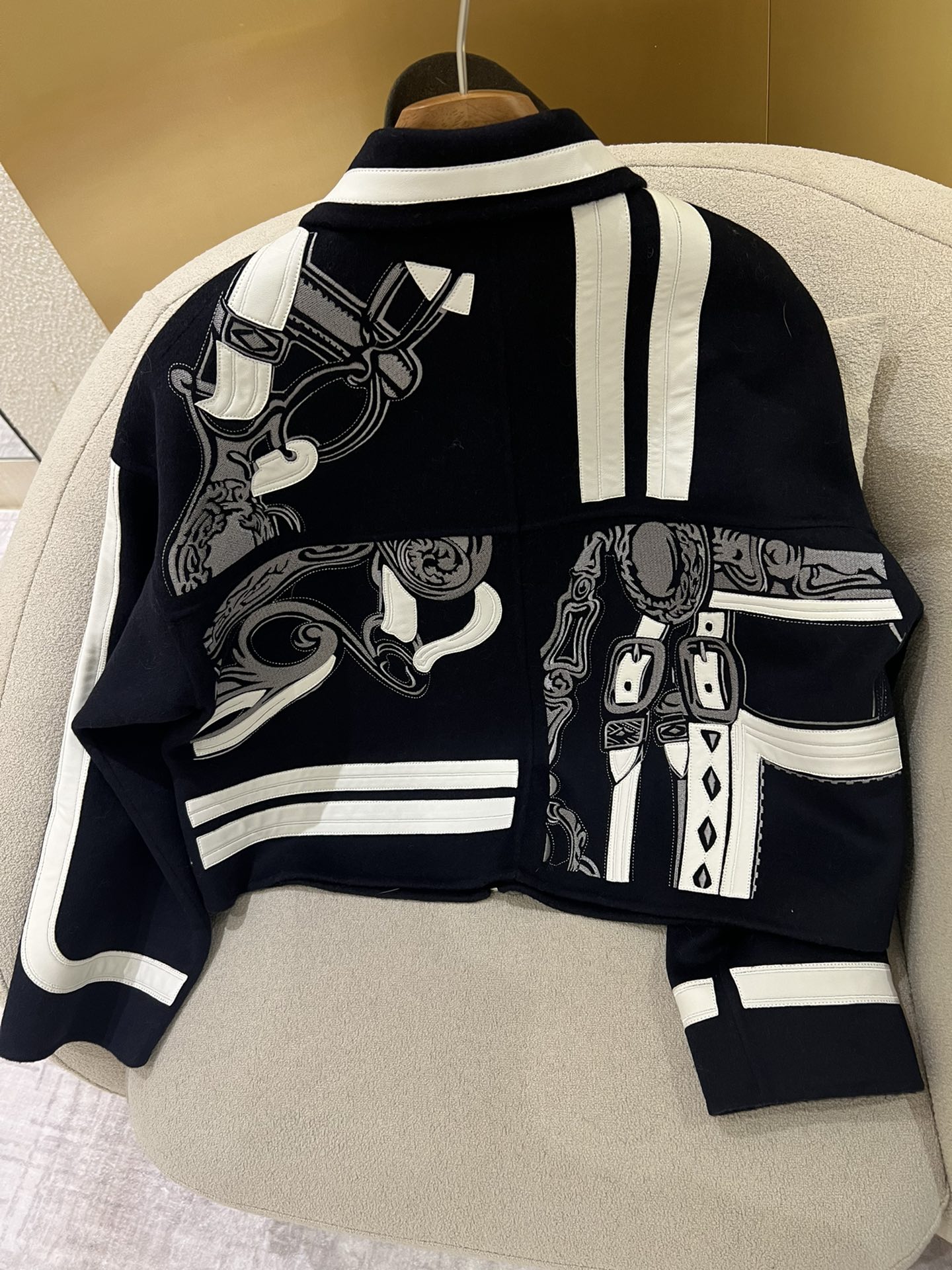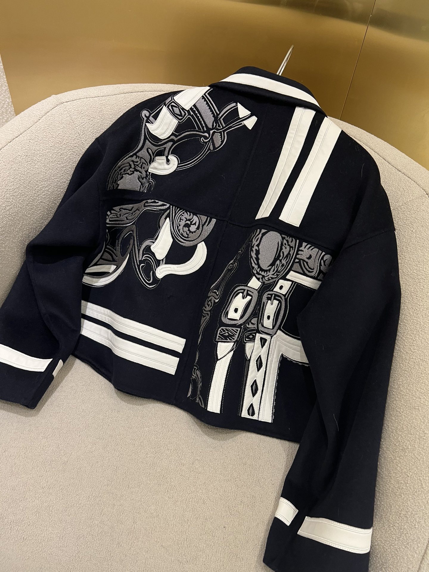 NIGO Hermes Women's Autumn And Winter Cashmere Totem Embroidery Sheepskin Splicing Silhouette Short Coat Fashionable And Casual Elegant Temperament Jacket Ngvp #nigo9236