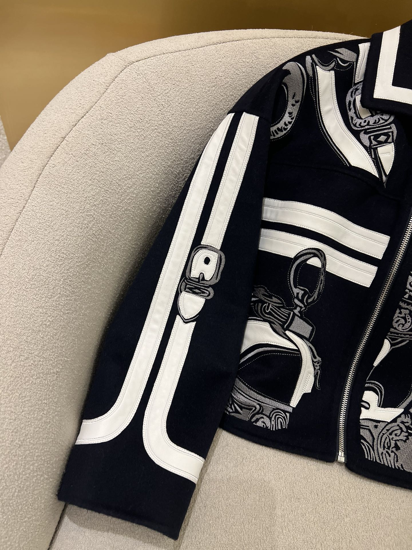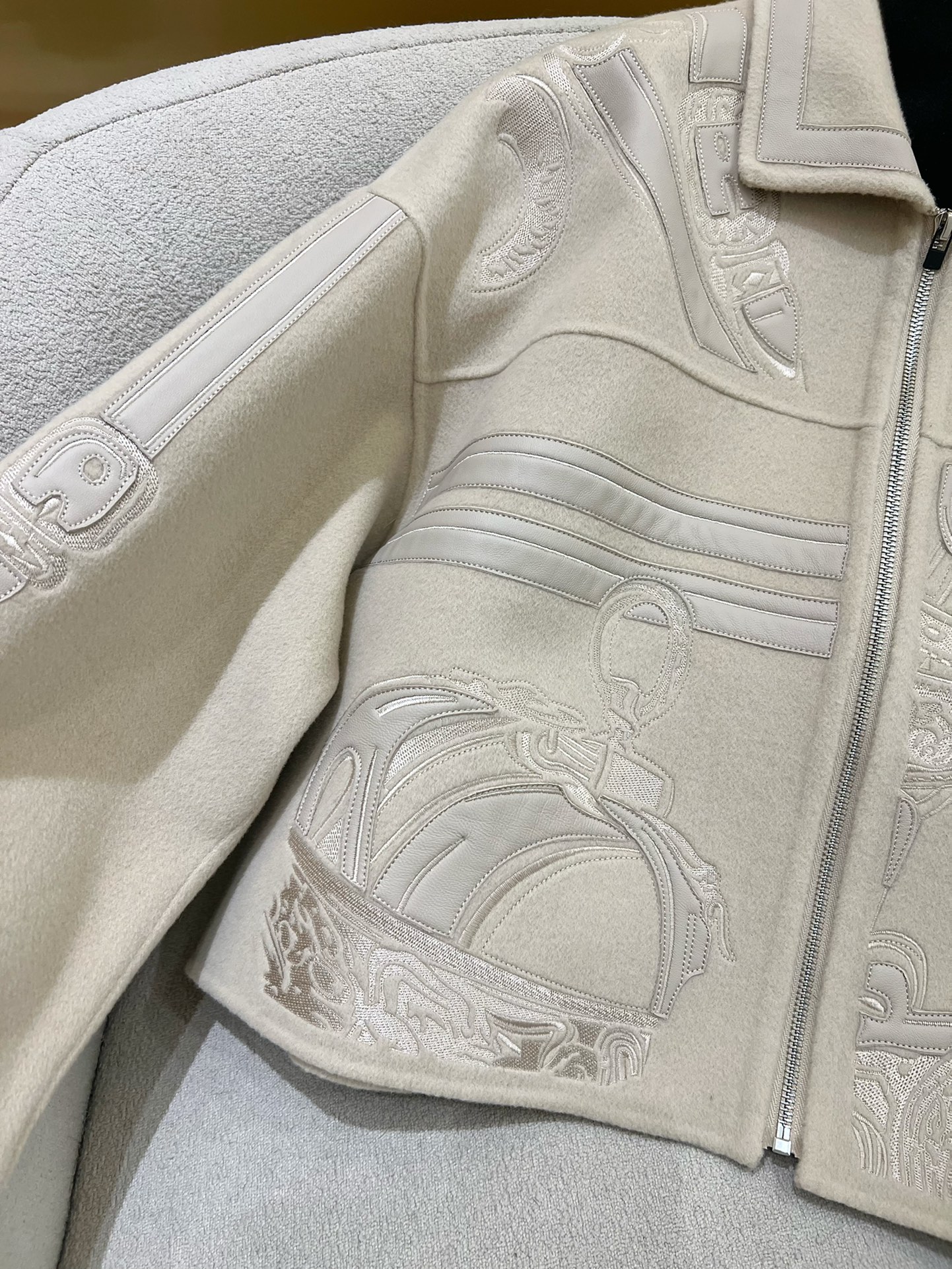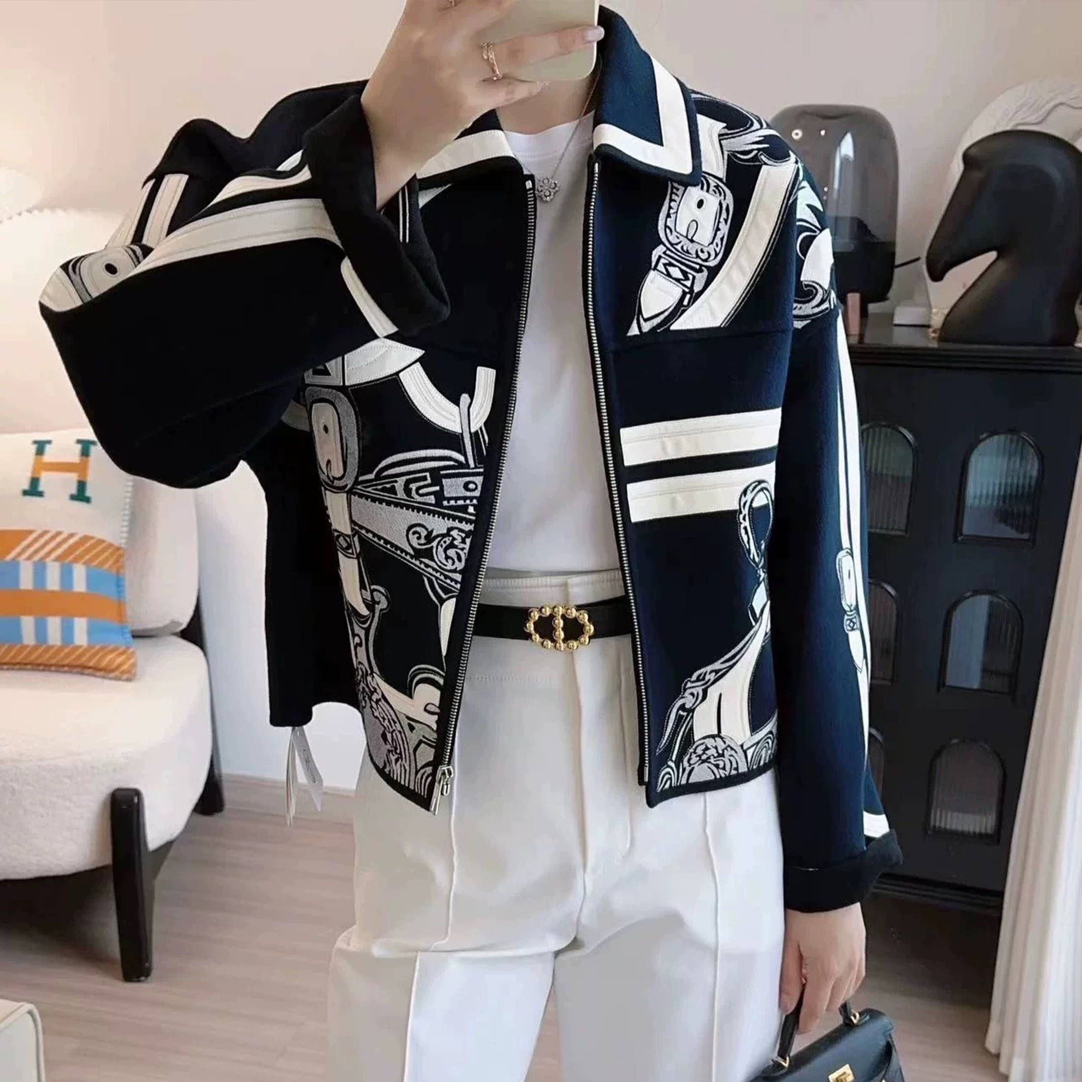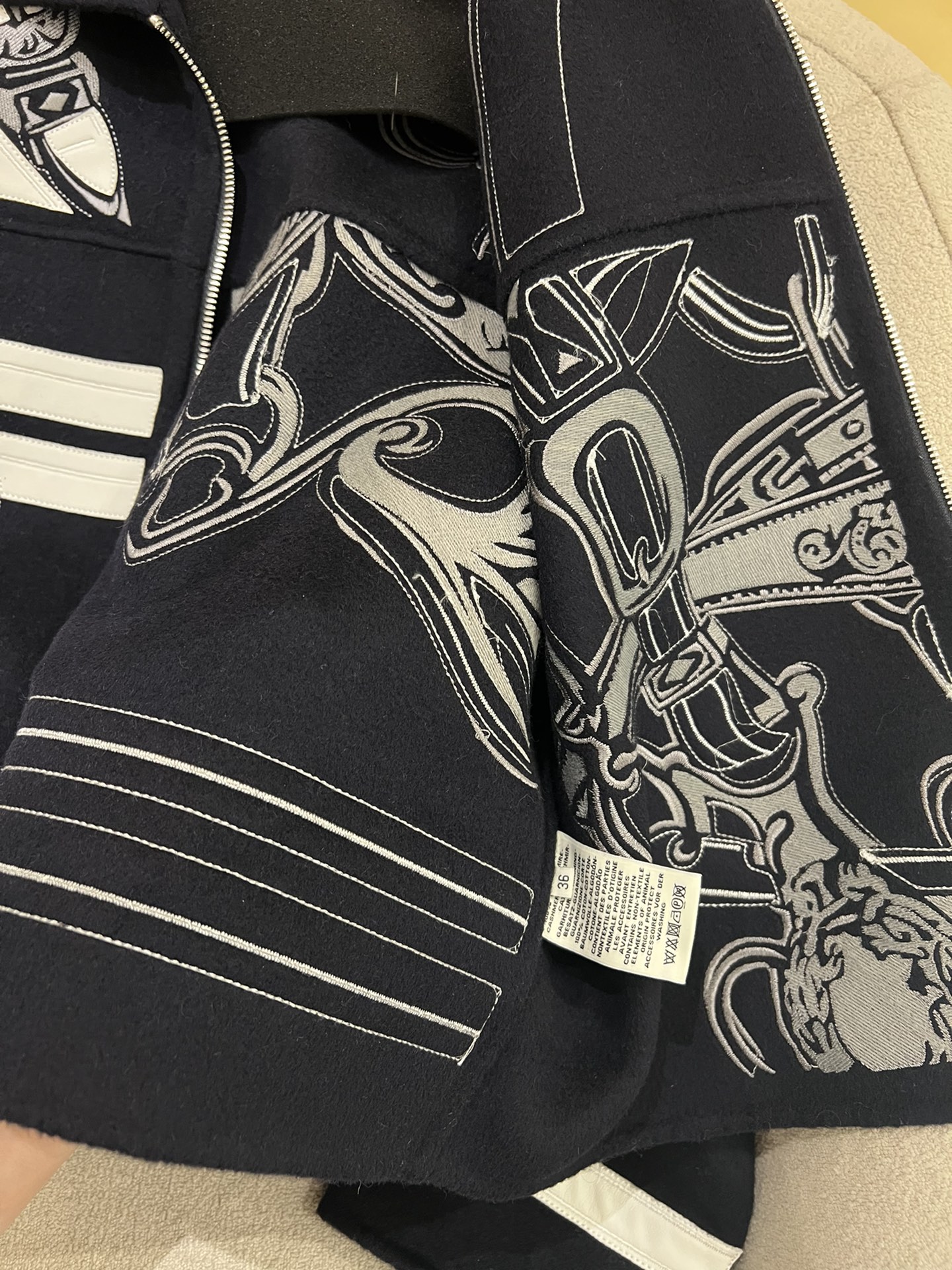 NIGO Hermes Women's Autumn And Winter Cashmere Totem Embroidery Sheepskin Splicing Silhouette Short Coat Fashionable And Casual Elegant Temperament Jacket Ngvp #nigo9236