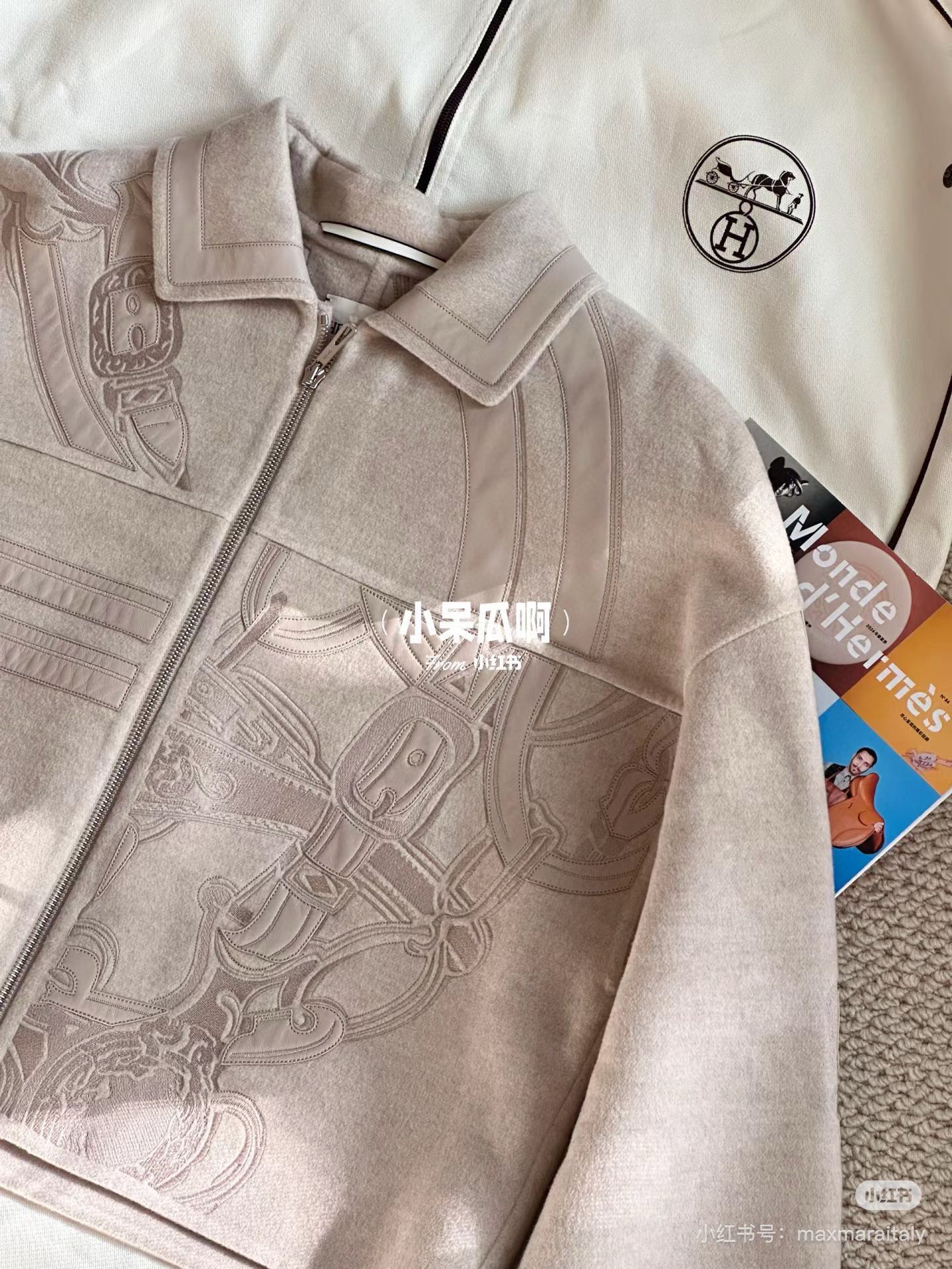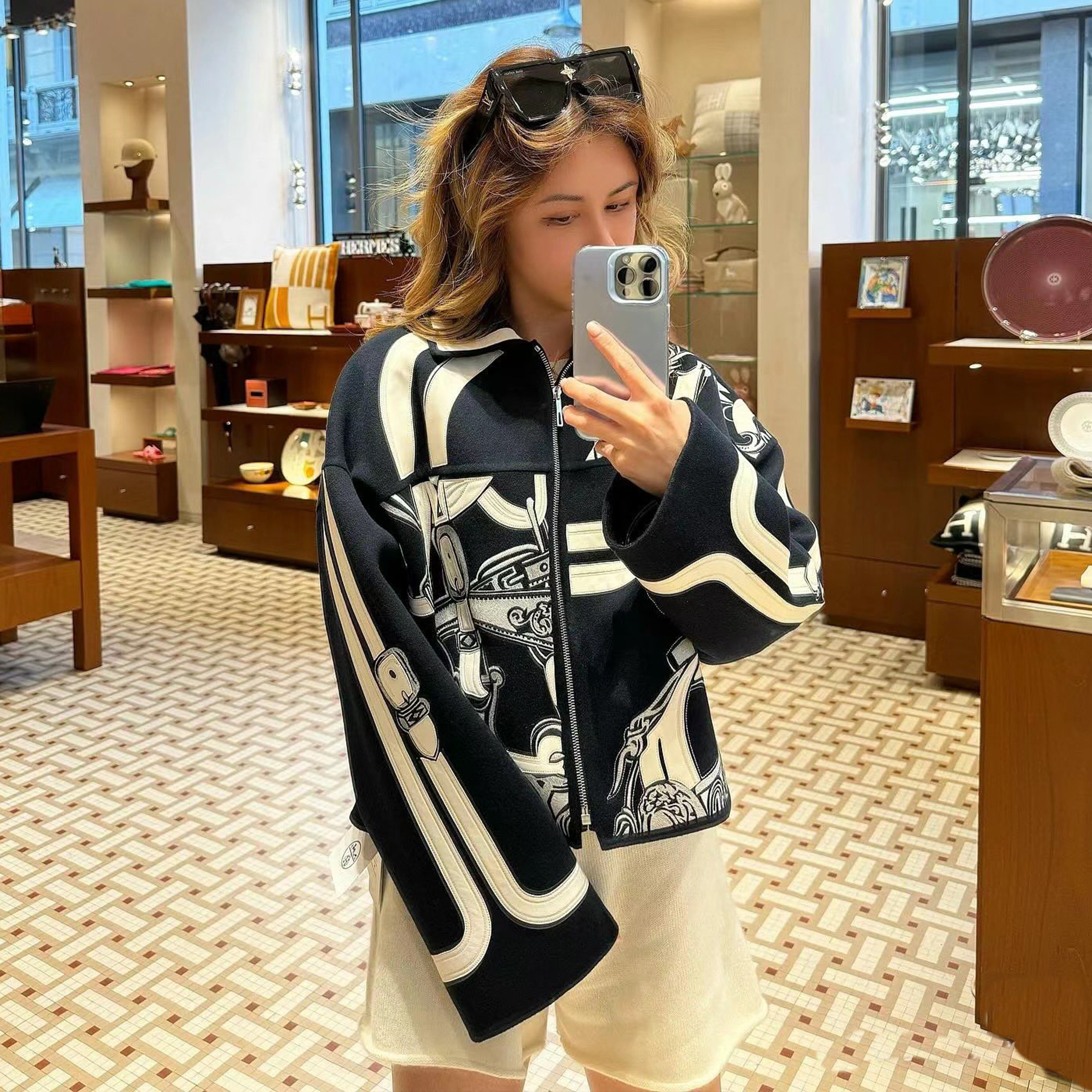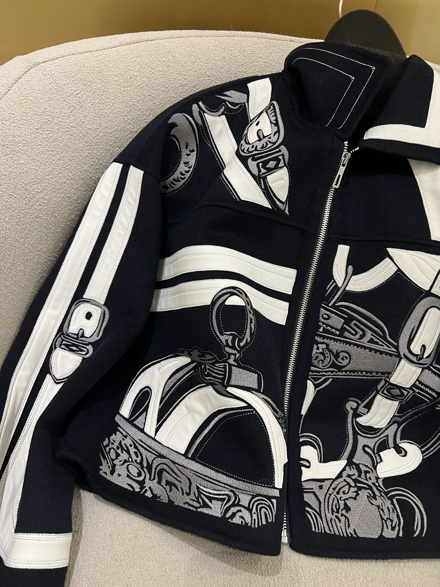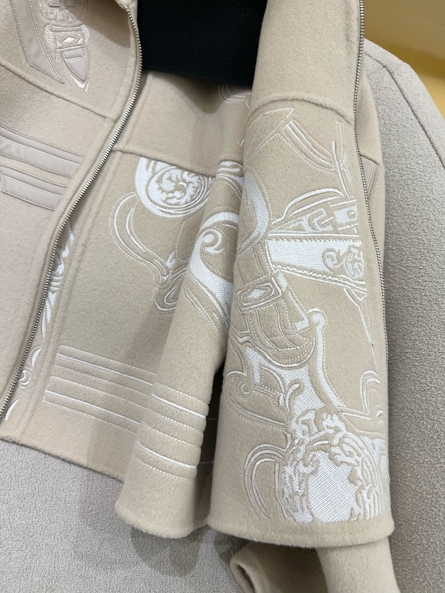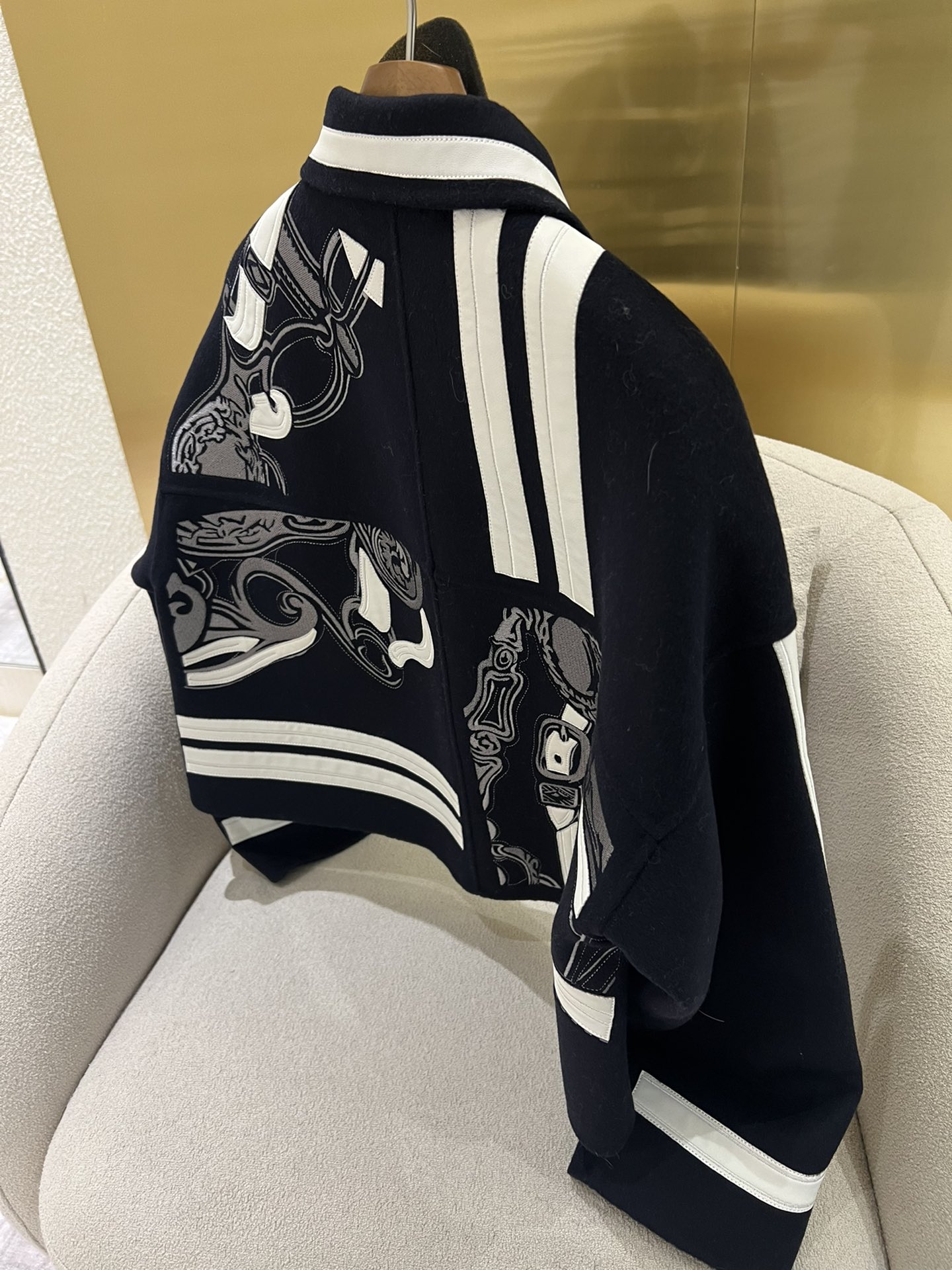 NIGO Hermes Women's Autumn And Winter Cashmere Totem Embroidery Sheepskin Splicing Silhouette Short Coat Fashionable And Casual Elegant Temperament Jacket Ngvp #nigo9236