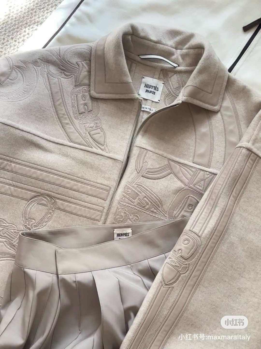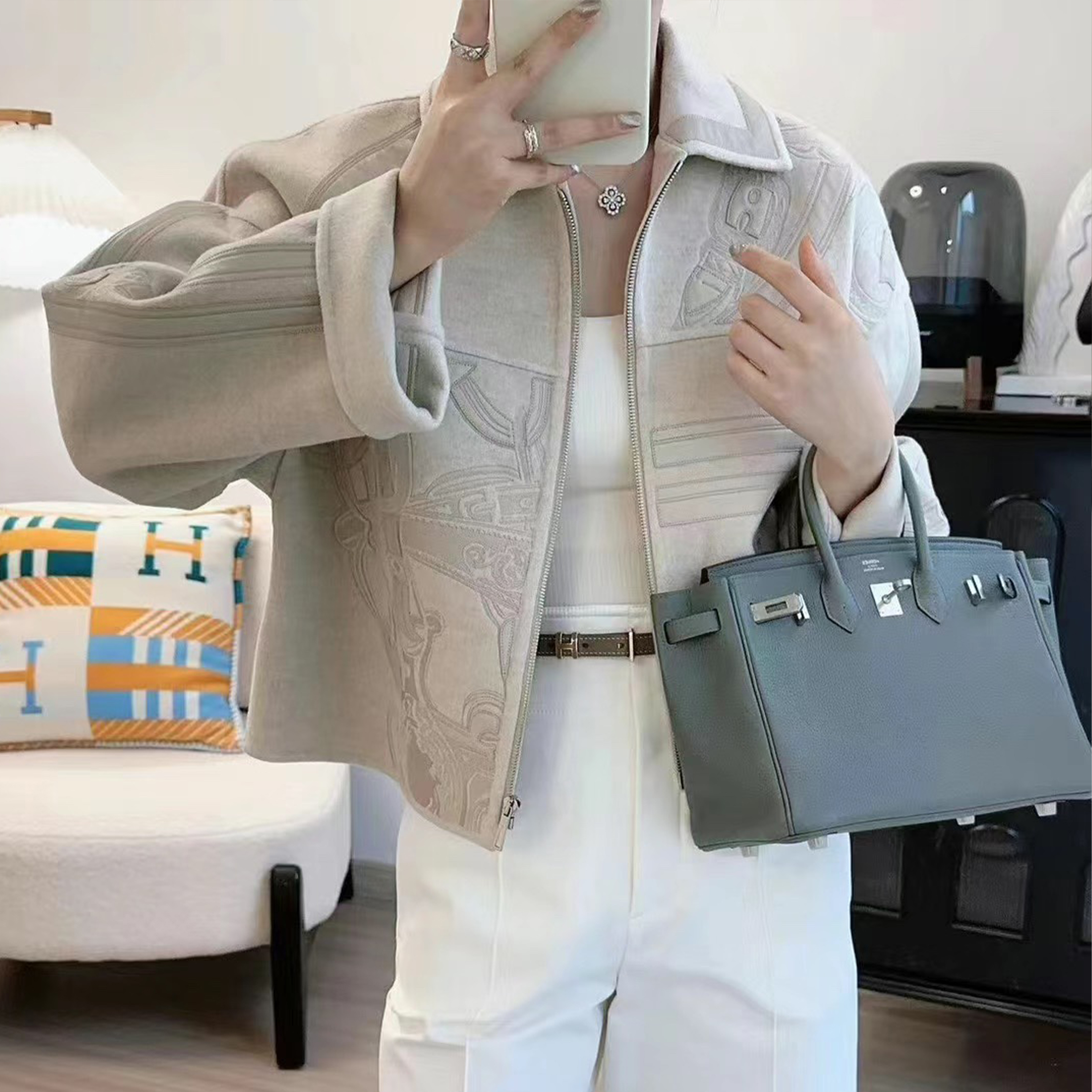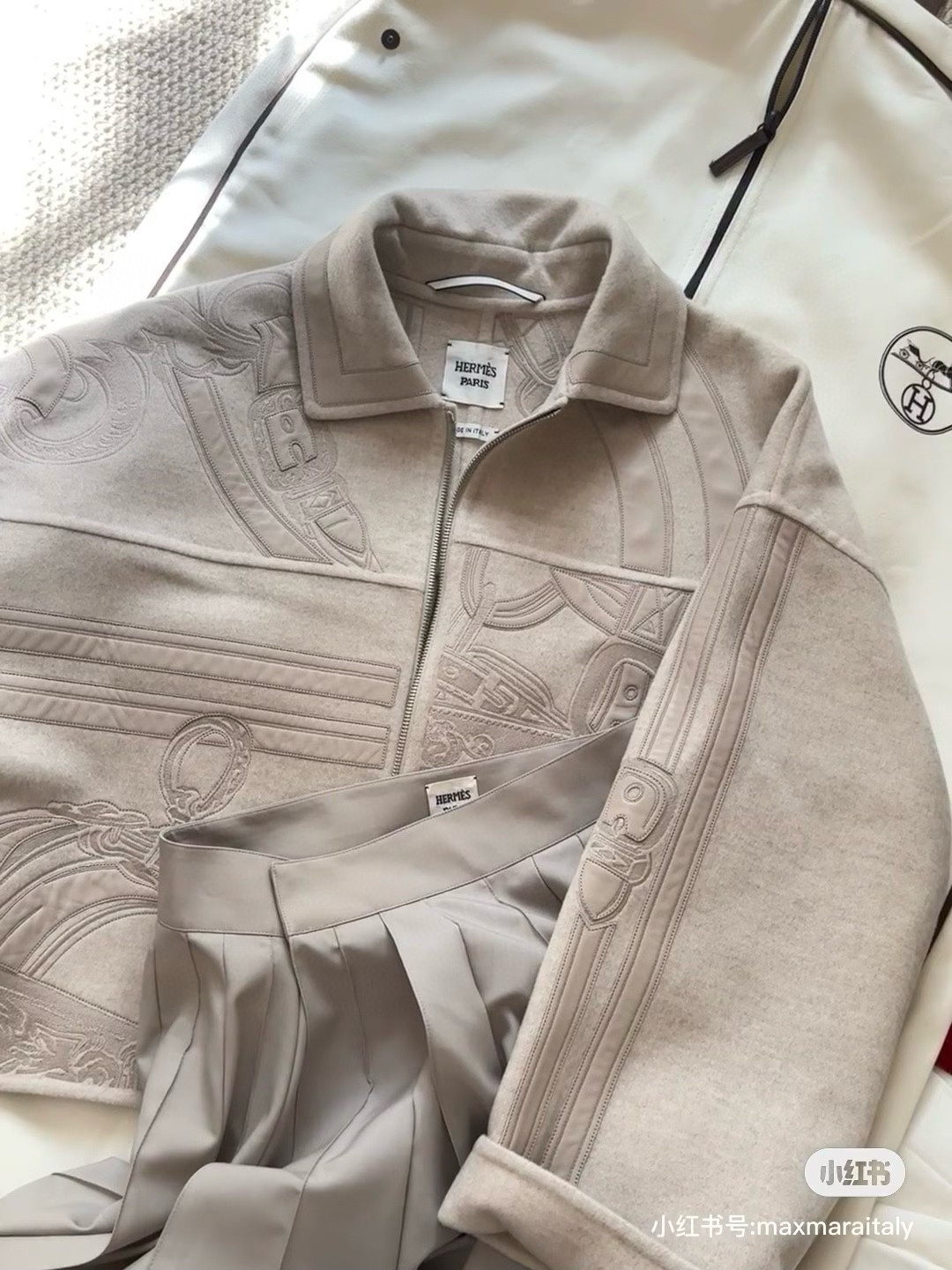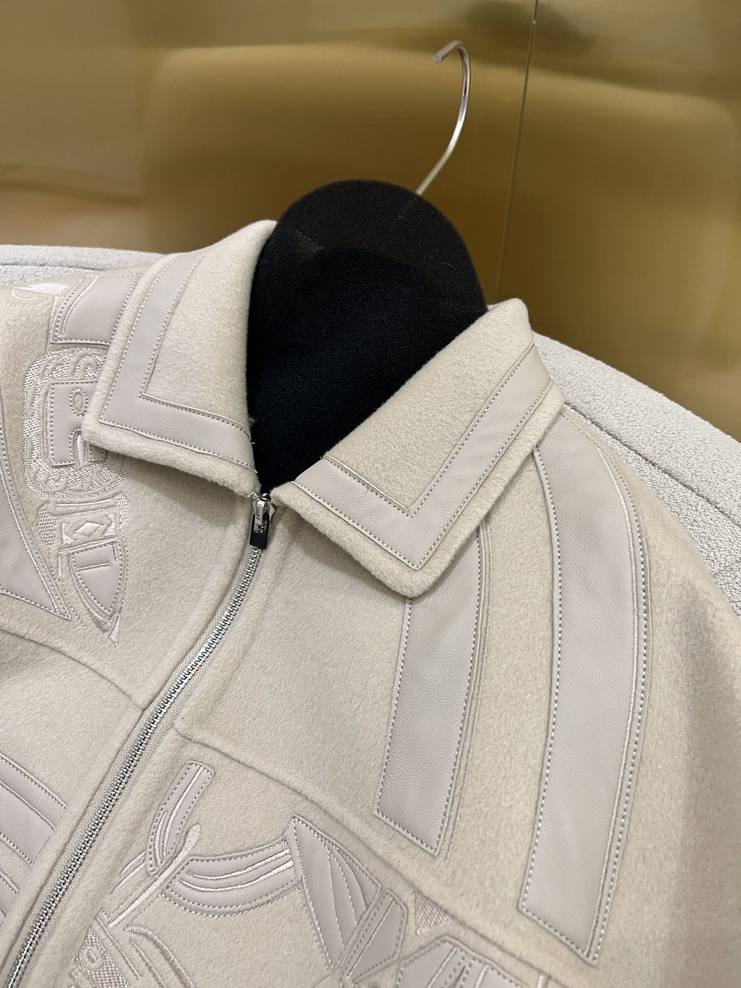 NIGO Hermes Women's Autumn And Winter Cashmere Totem Embroidery Sheepskin Splicing Silhouette Short Coat Fashionable And Casual Elegant Temperament Jacket Ngvp #nigo9236