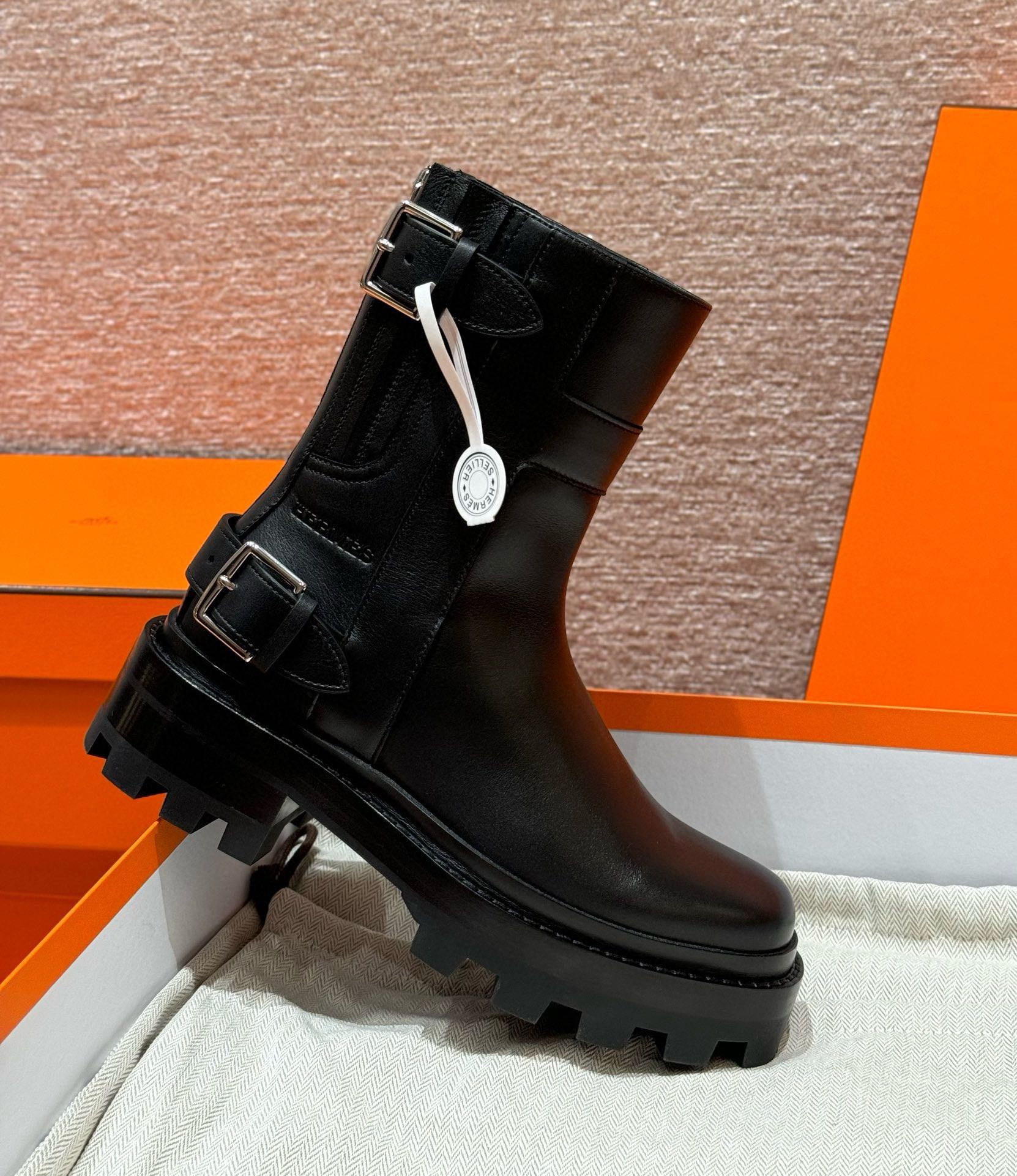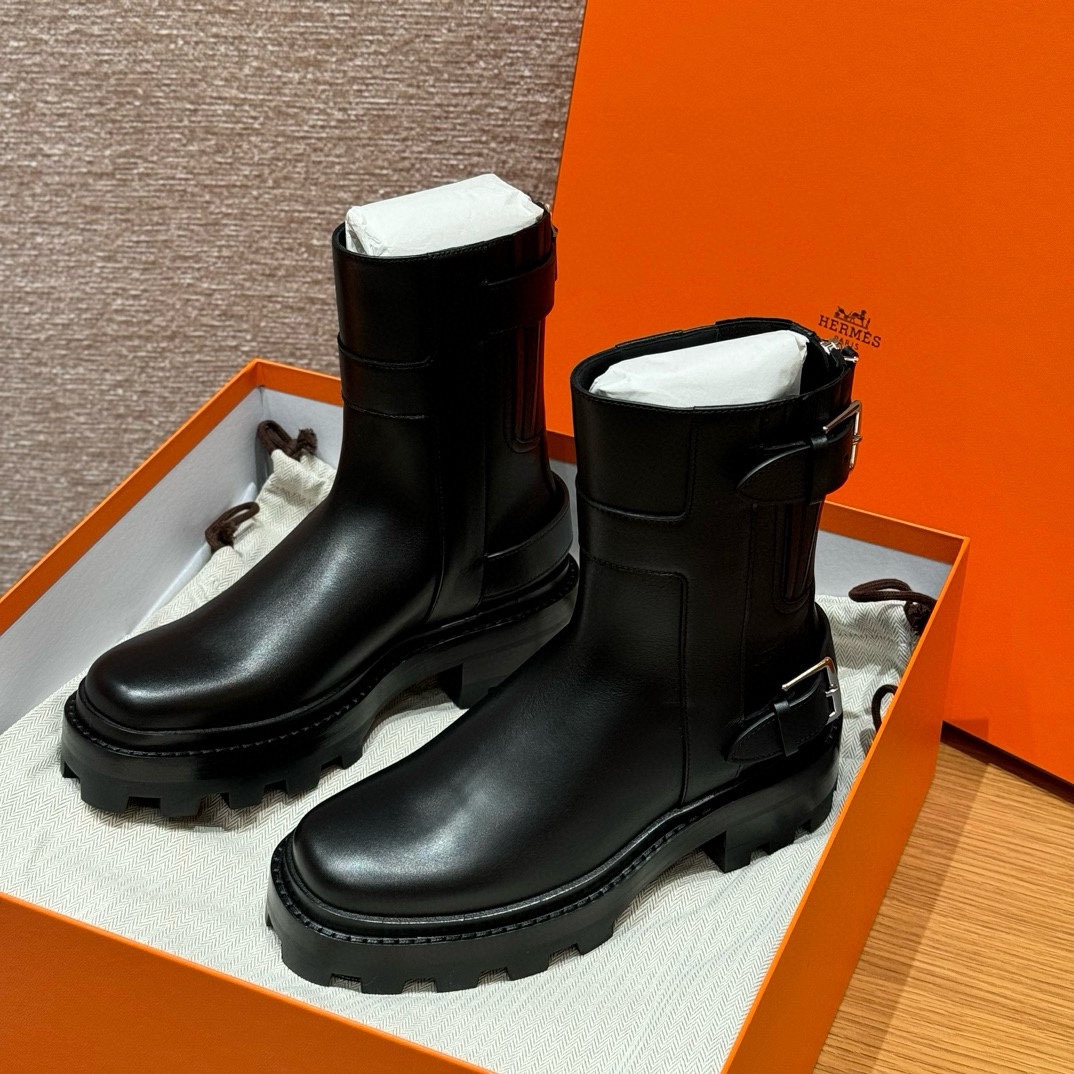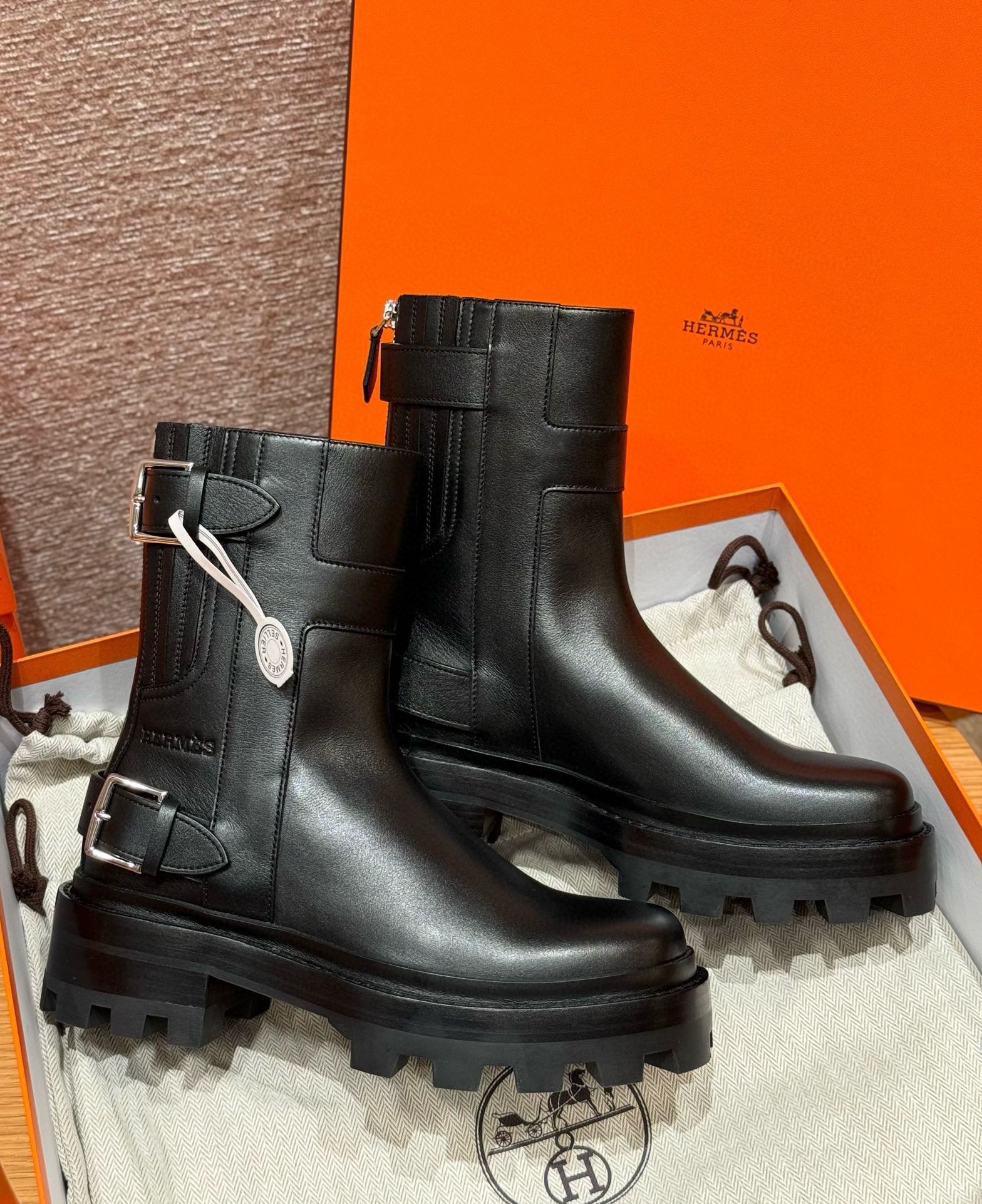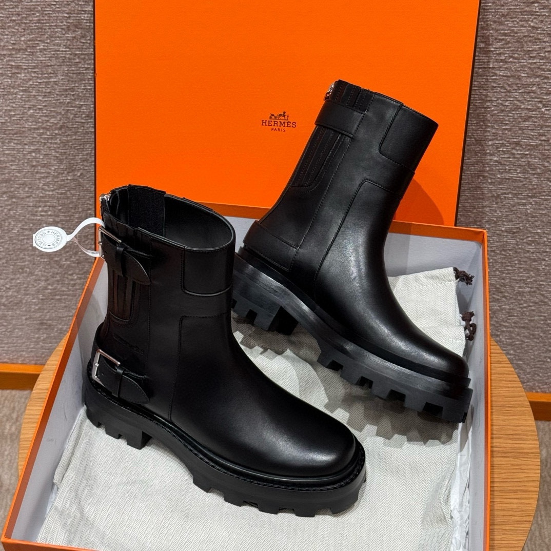 NIGO Hermes Women's Autumn And Winter Jaimy Ankle Boots Cowhide Round Toe Zipper Short Boots Casual Shoes Ngvp #nigo9736