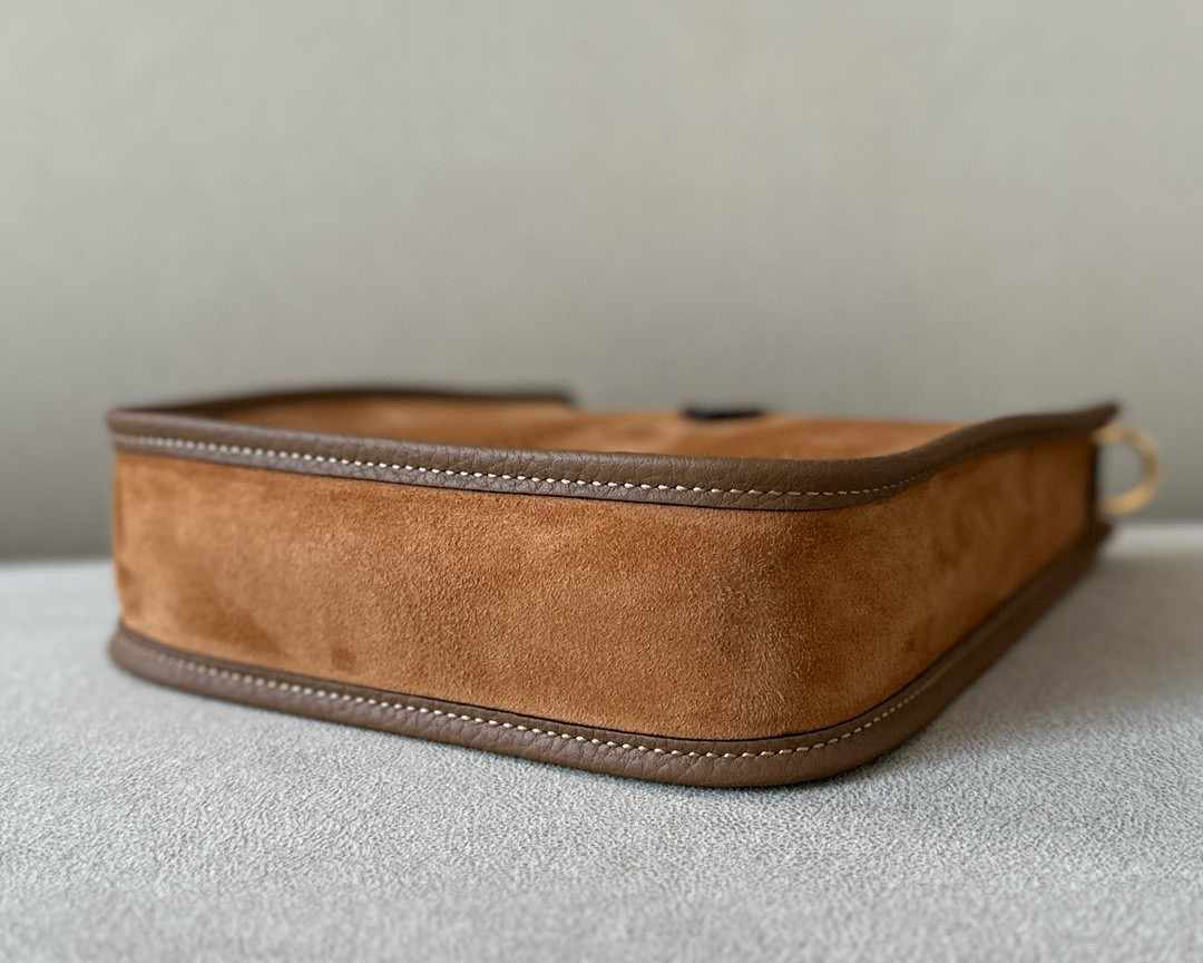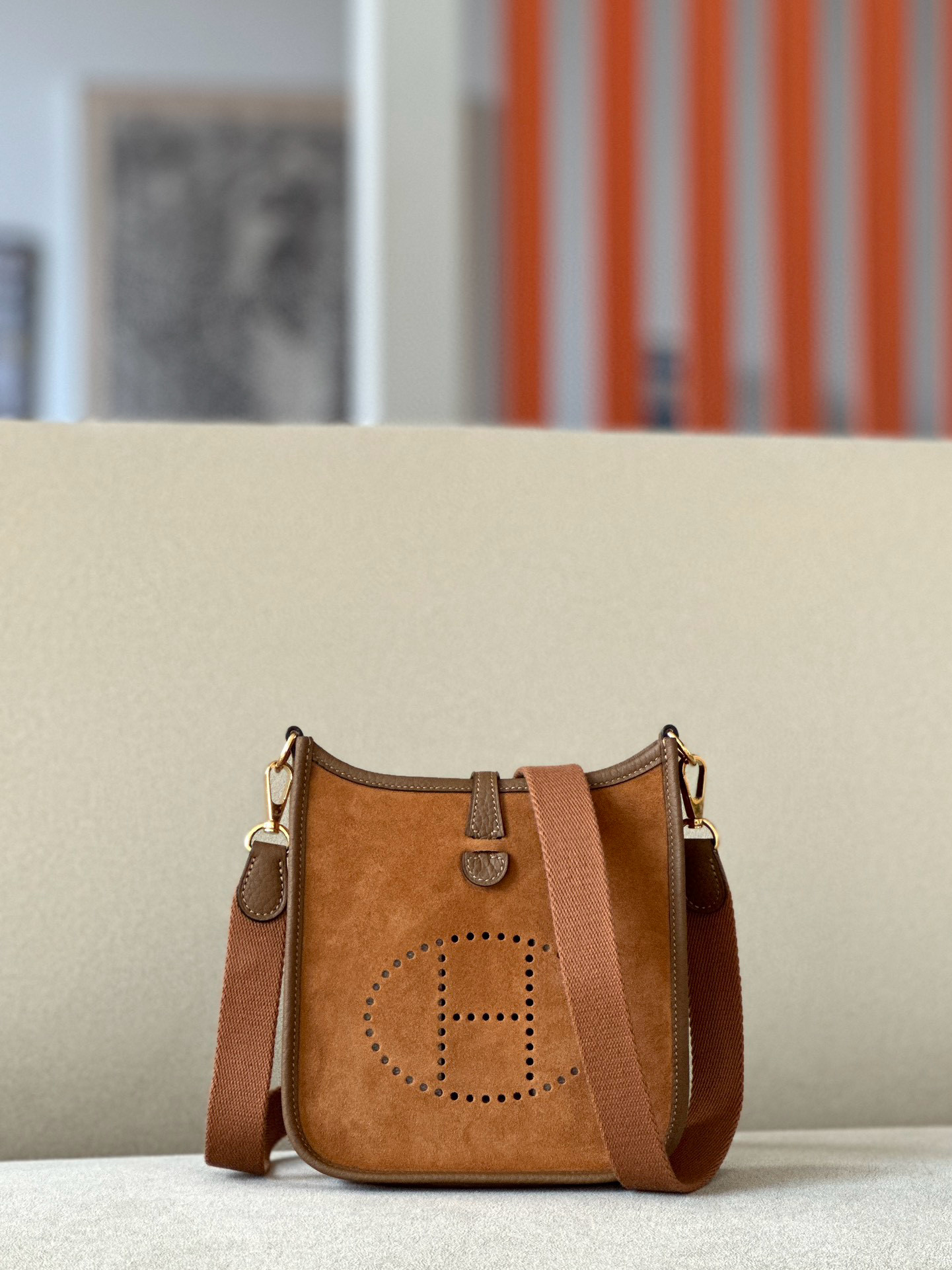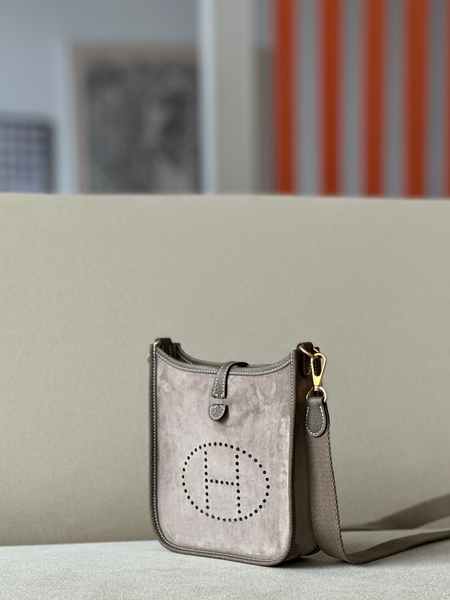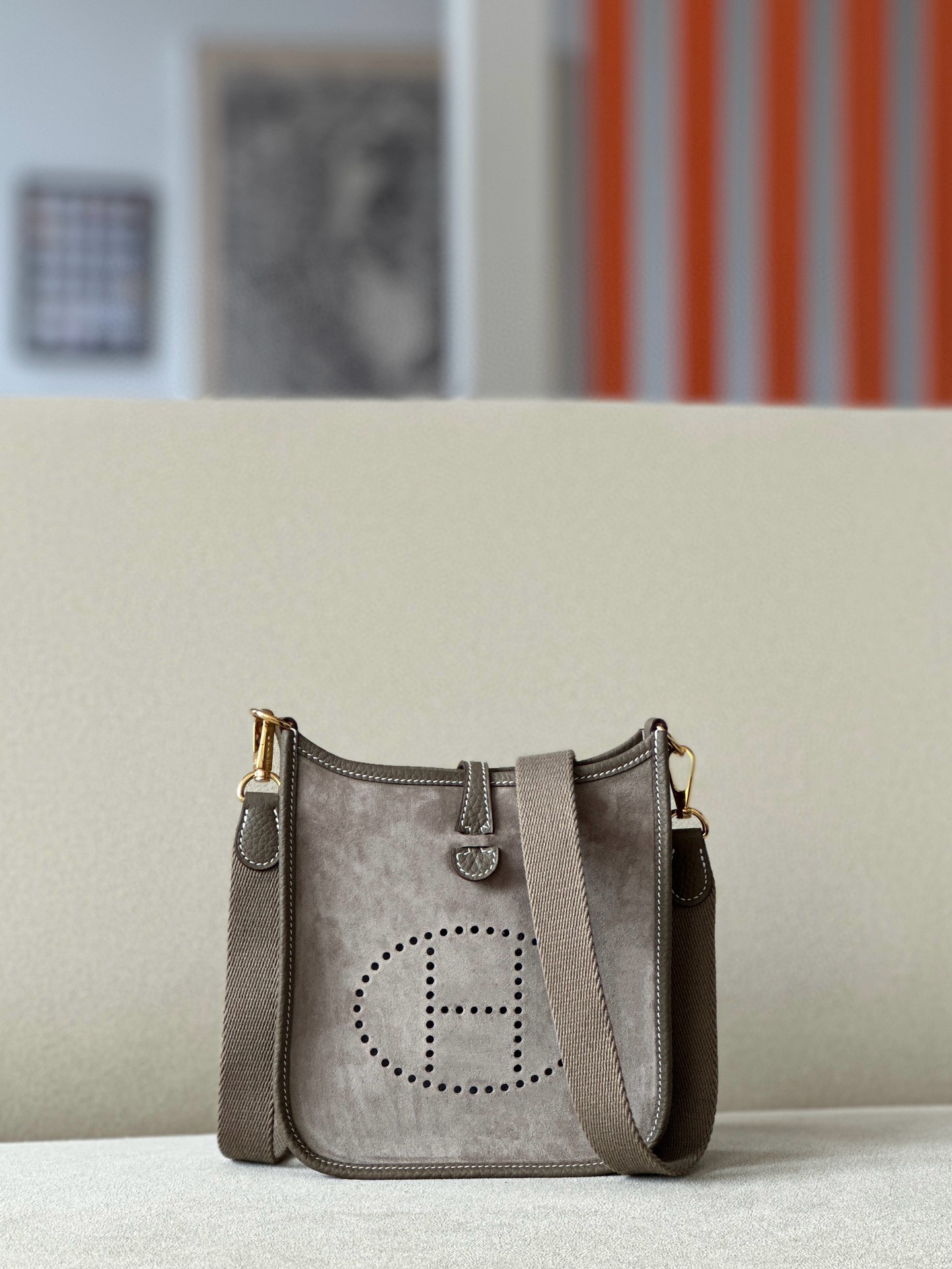 NIGO Hermes Women's Evelyne 16 Brown Grizzly Calfskin Quilted Clemence Calfskin Crossbody Shoulder Bag Bags #nigo98173