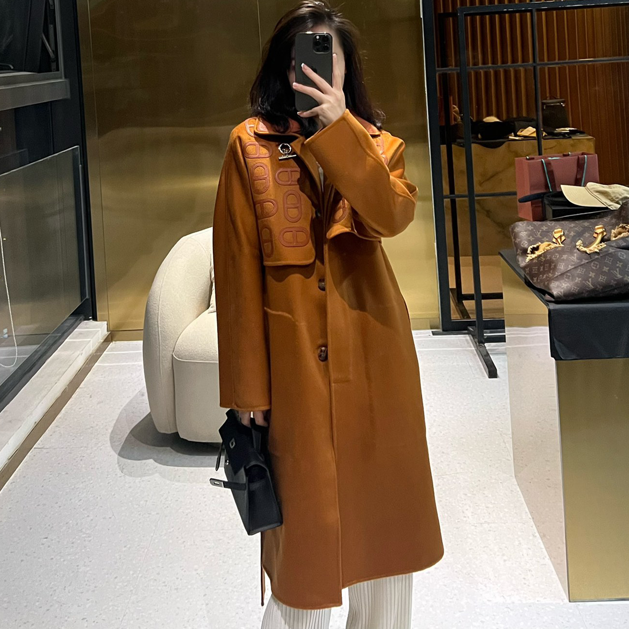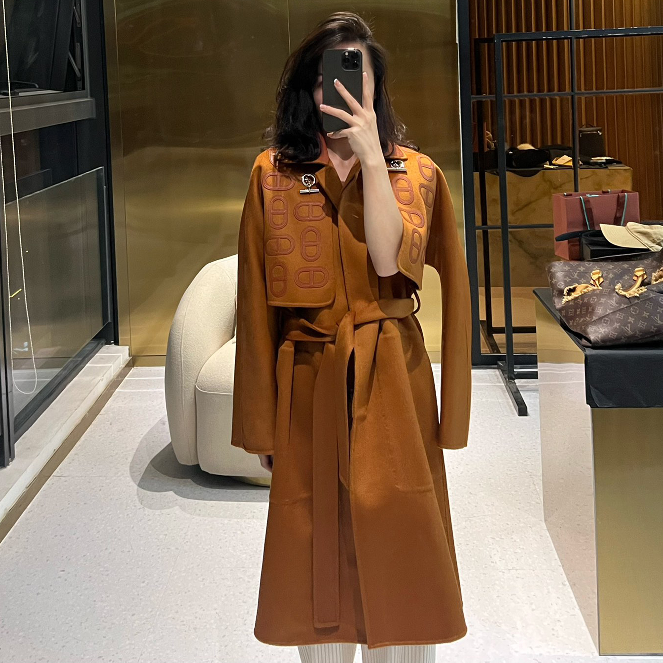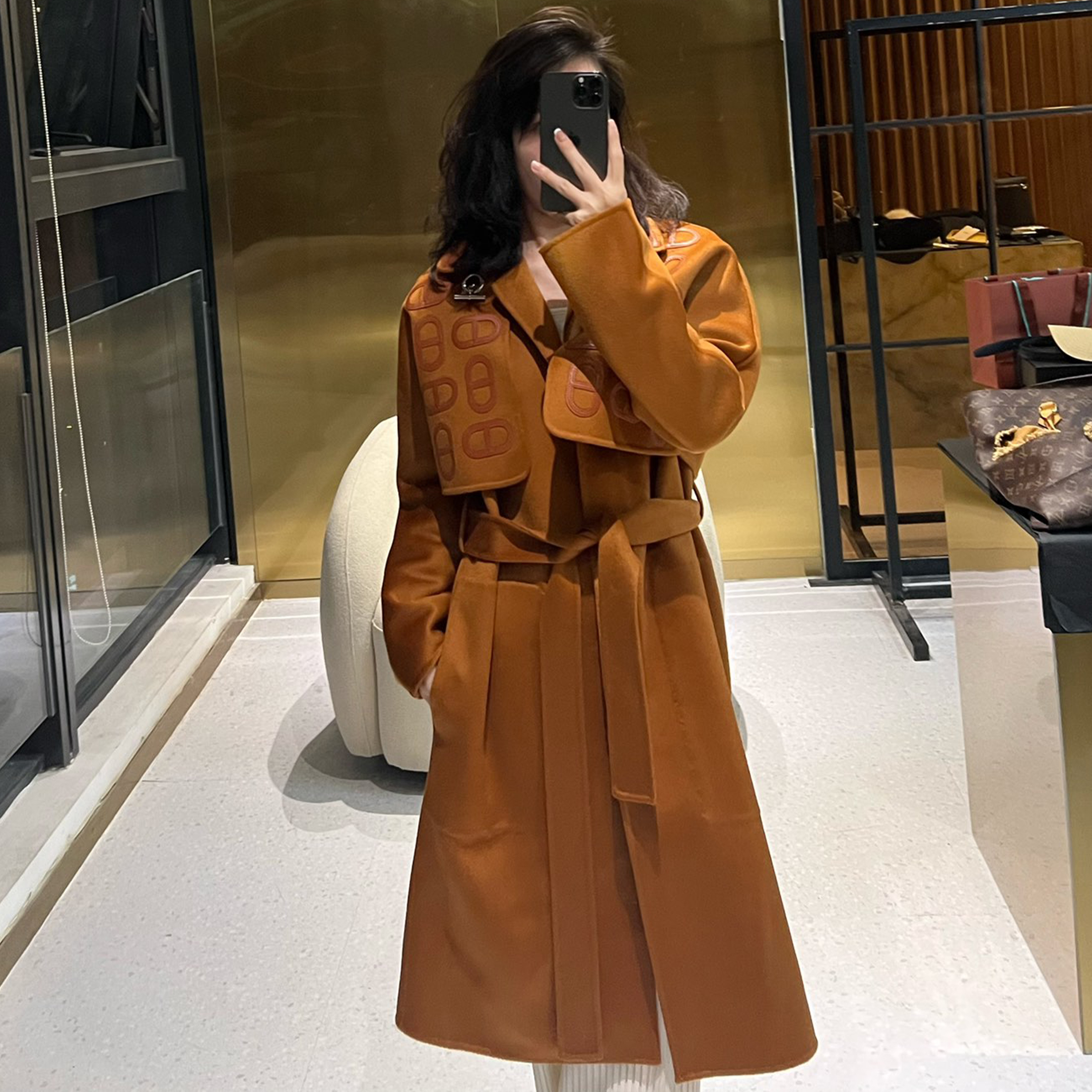 NIGO Hermes Women's Fall And Winter Two-piece Splicing Lapel Wool Coat Belt Fashion Casual Temperament In The Long Jacket Ngvp #nigo9241