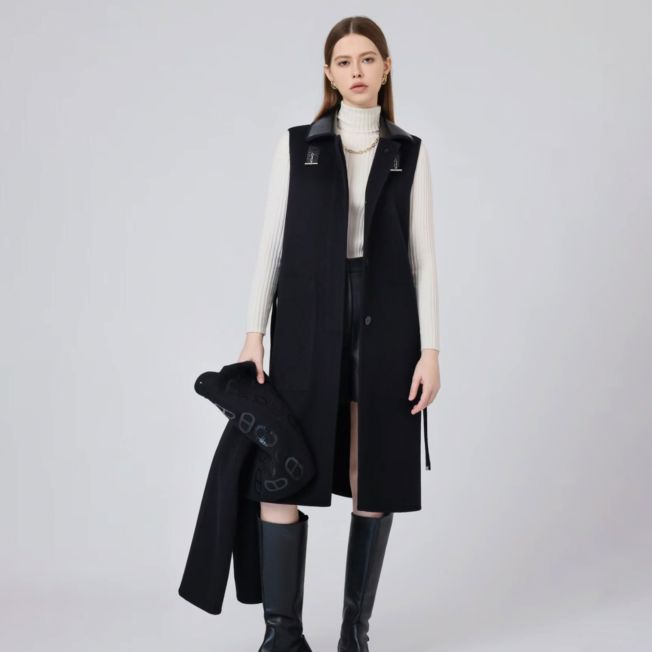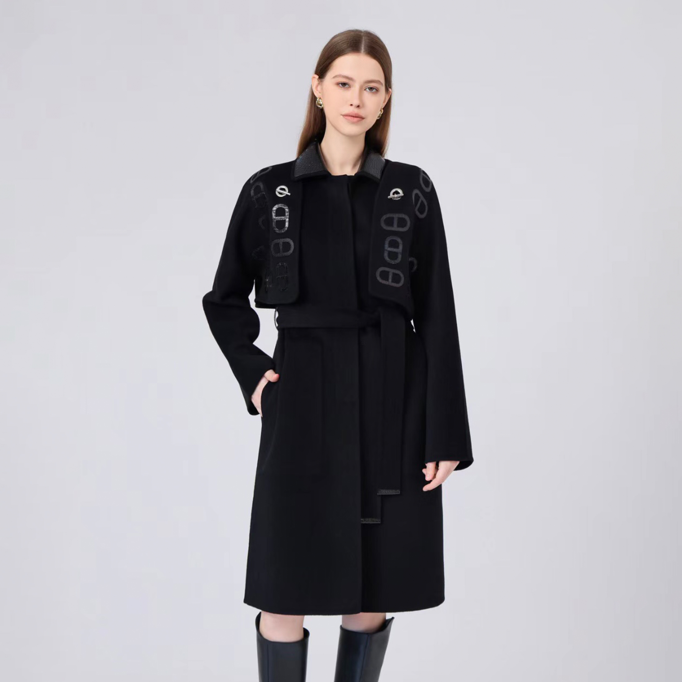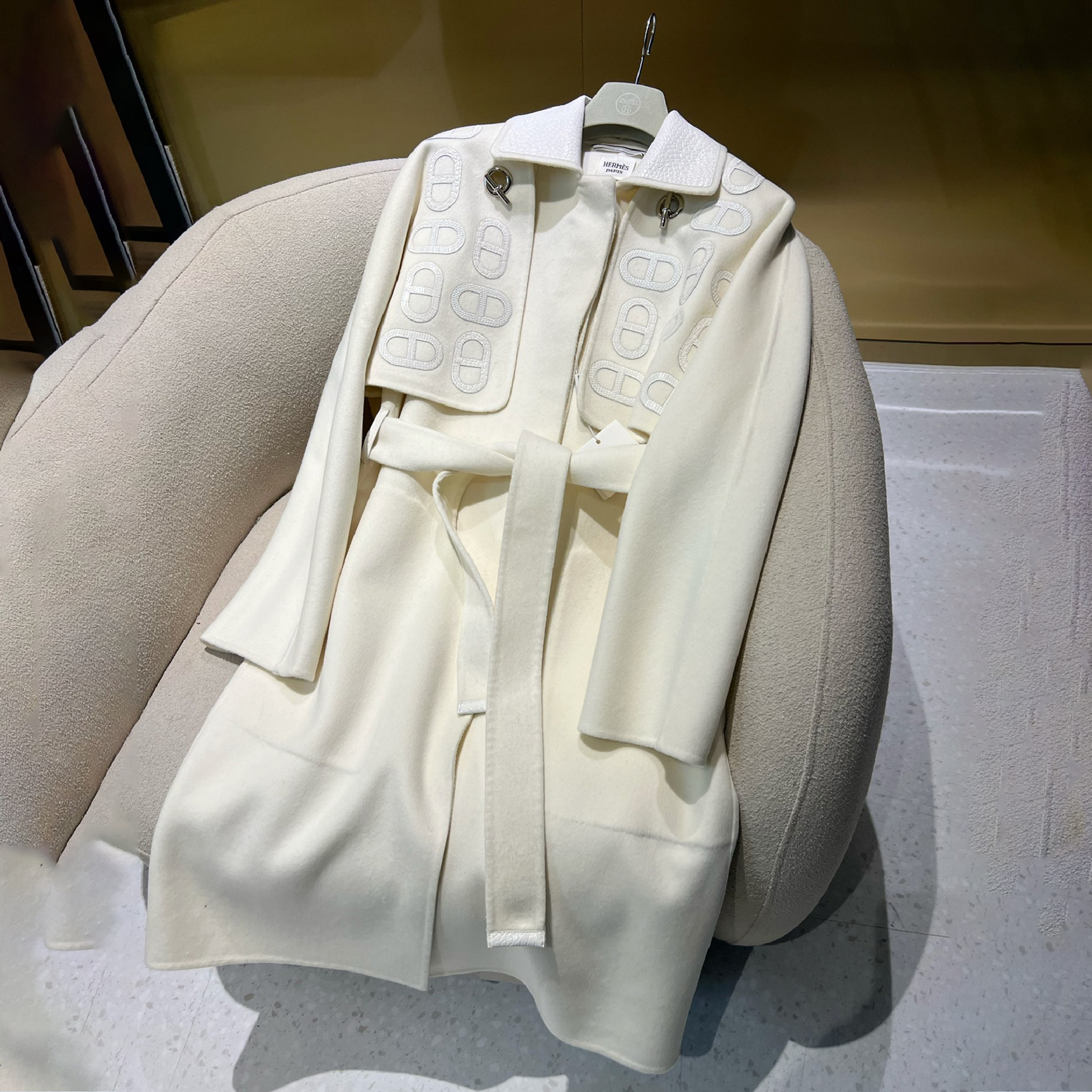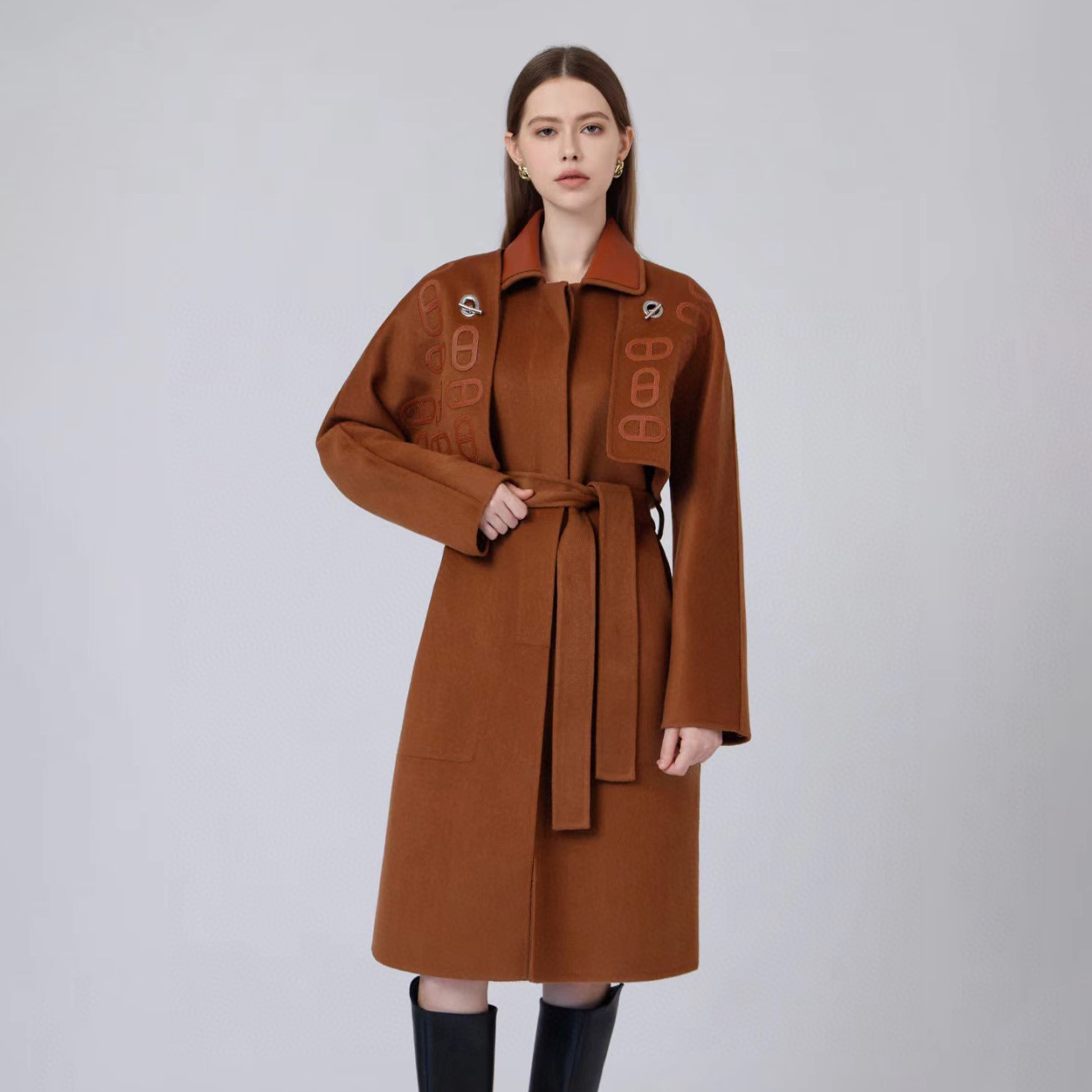 NIGO Hermes Women's Fall And Winter Two-piece Splicing Lapel Wool Coat Belt Fashion Casual Temperament In The Long Jacket Ngvp #nigo9241