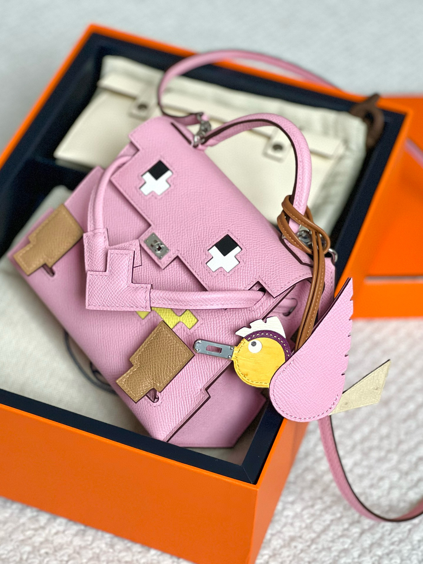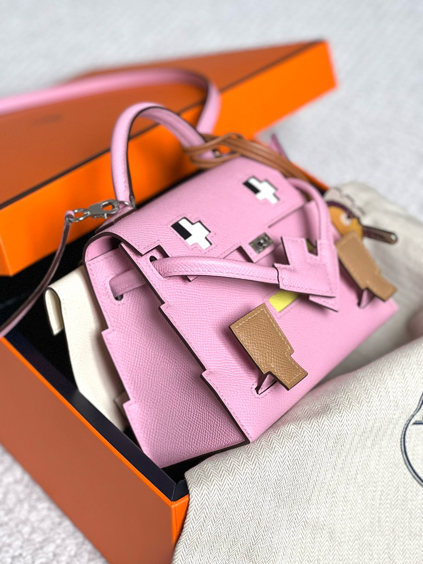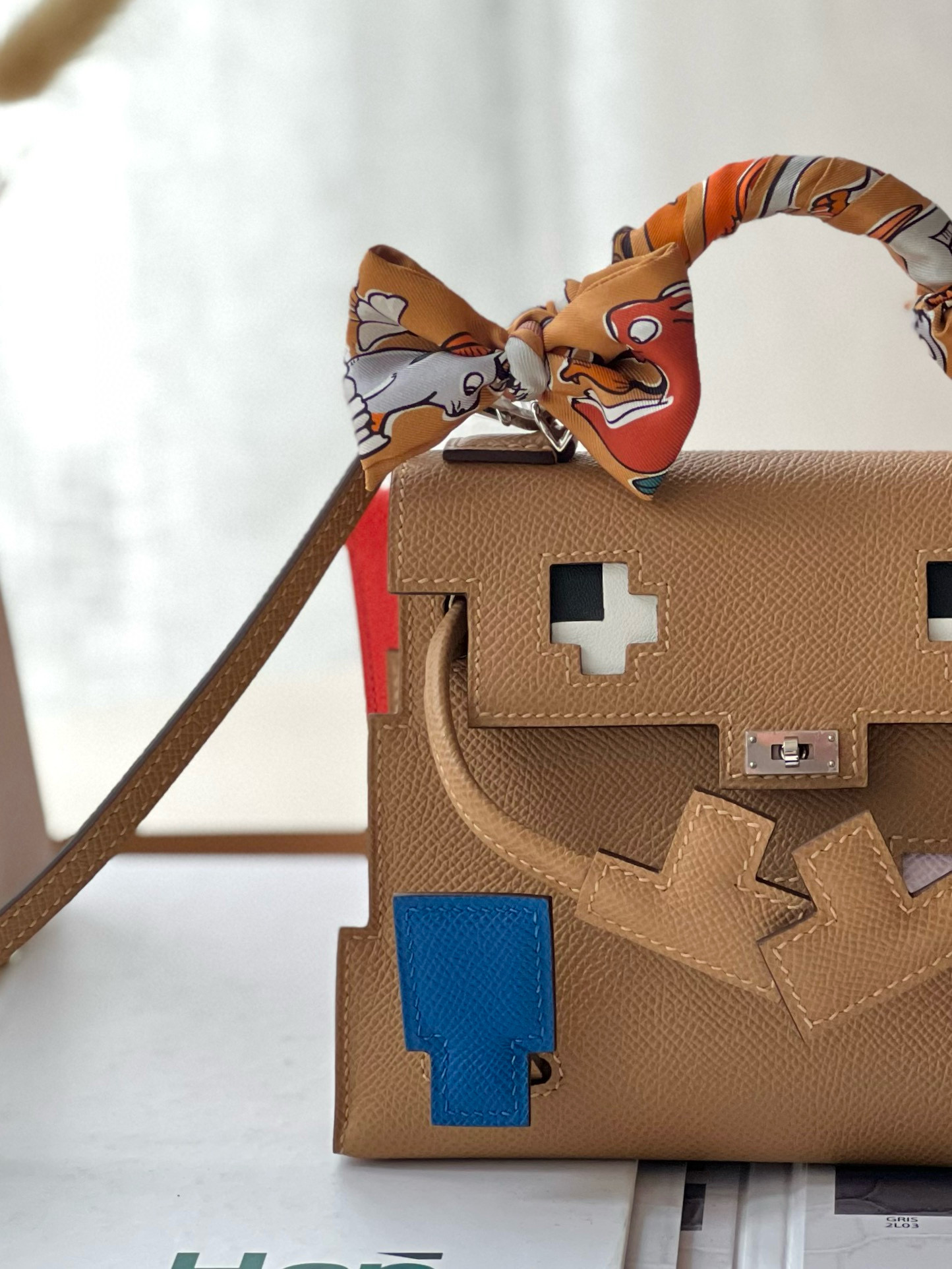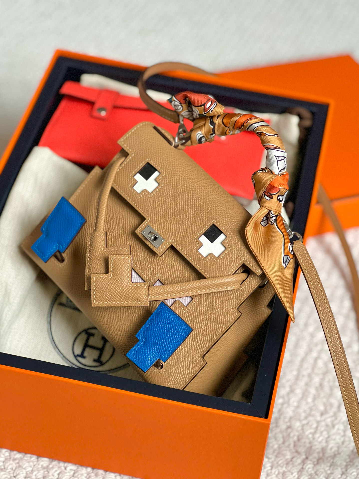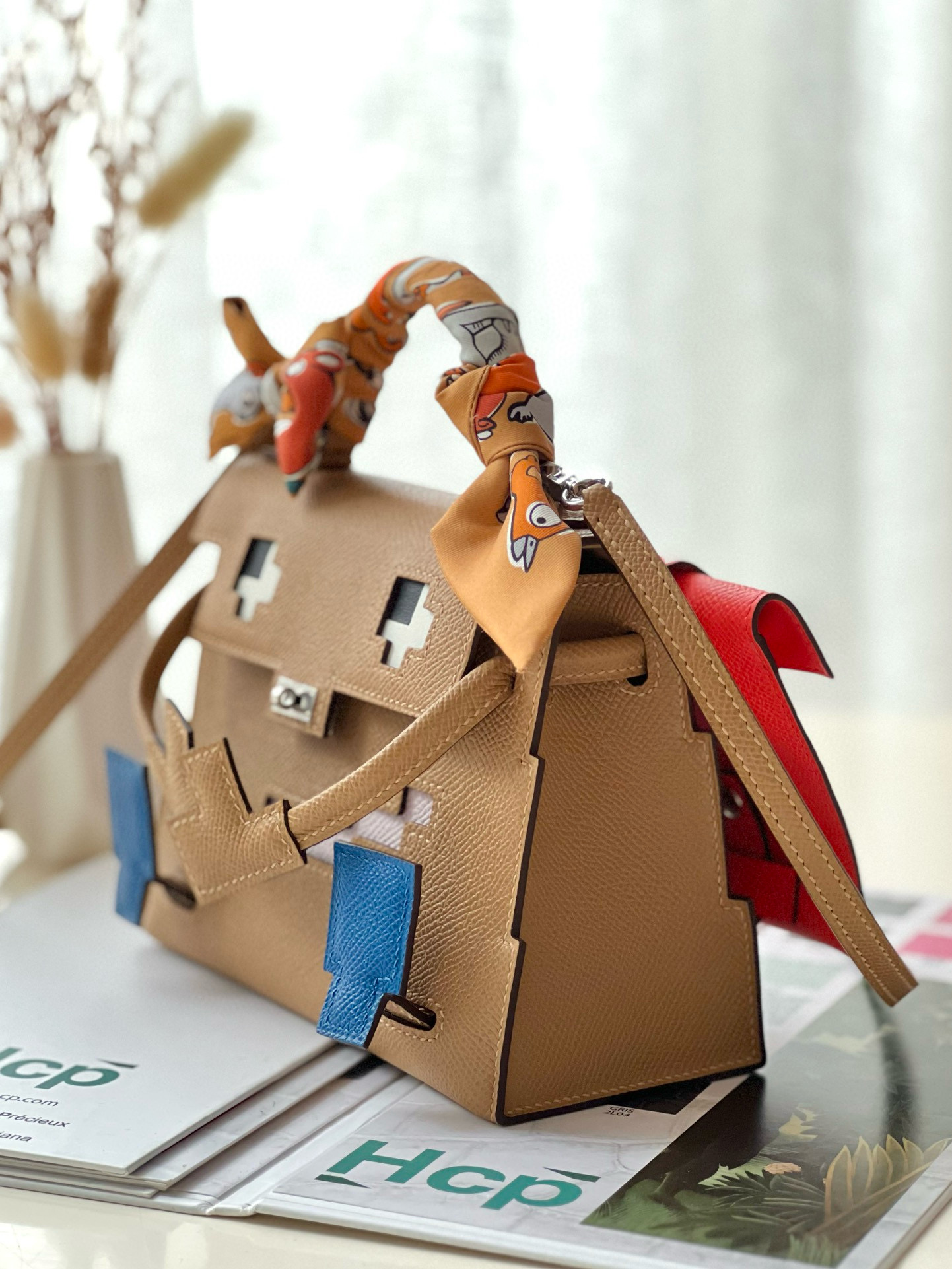 NIGO Hermes Women's Fashion Kelly Doll Mosaic Doll Silver Buckle Epsom Calf Leather Handbag Crossbody Bag #nigo98632