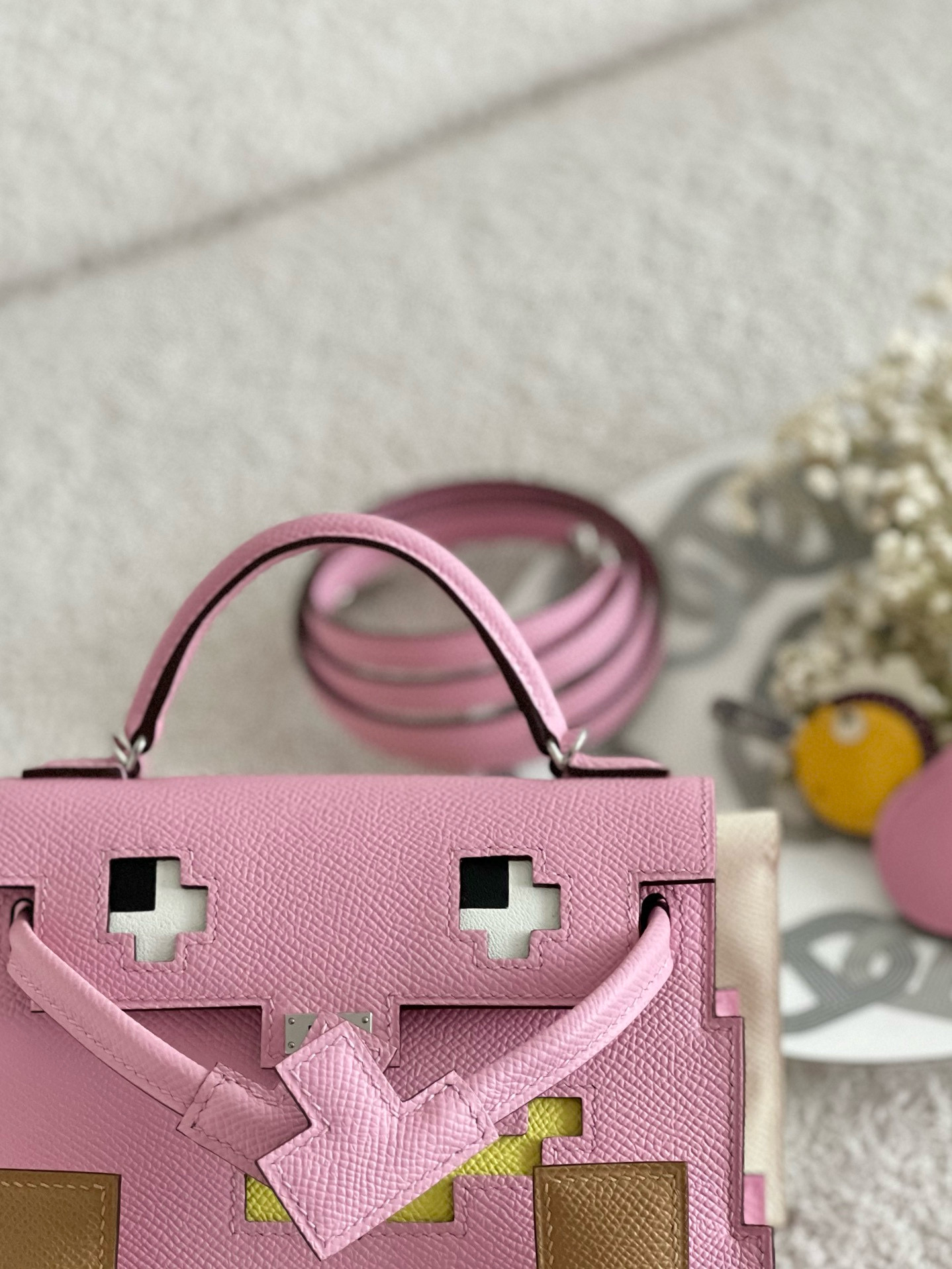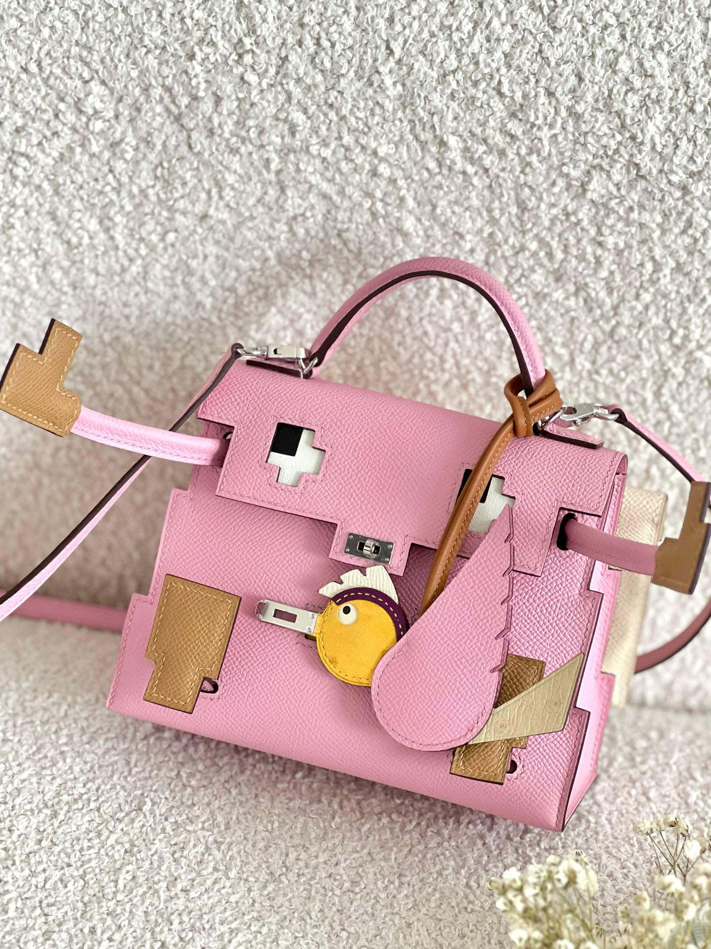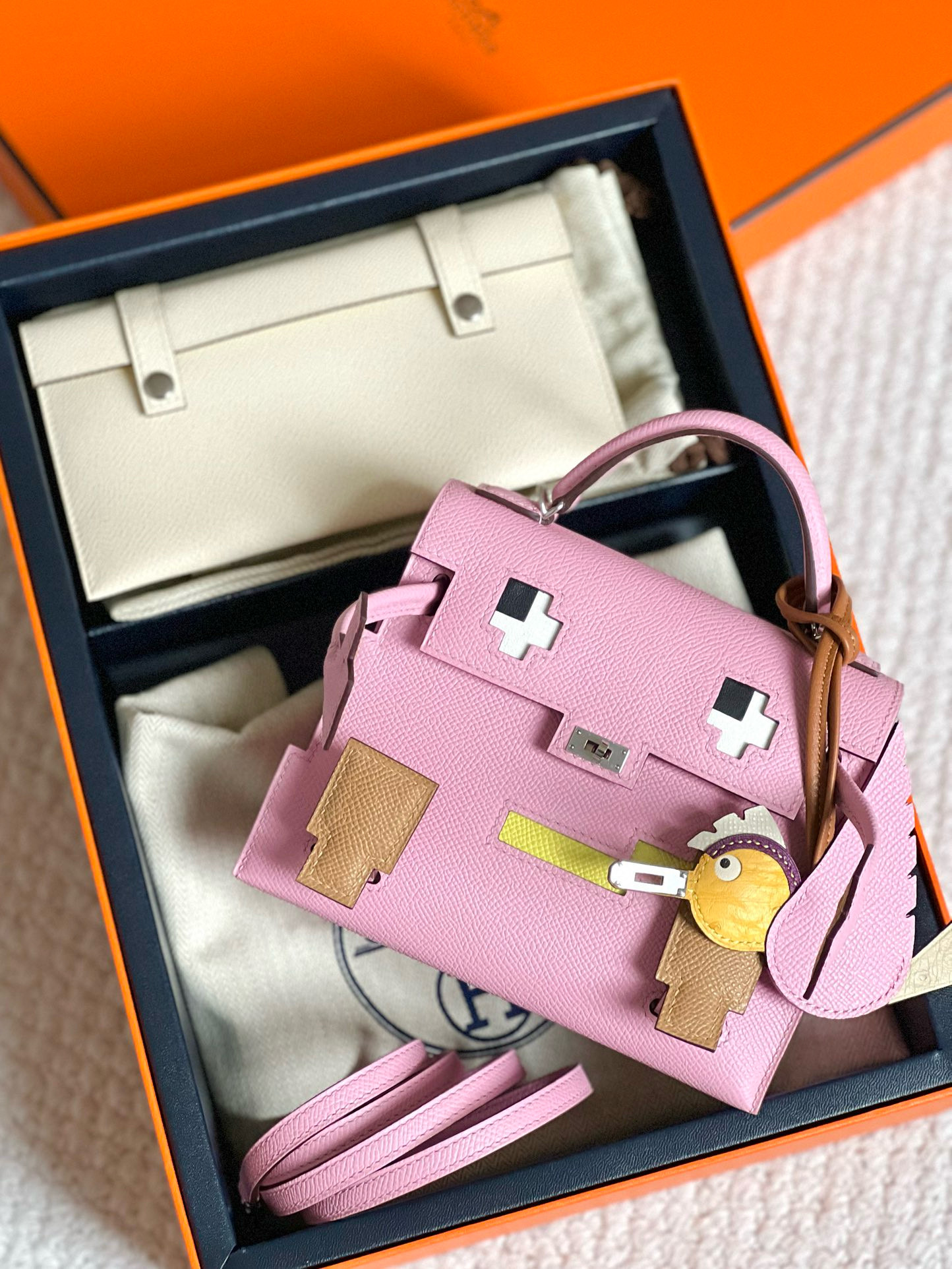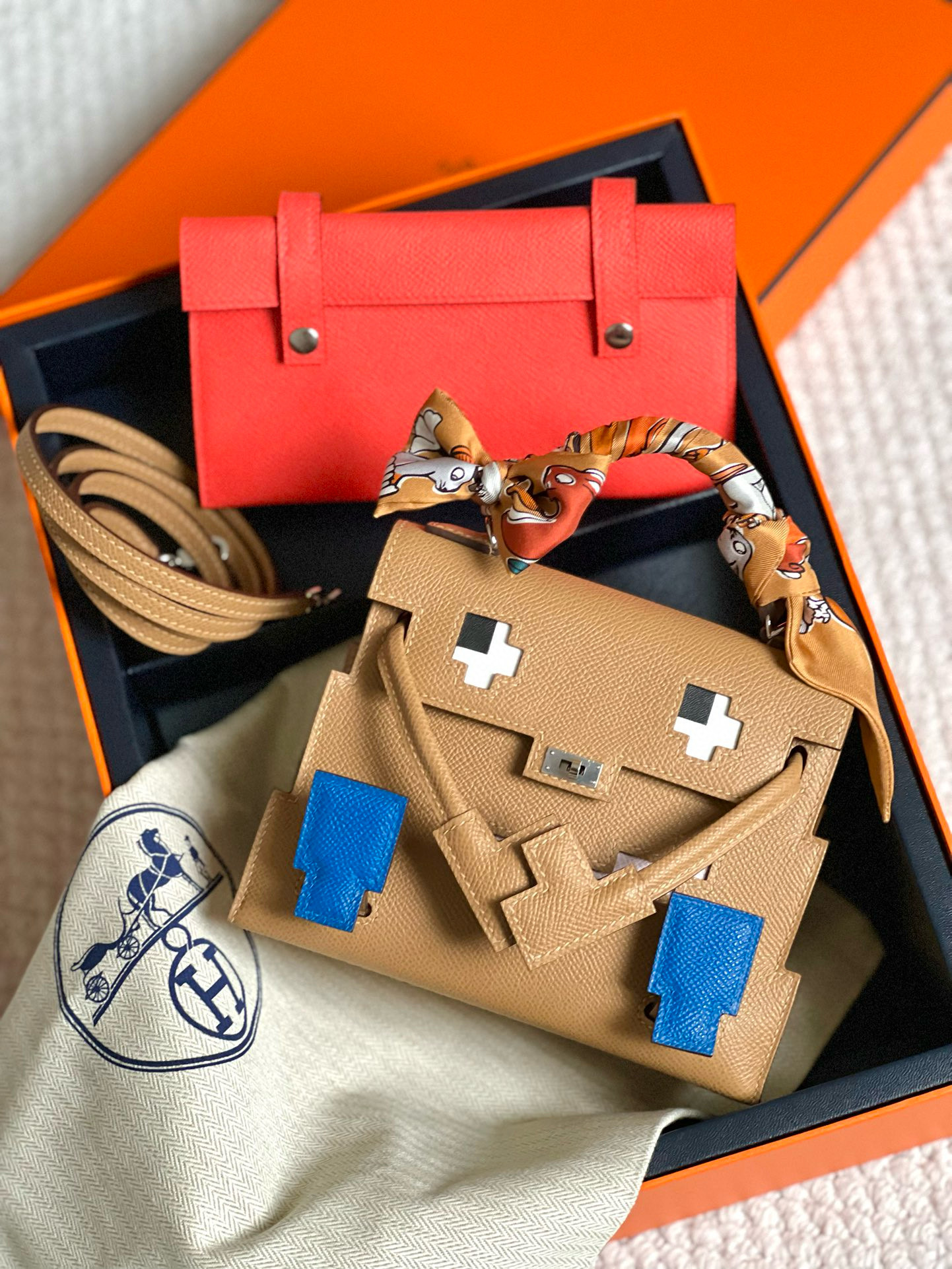 NIGO Hermes Women's Fashion Kelly Doll Mosaic Doll Silver Buckle Epsom Calf Leather Handbag Crossbody Bag #nigo98632